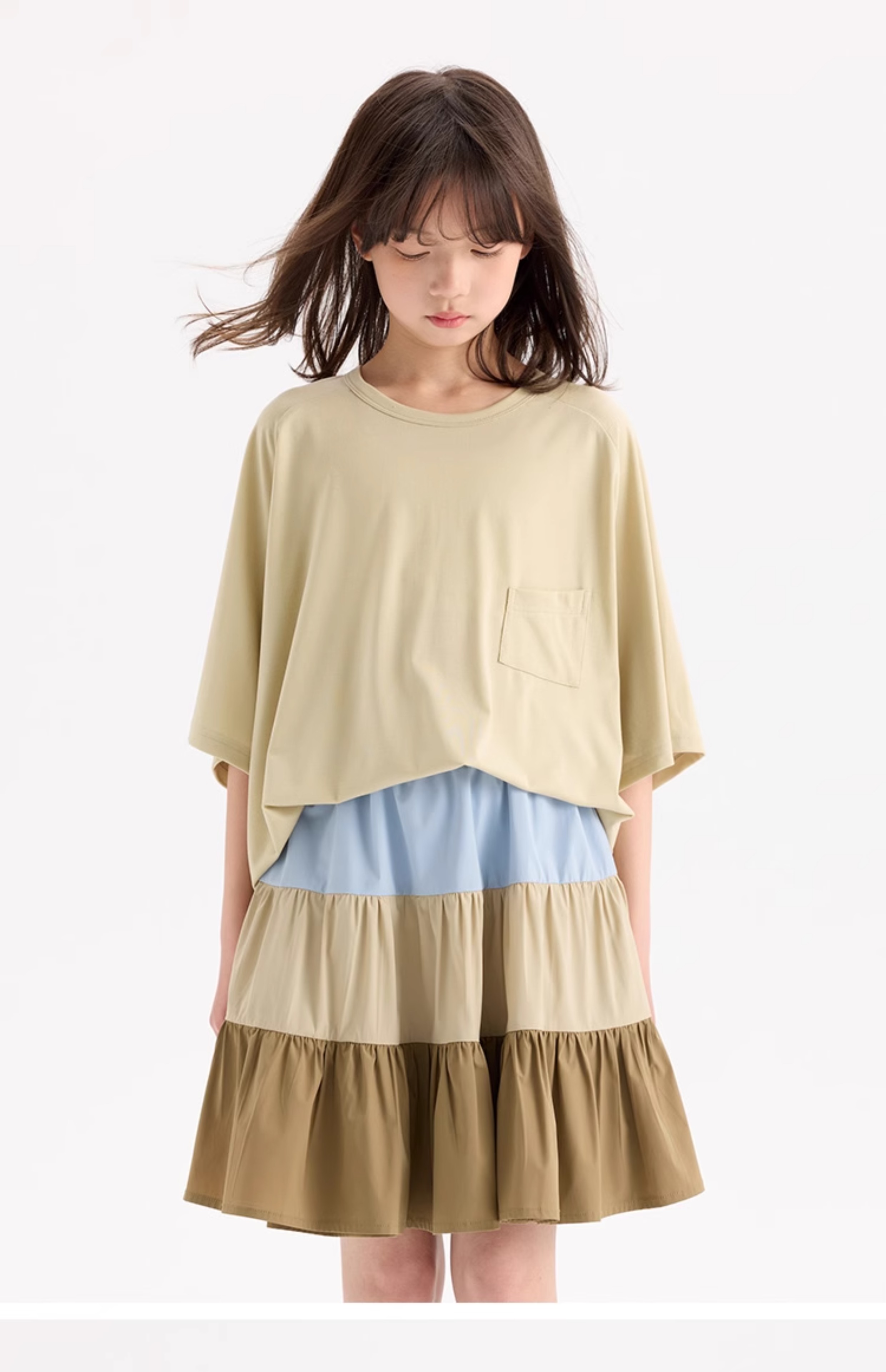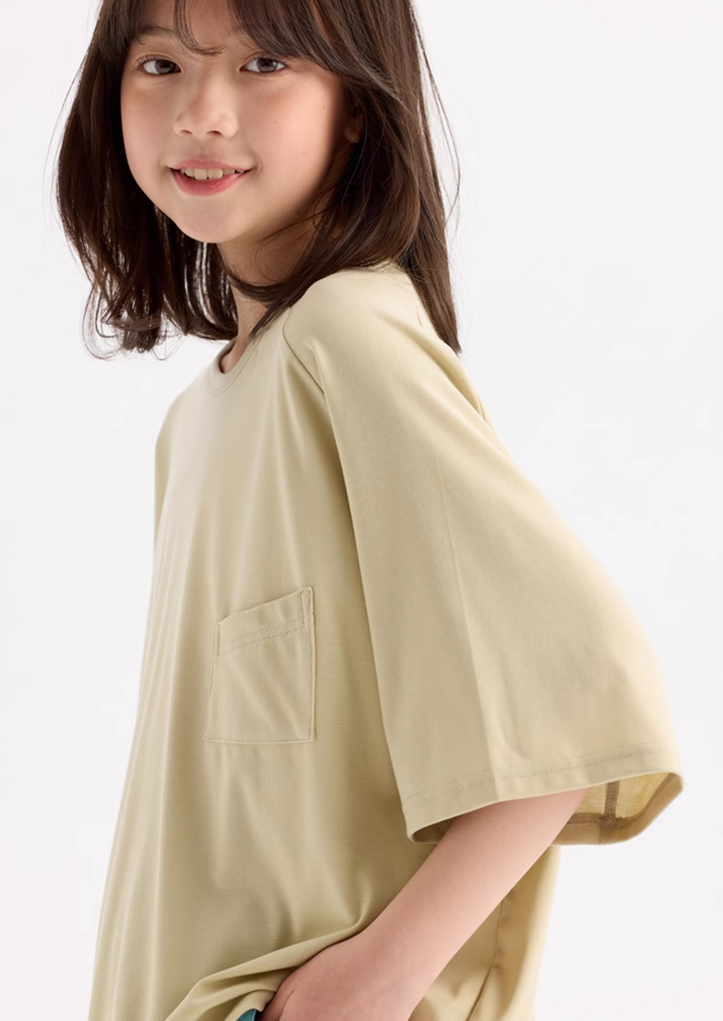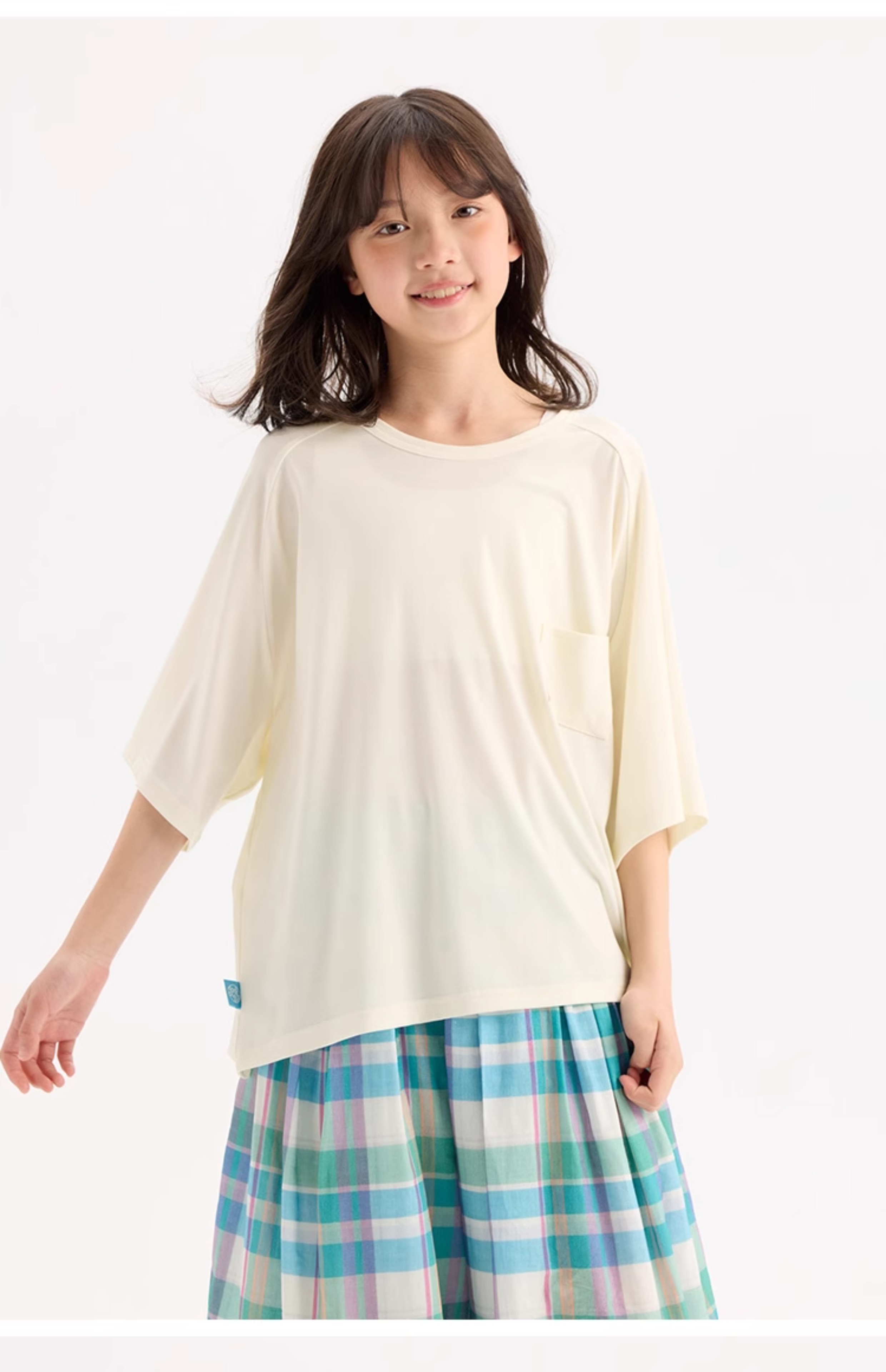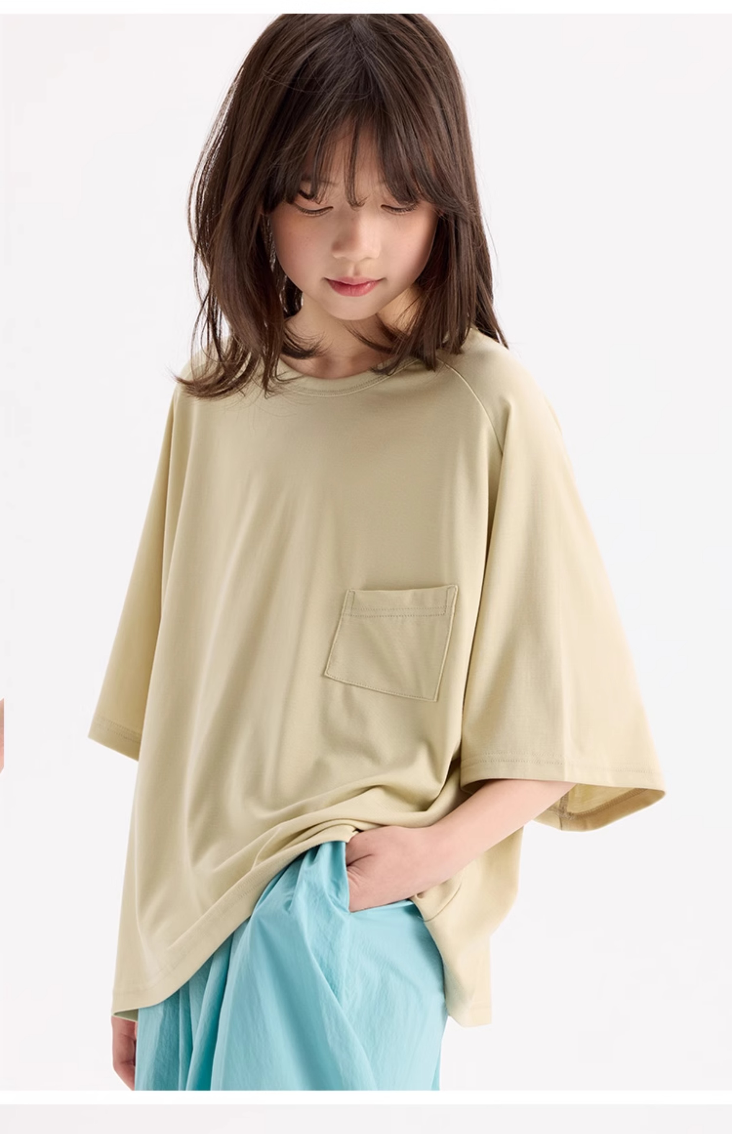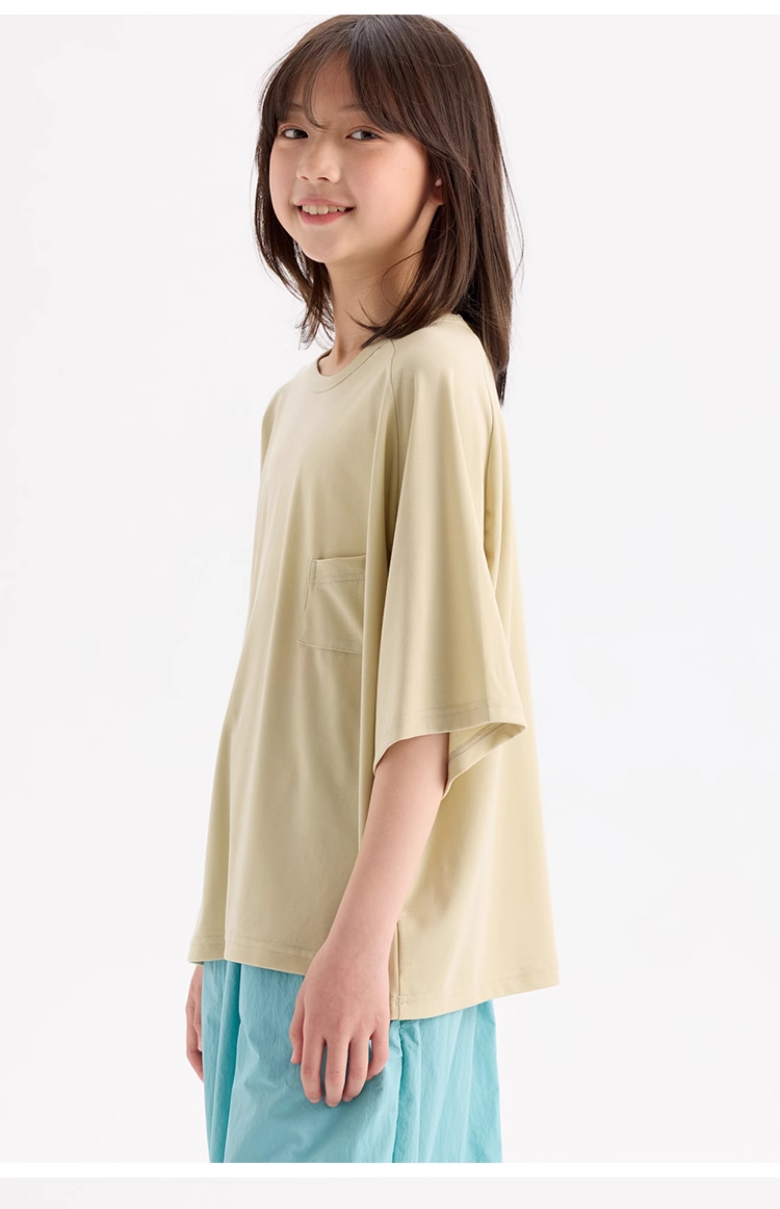 KUUYOO Gogogo中大童夏季短袖親膚天絲t恤兒童寬松插肩袖女童上衣