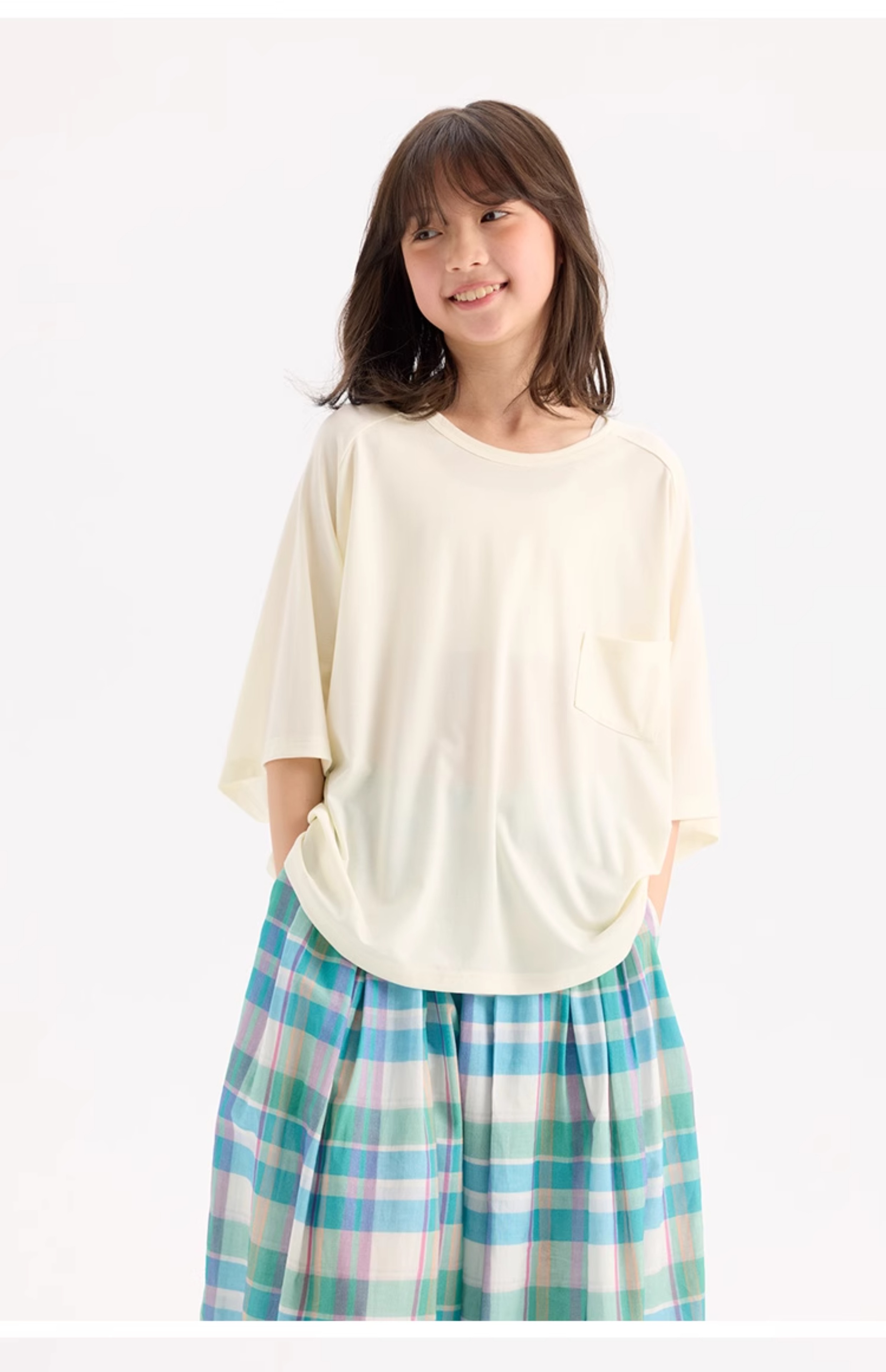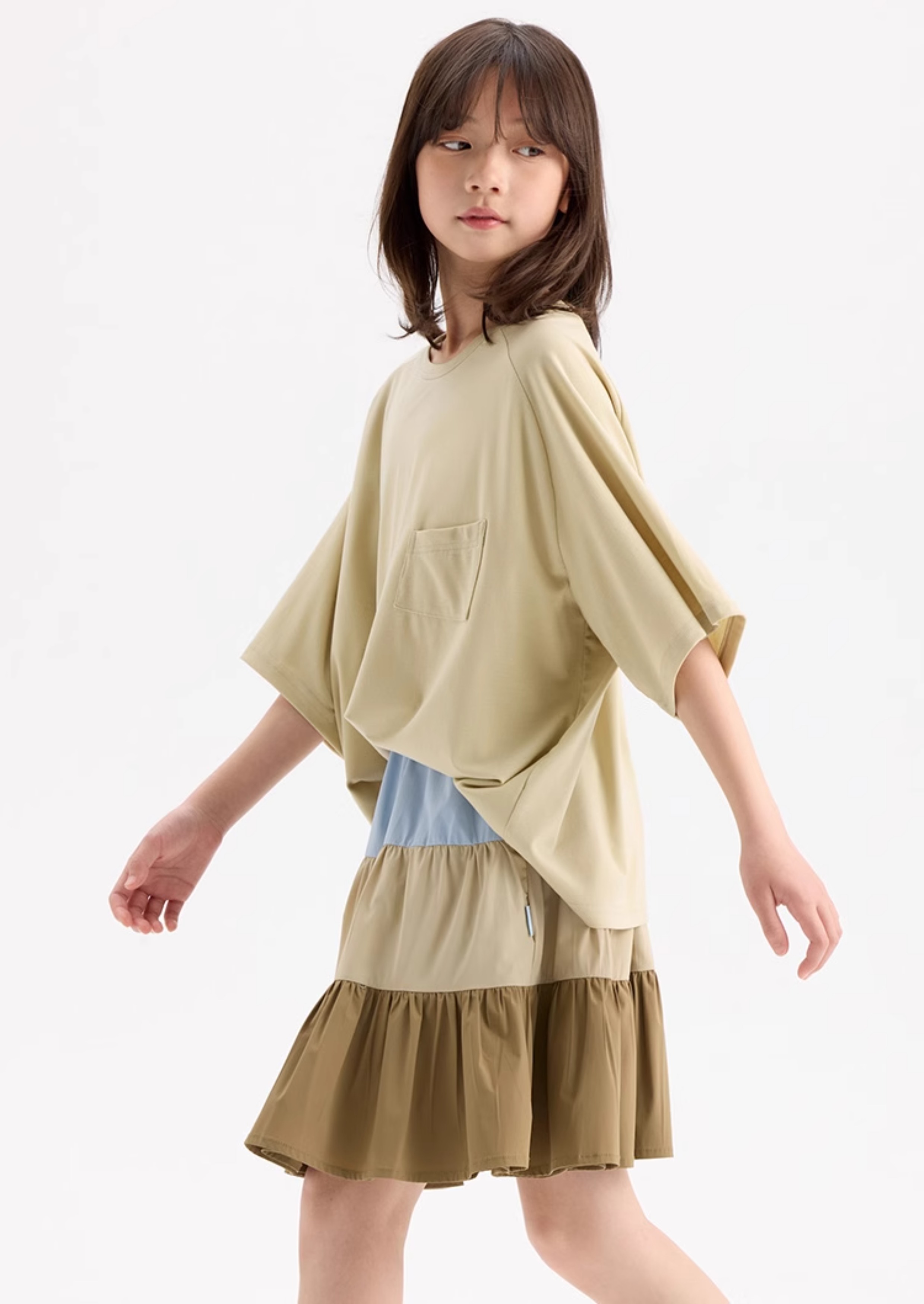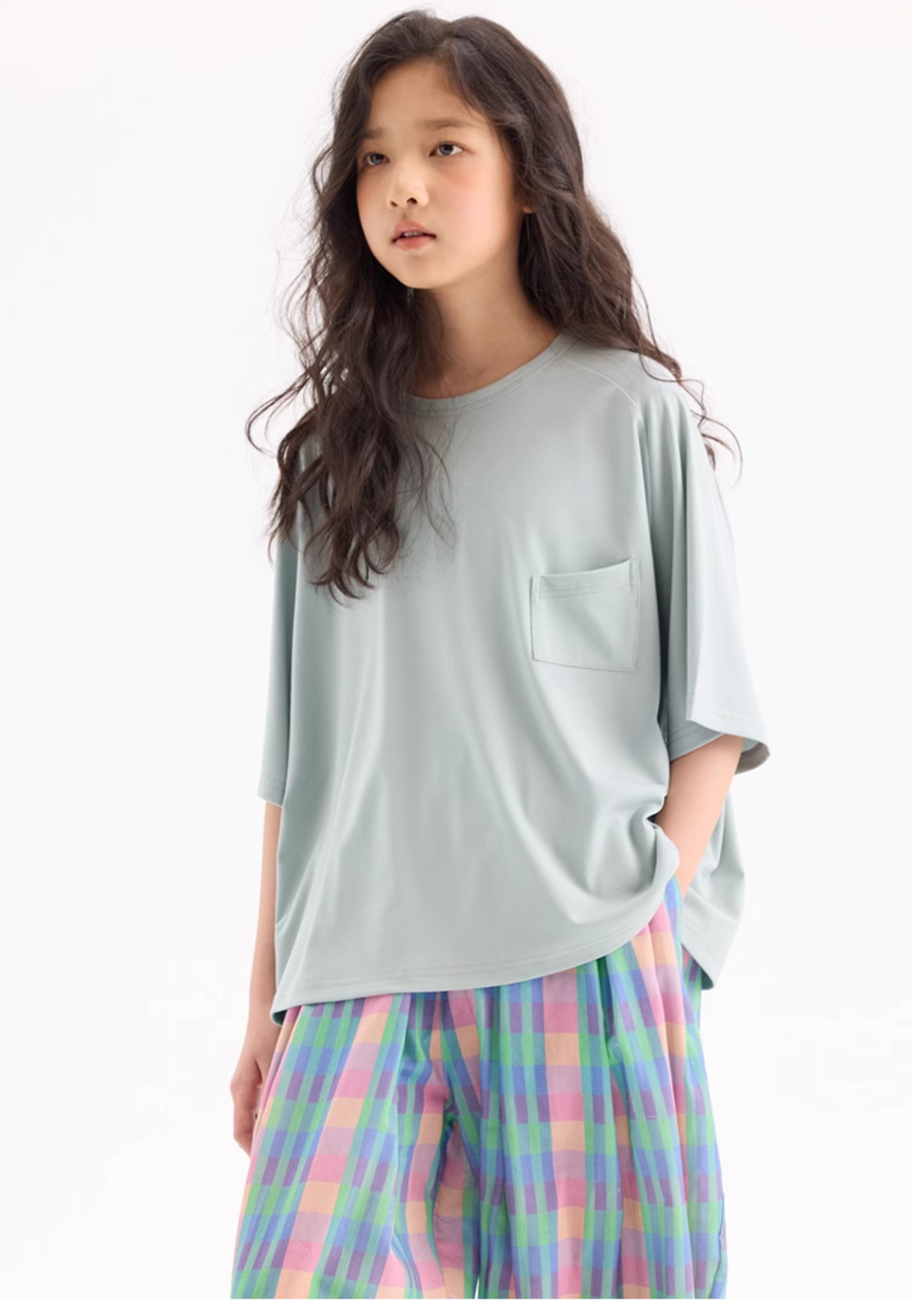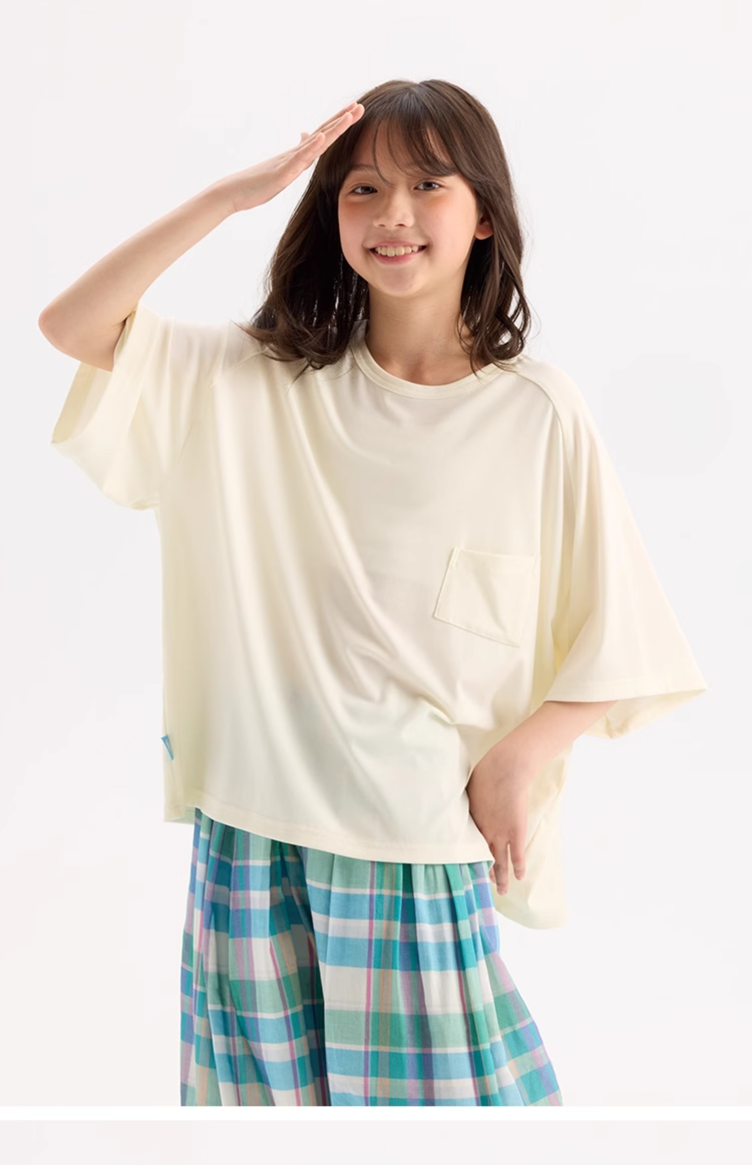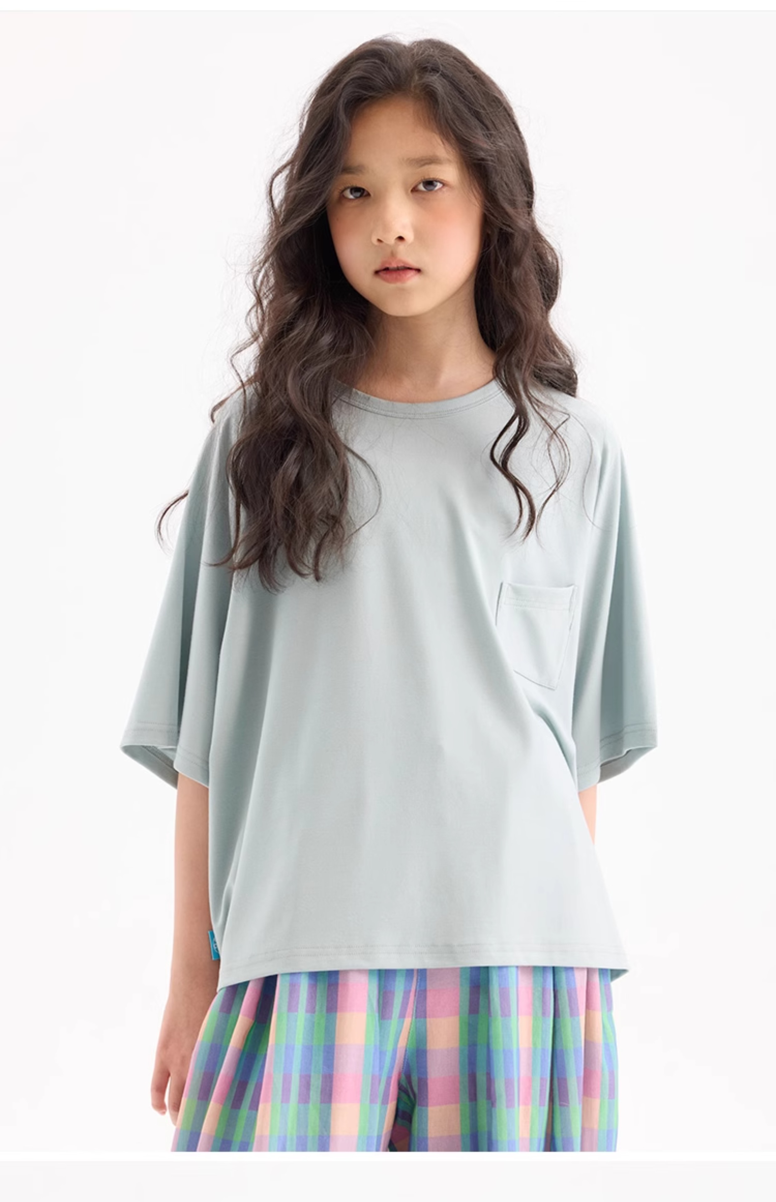 KUUYOO Gogogo中大童夏季短袖親膚天絲t恤兒童寬松插肩袖女童上衣