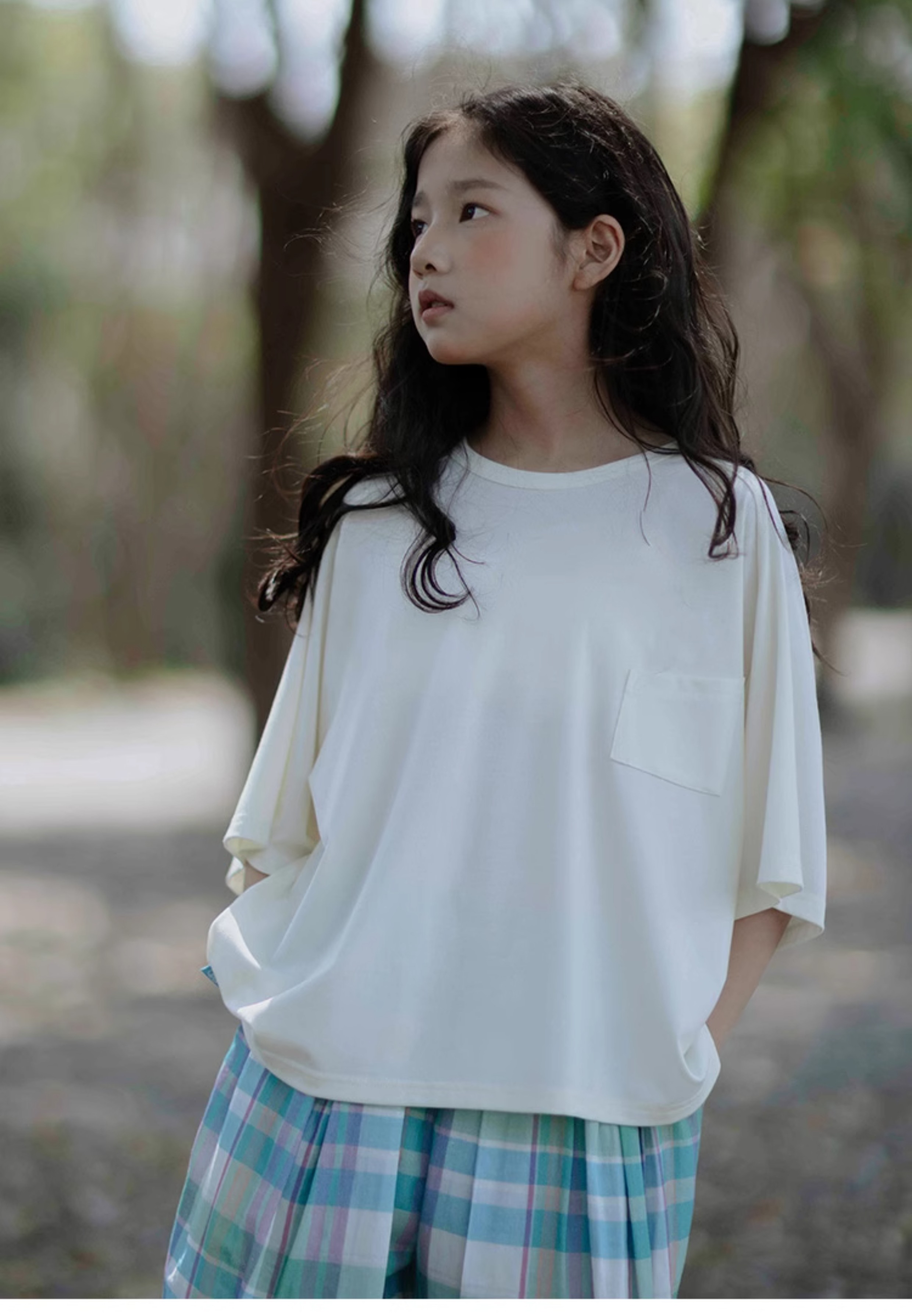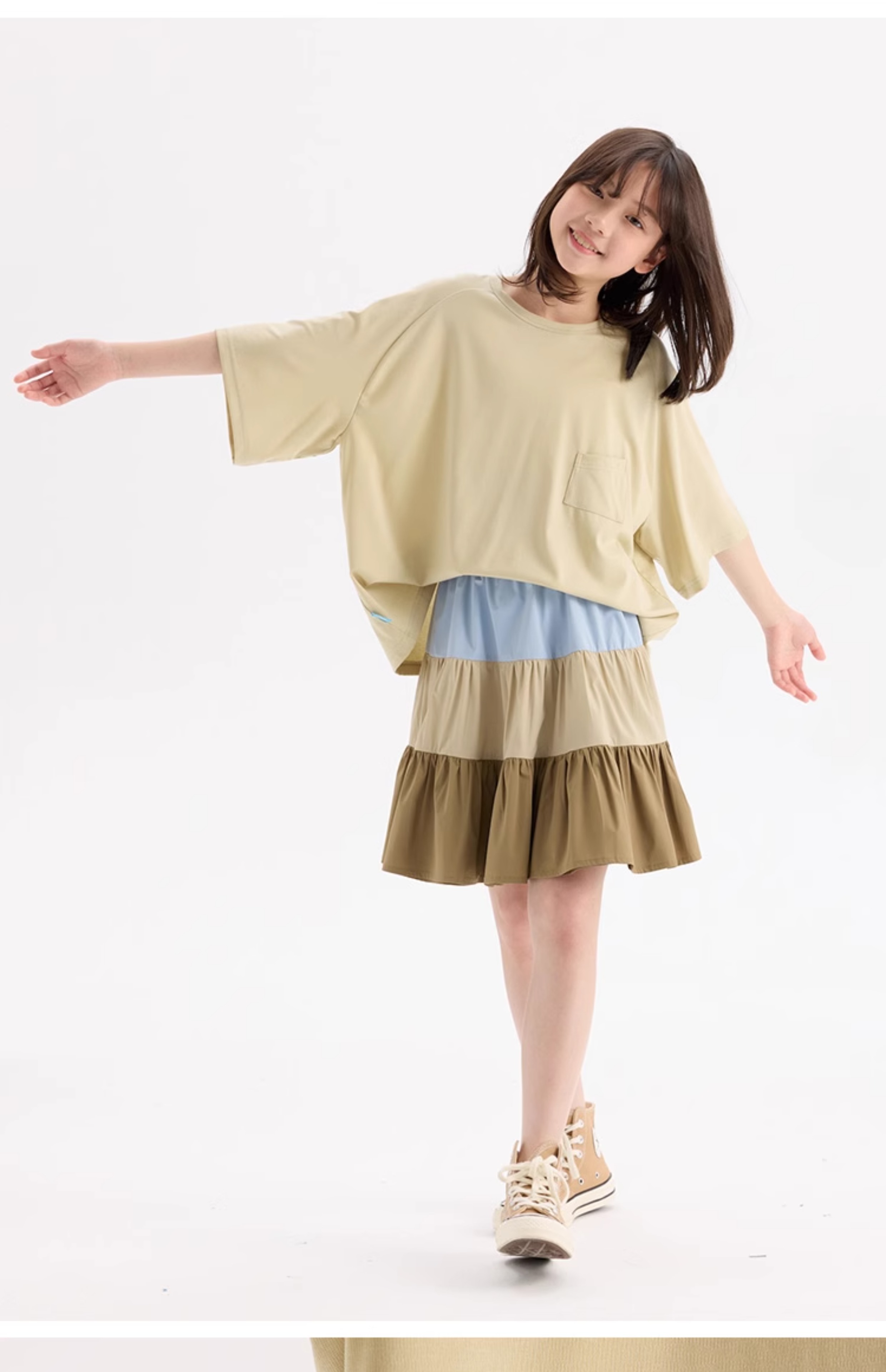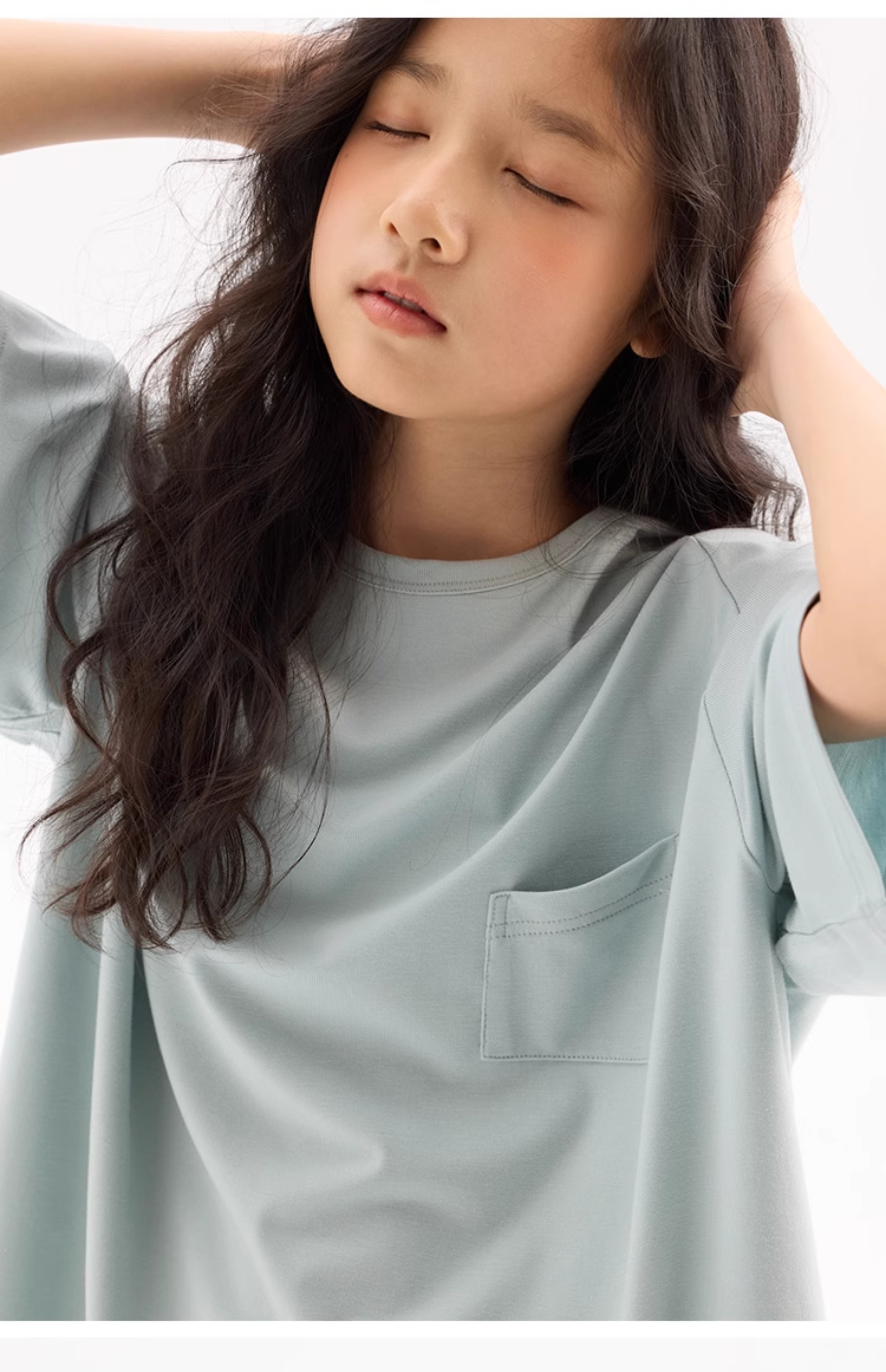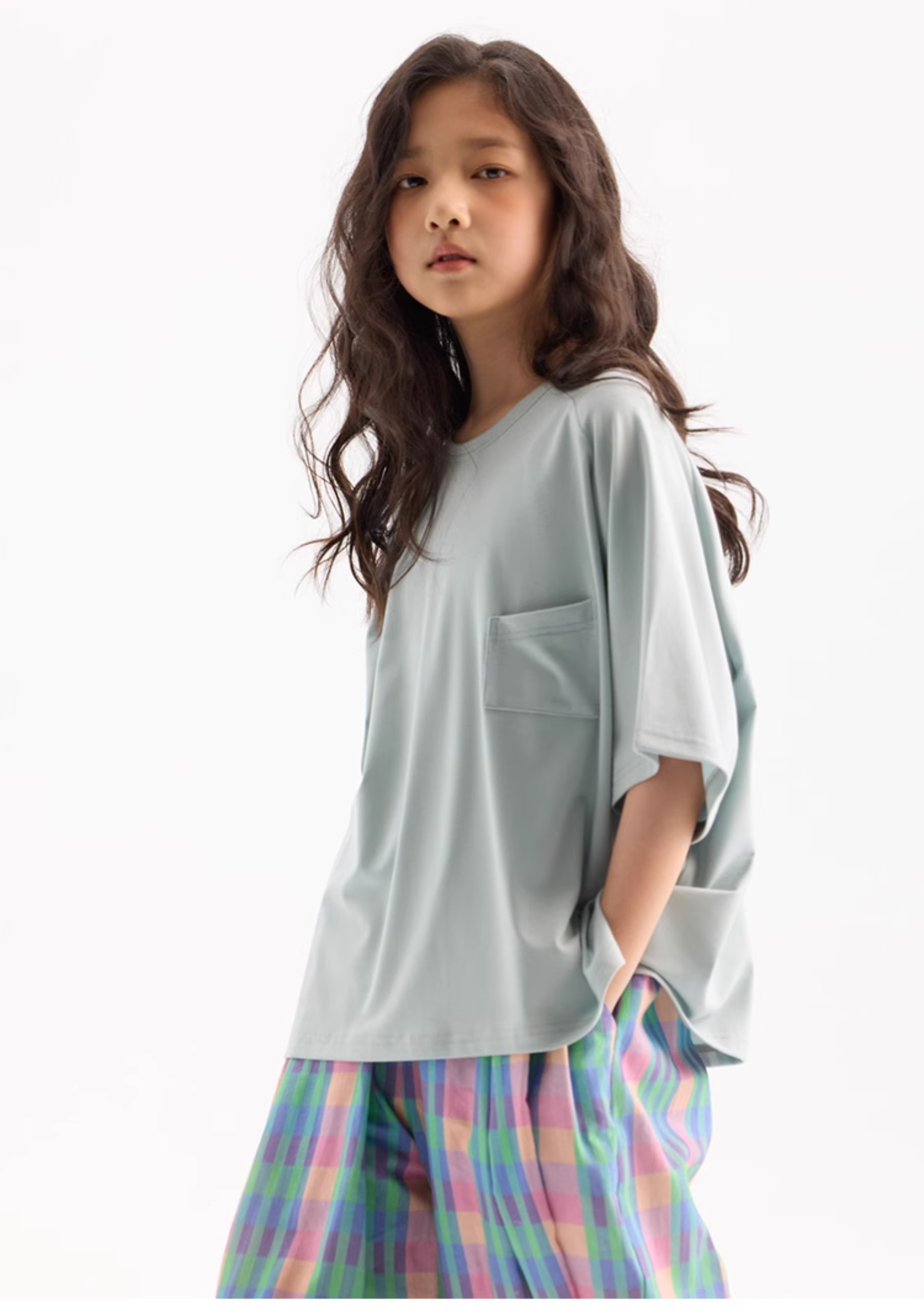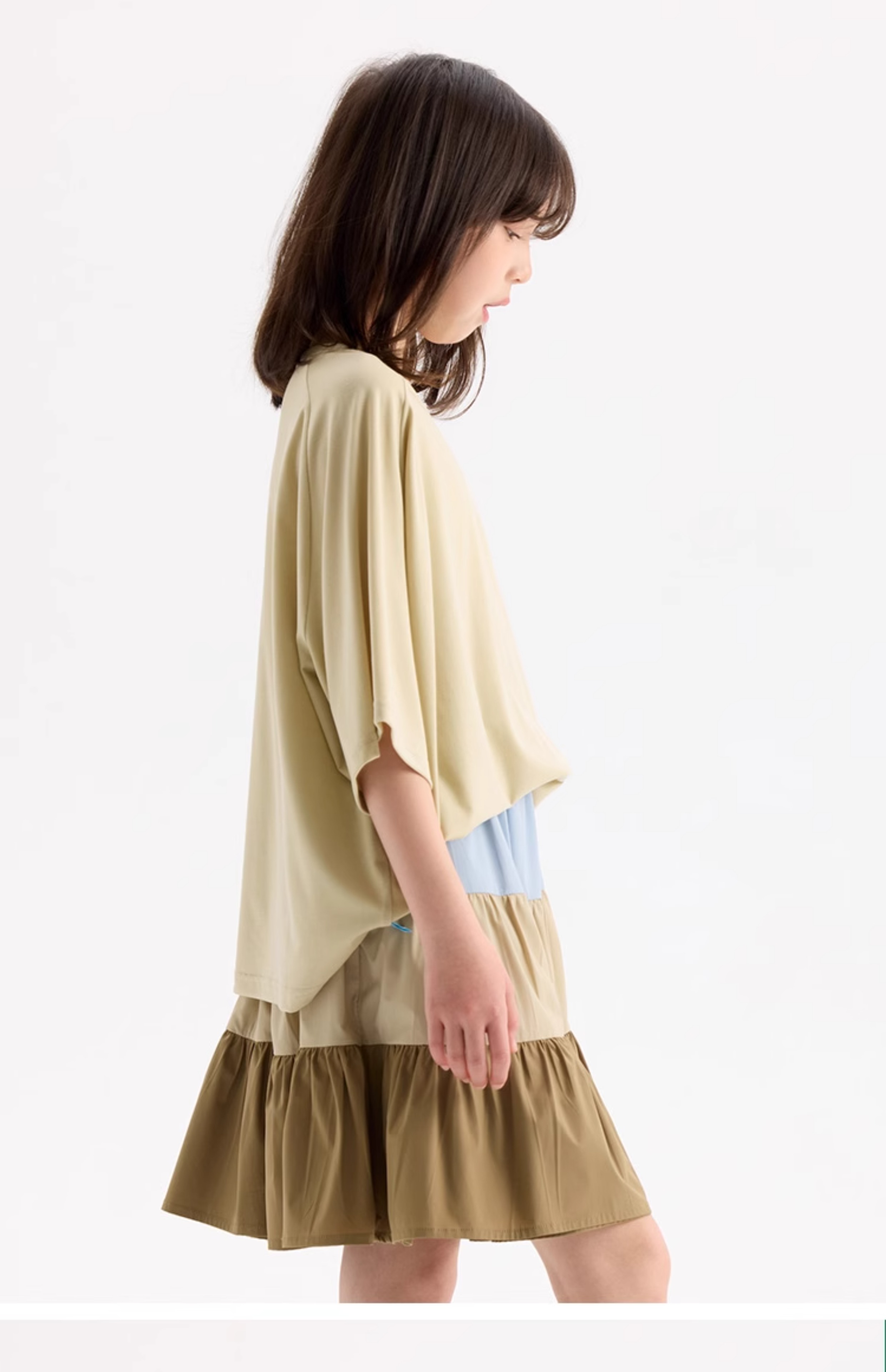 KUUYOO Gogogo中大童夏季短袖親膚天絲t恤兒童寬松插肩袖女童上衣