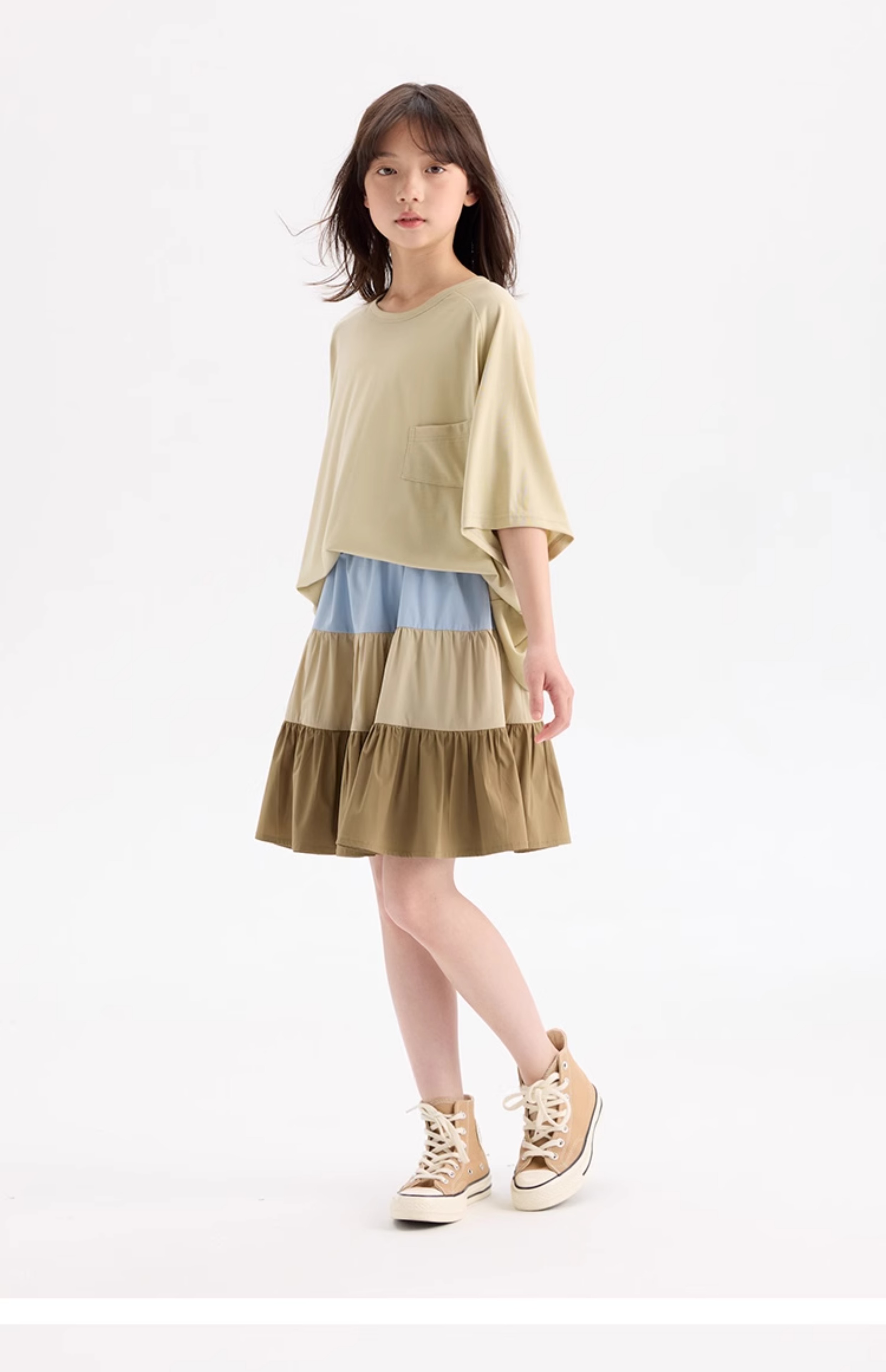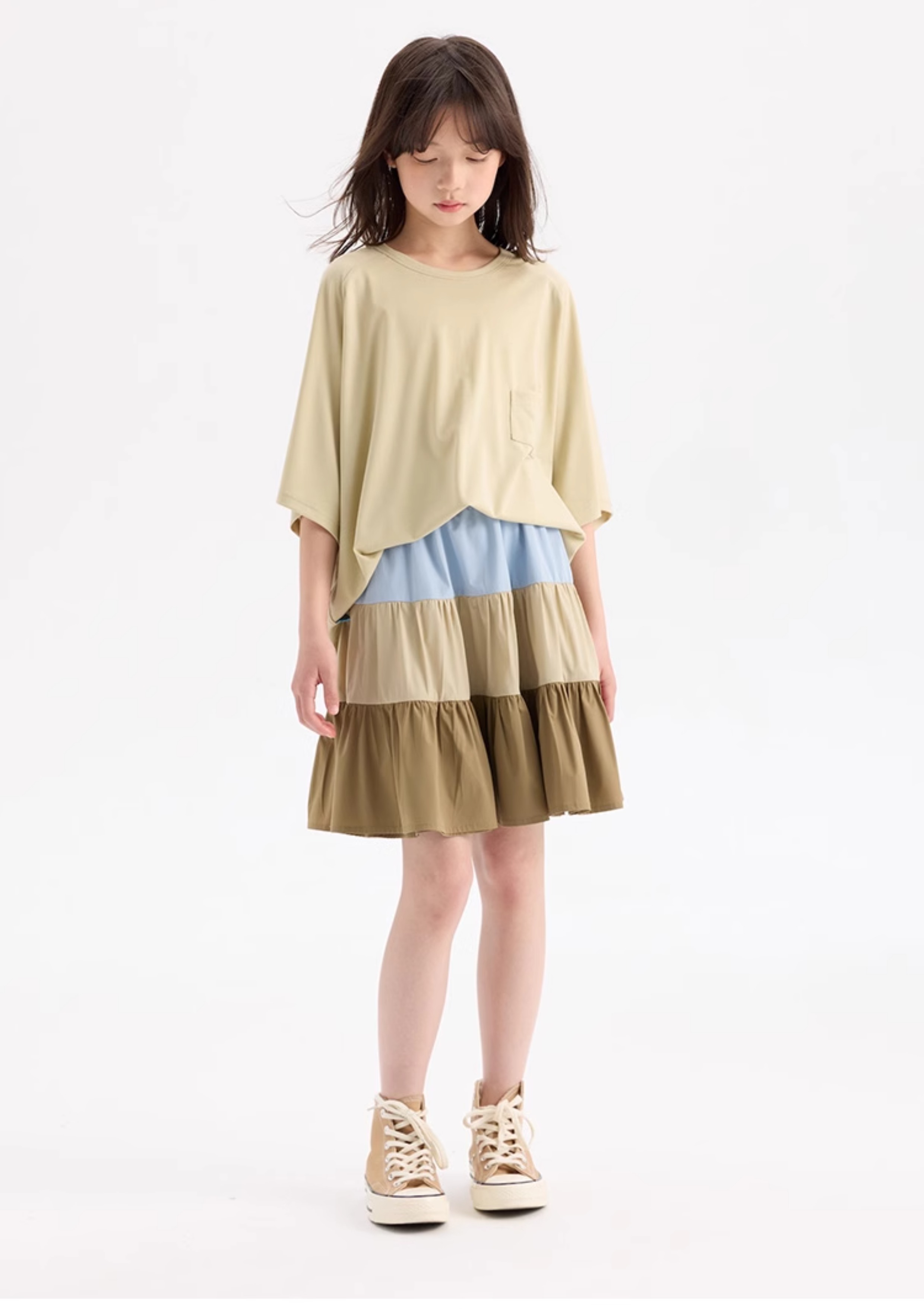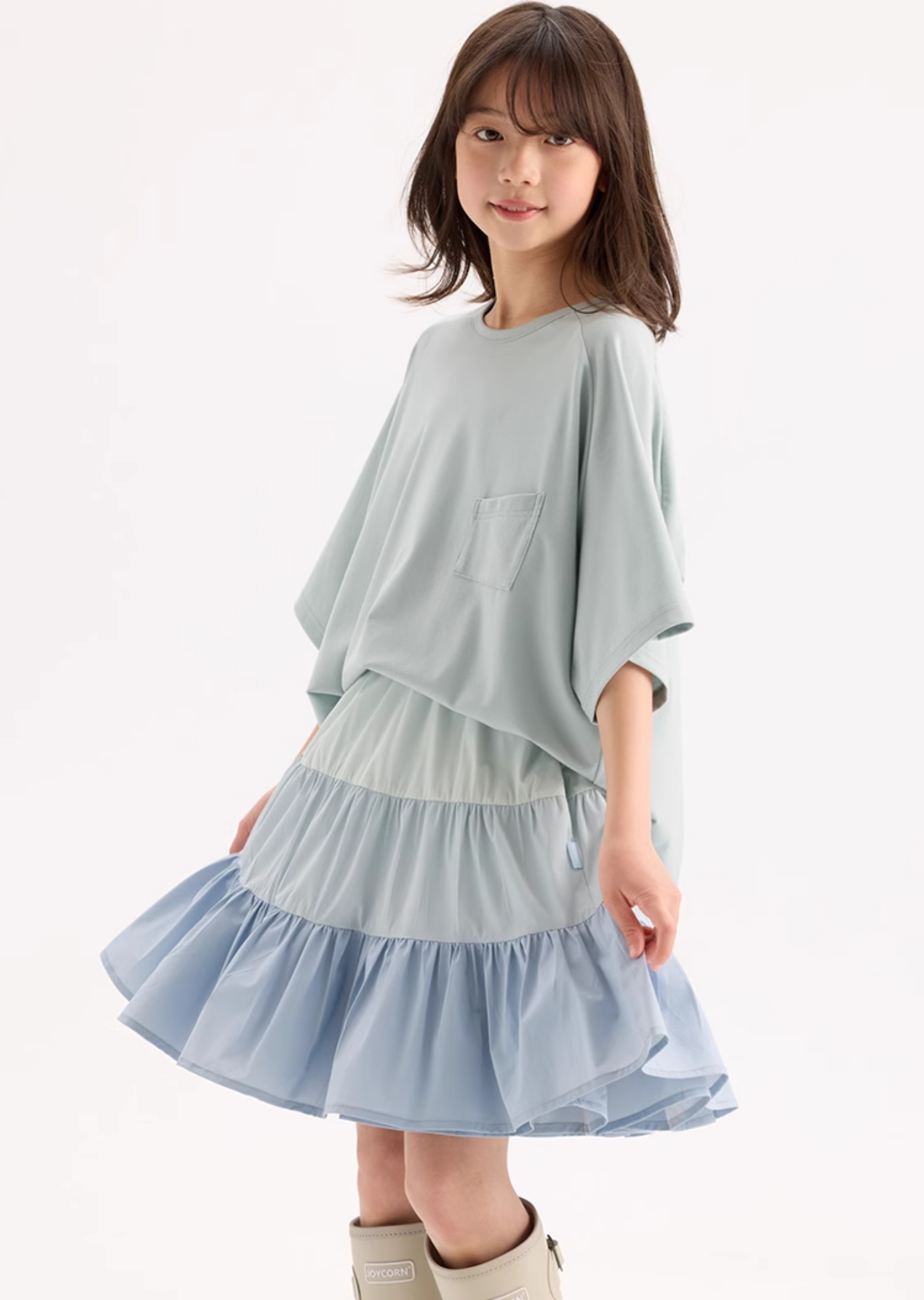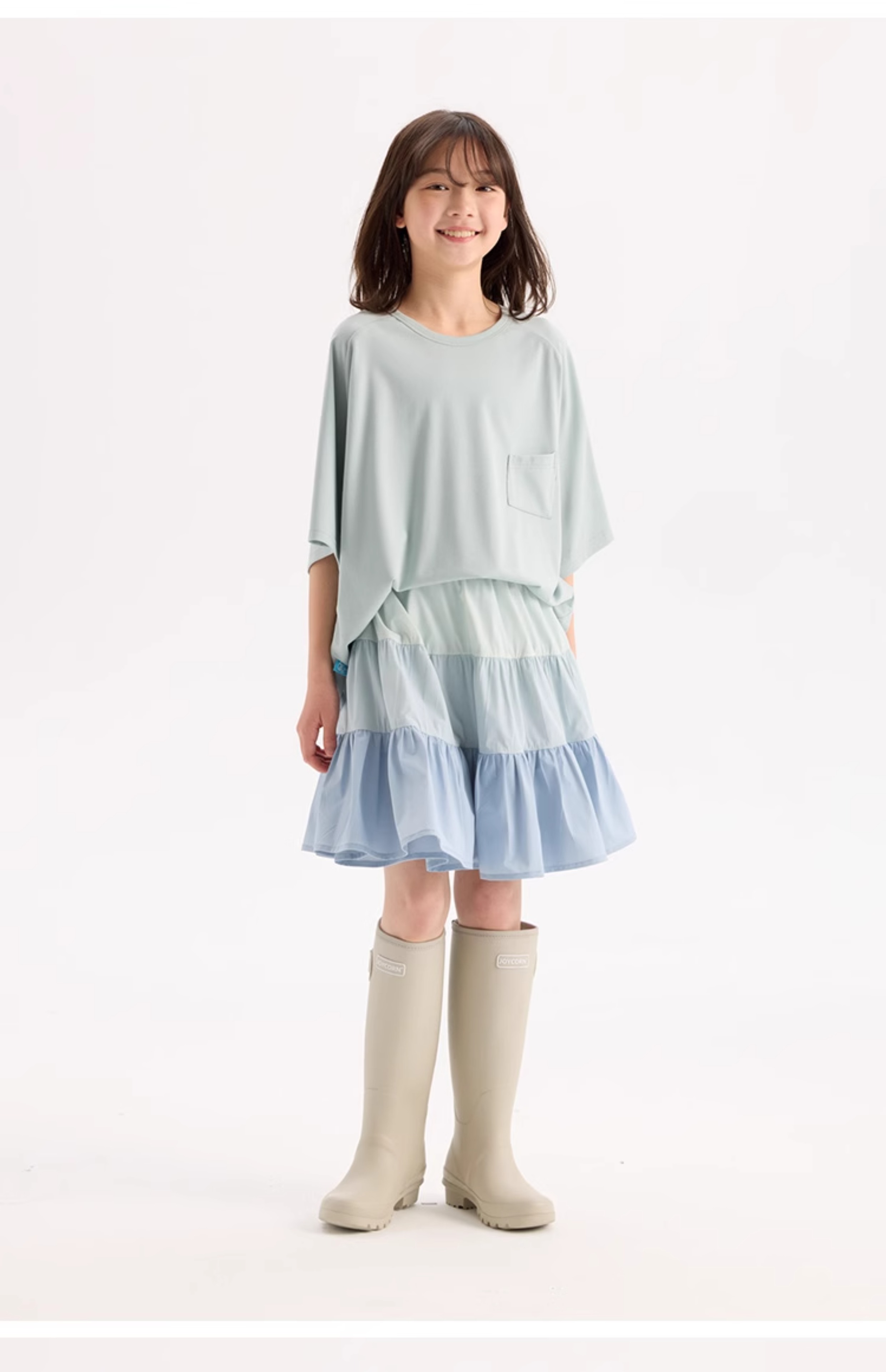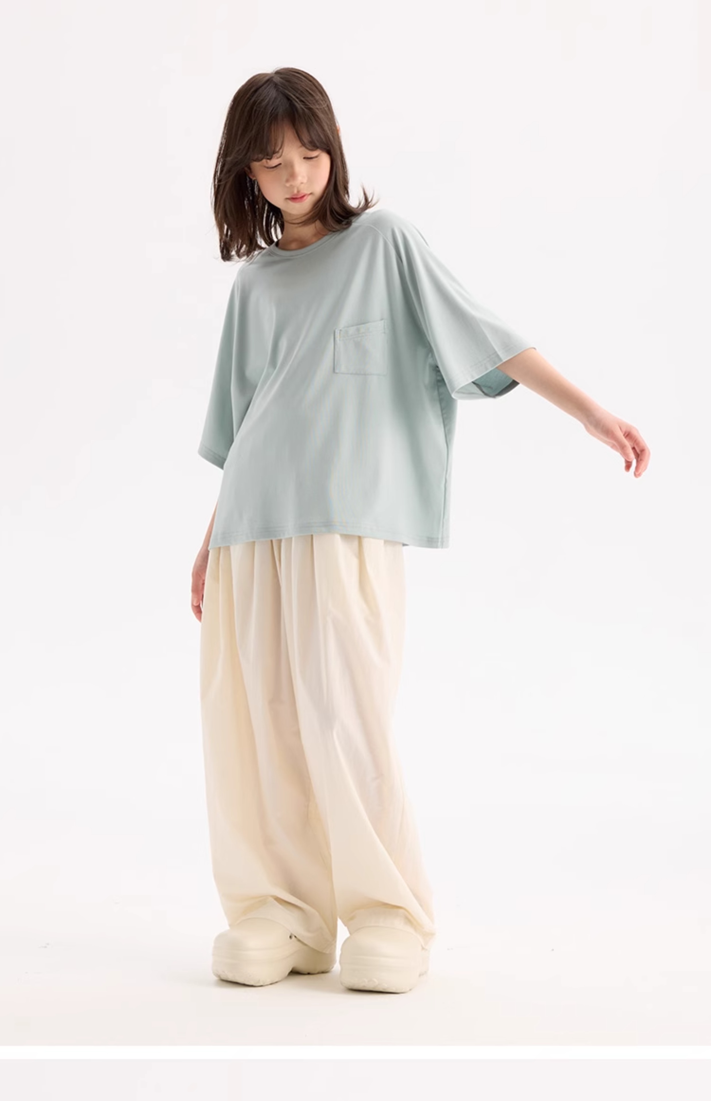 KUUYOO Gogogo中大童夏季短袖親膚天絲t恤兒童寬松插肩袖女童上衣