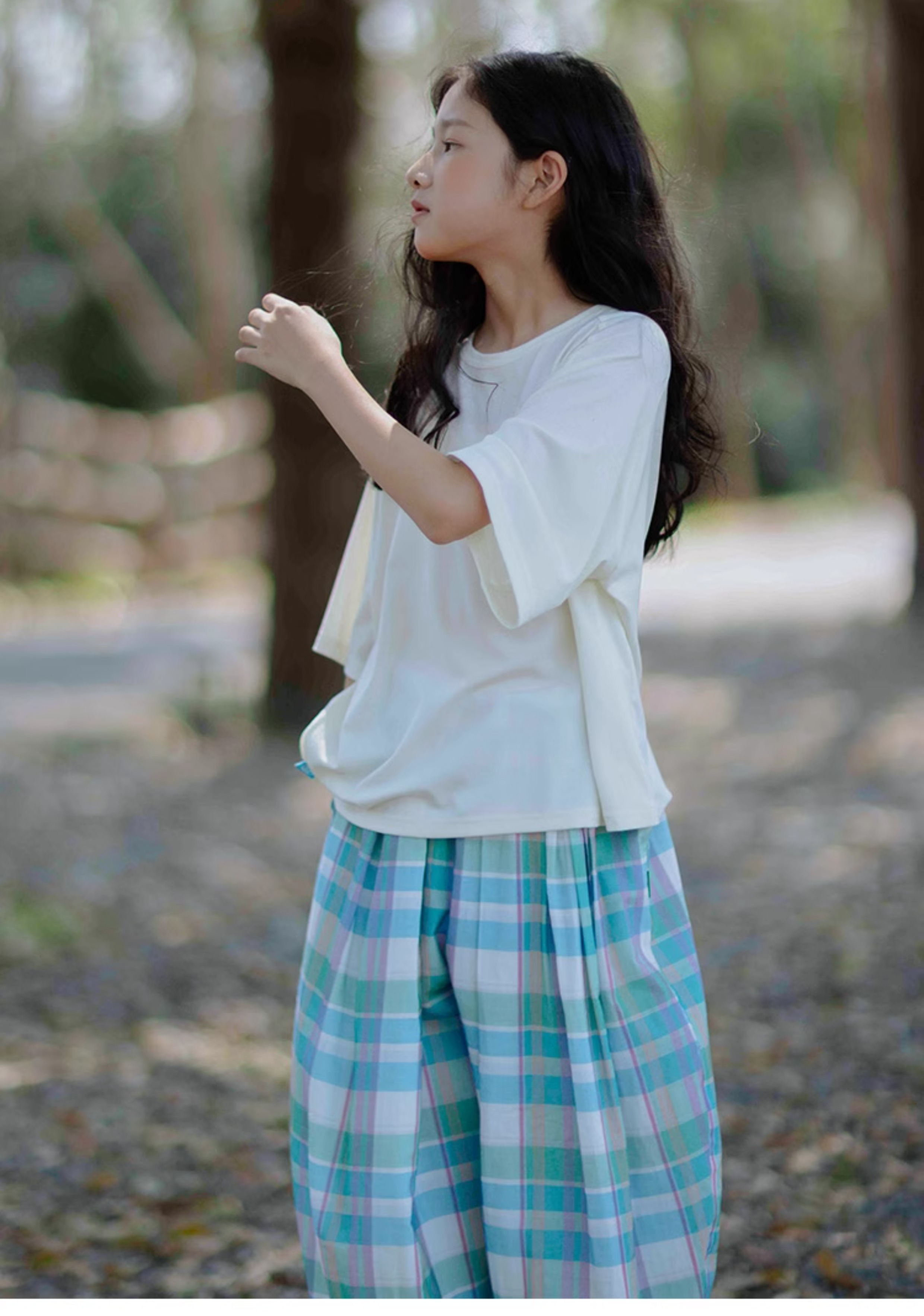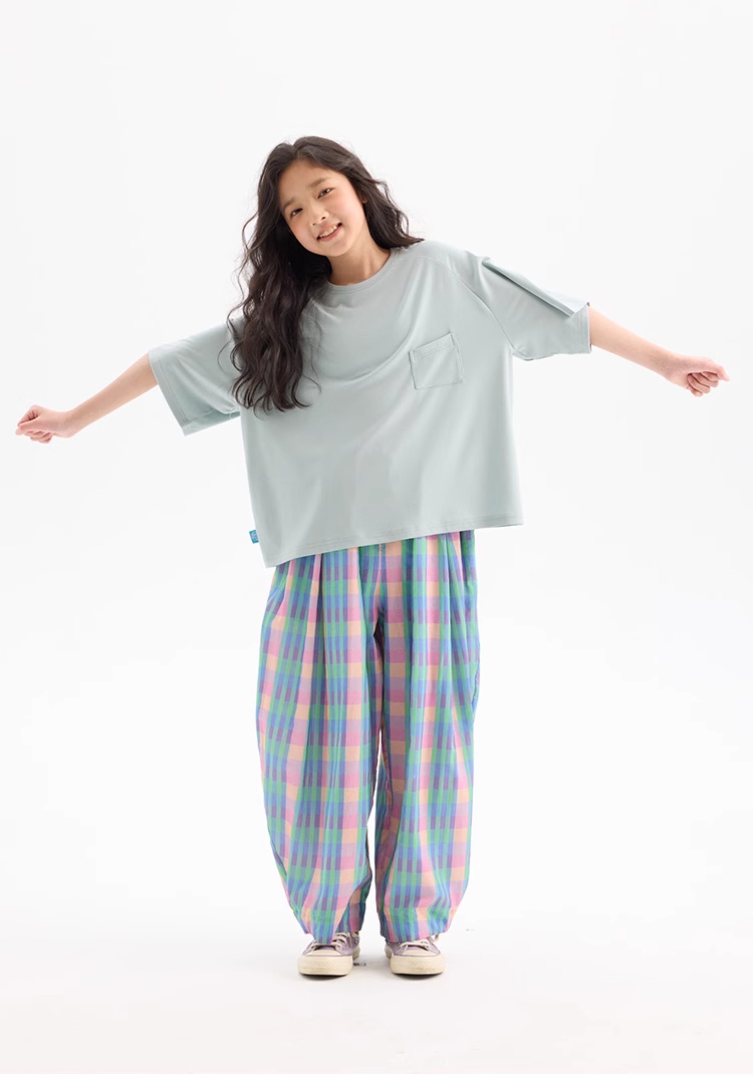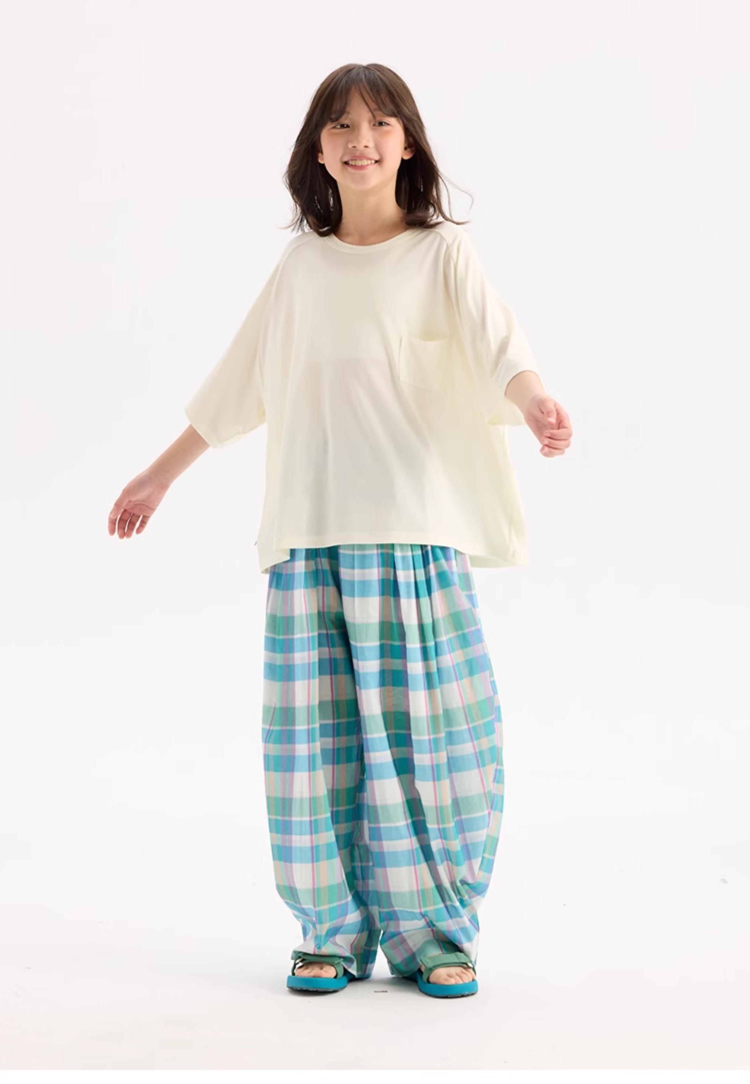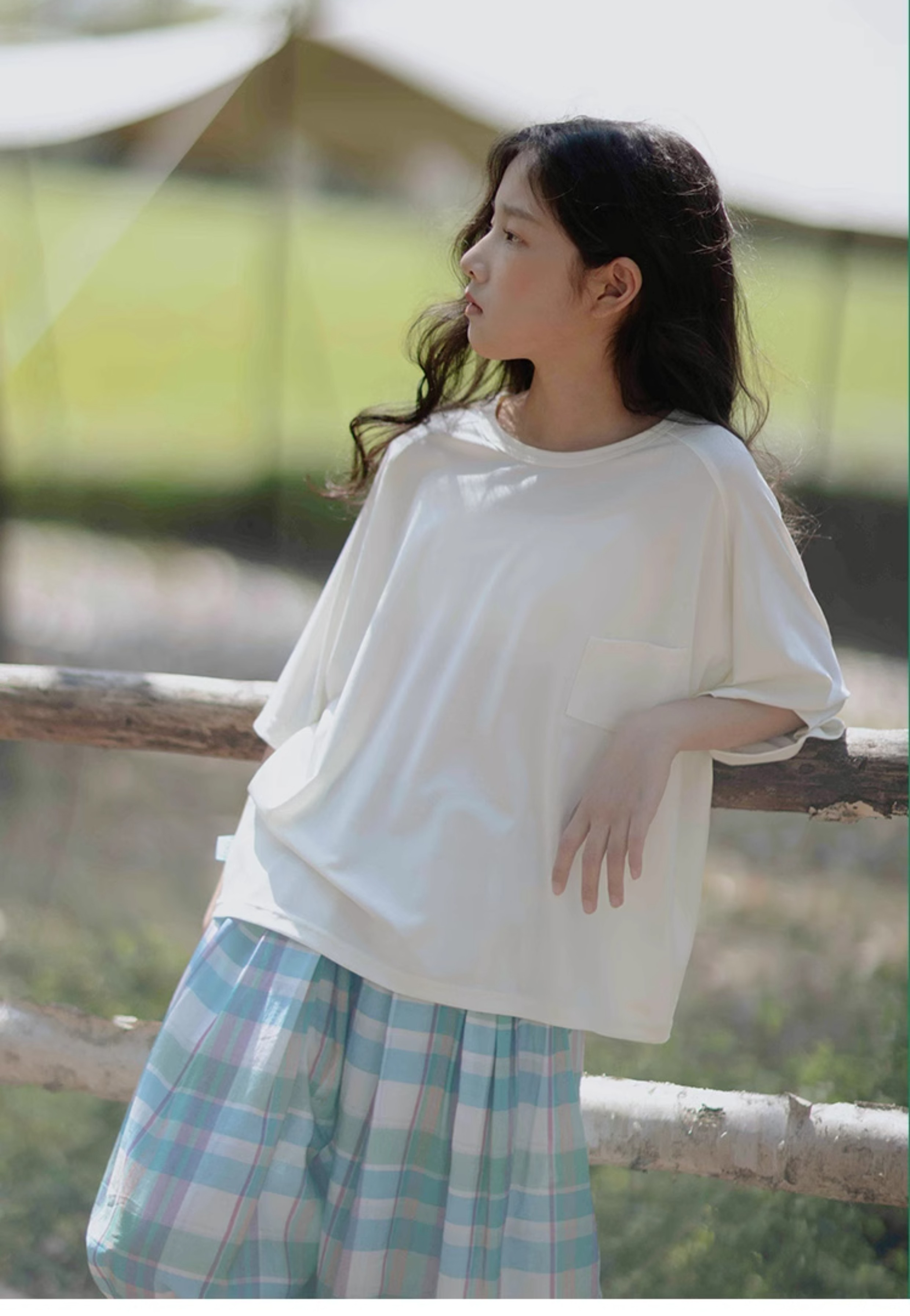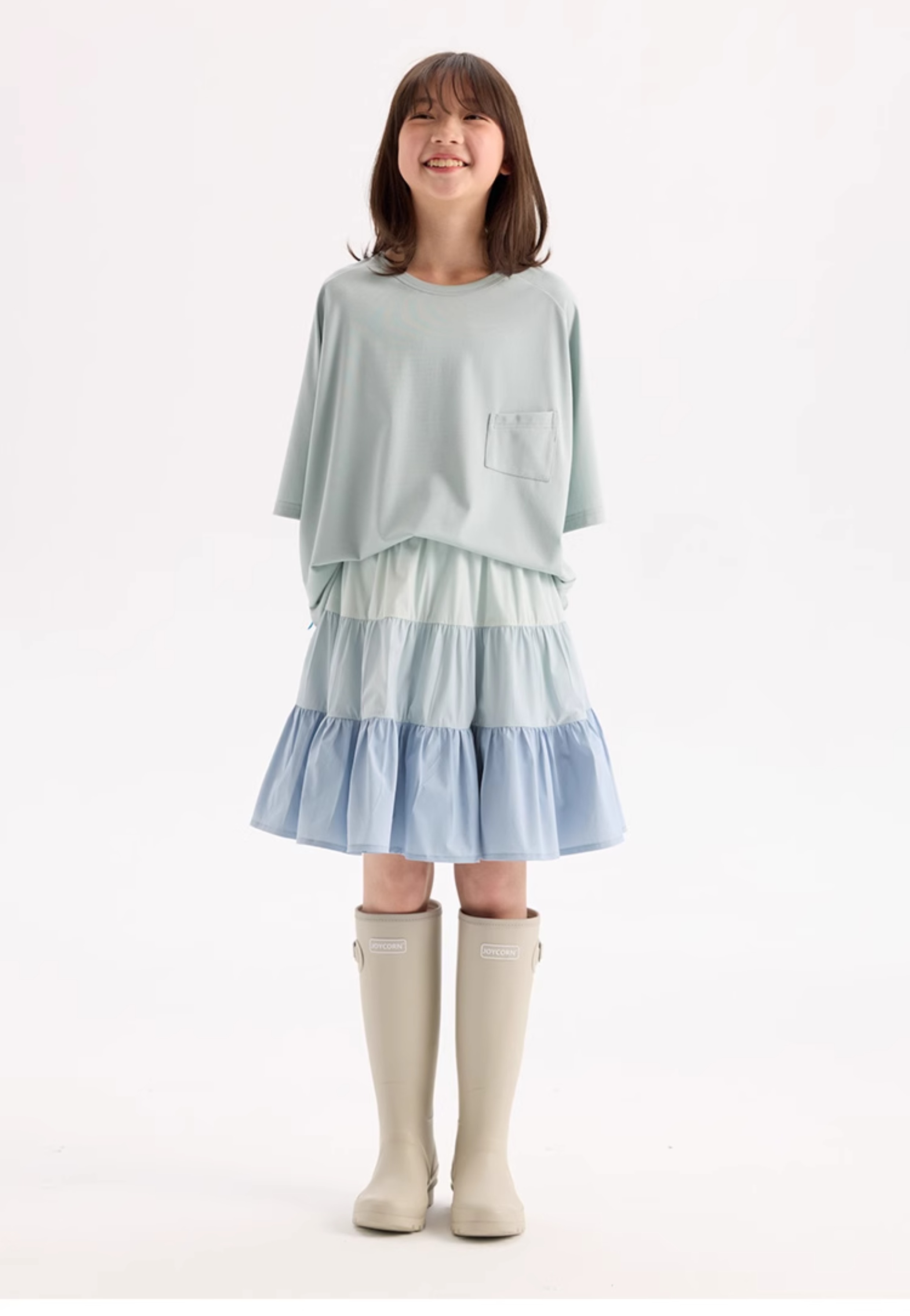 KUUYOO Gogogo中大童夏季短袖親膚天絲t恤兒童寬松插肩袖女童上衣