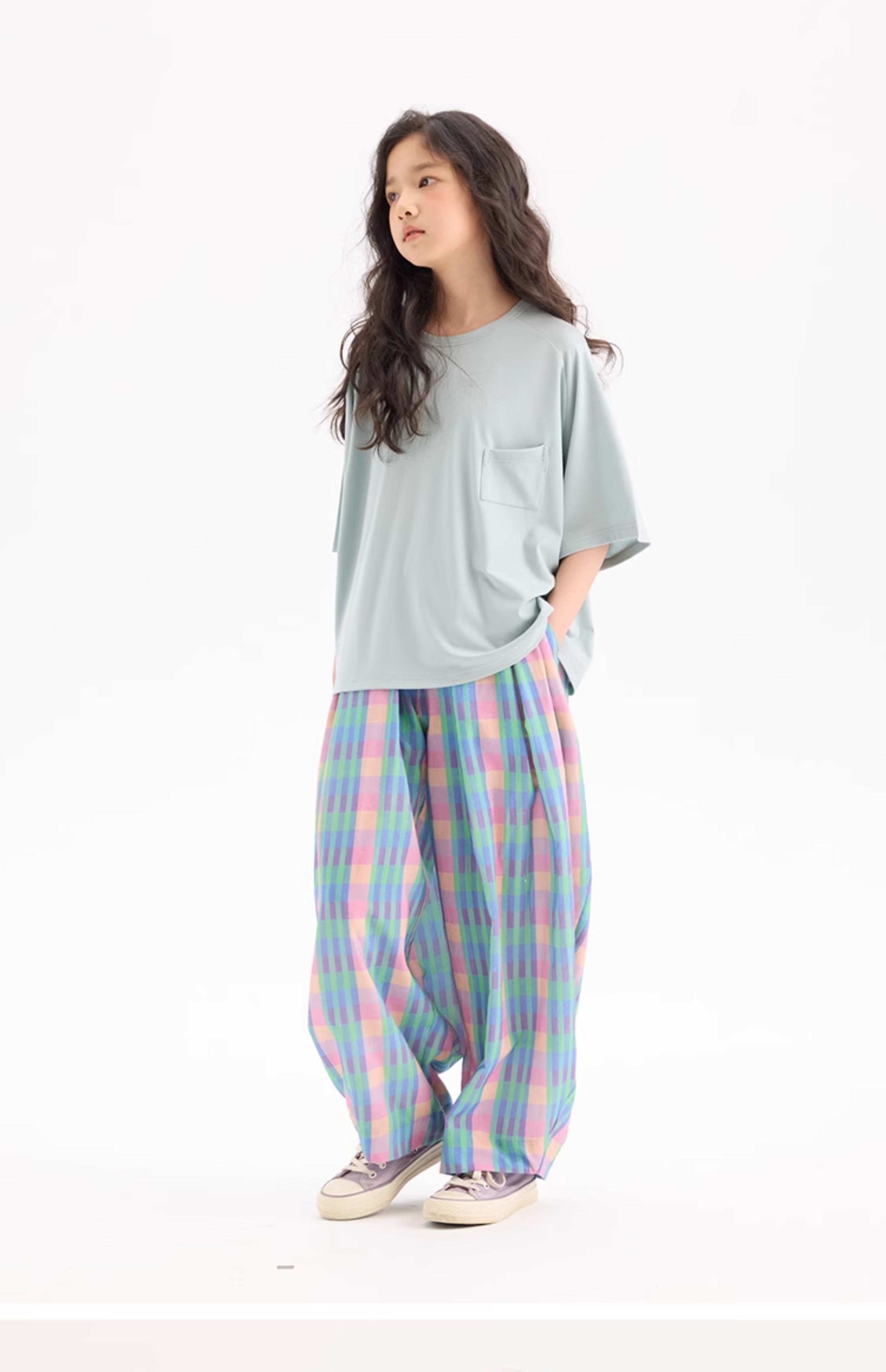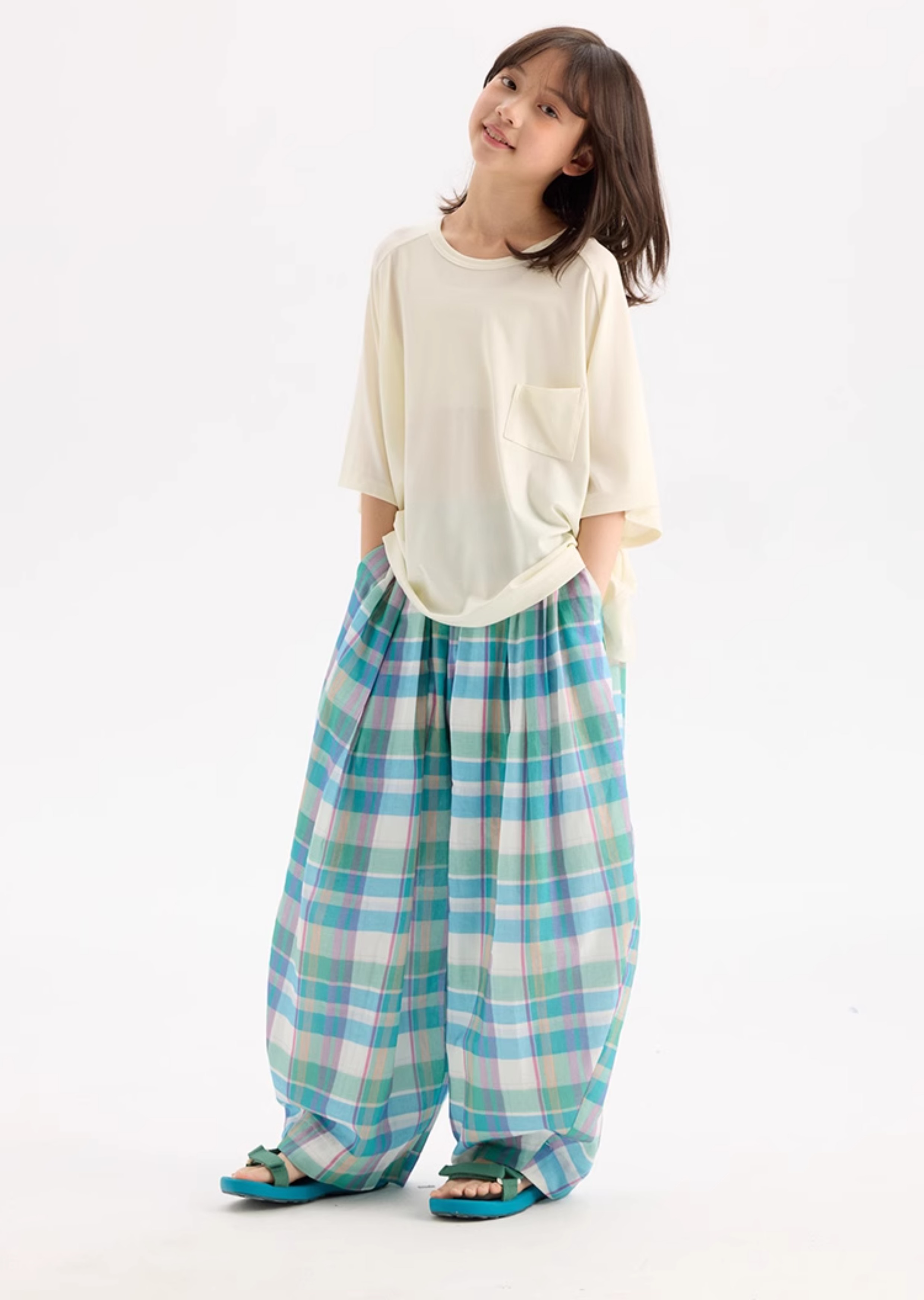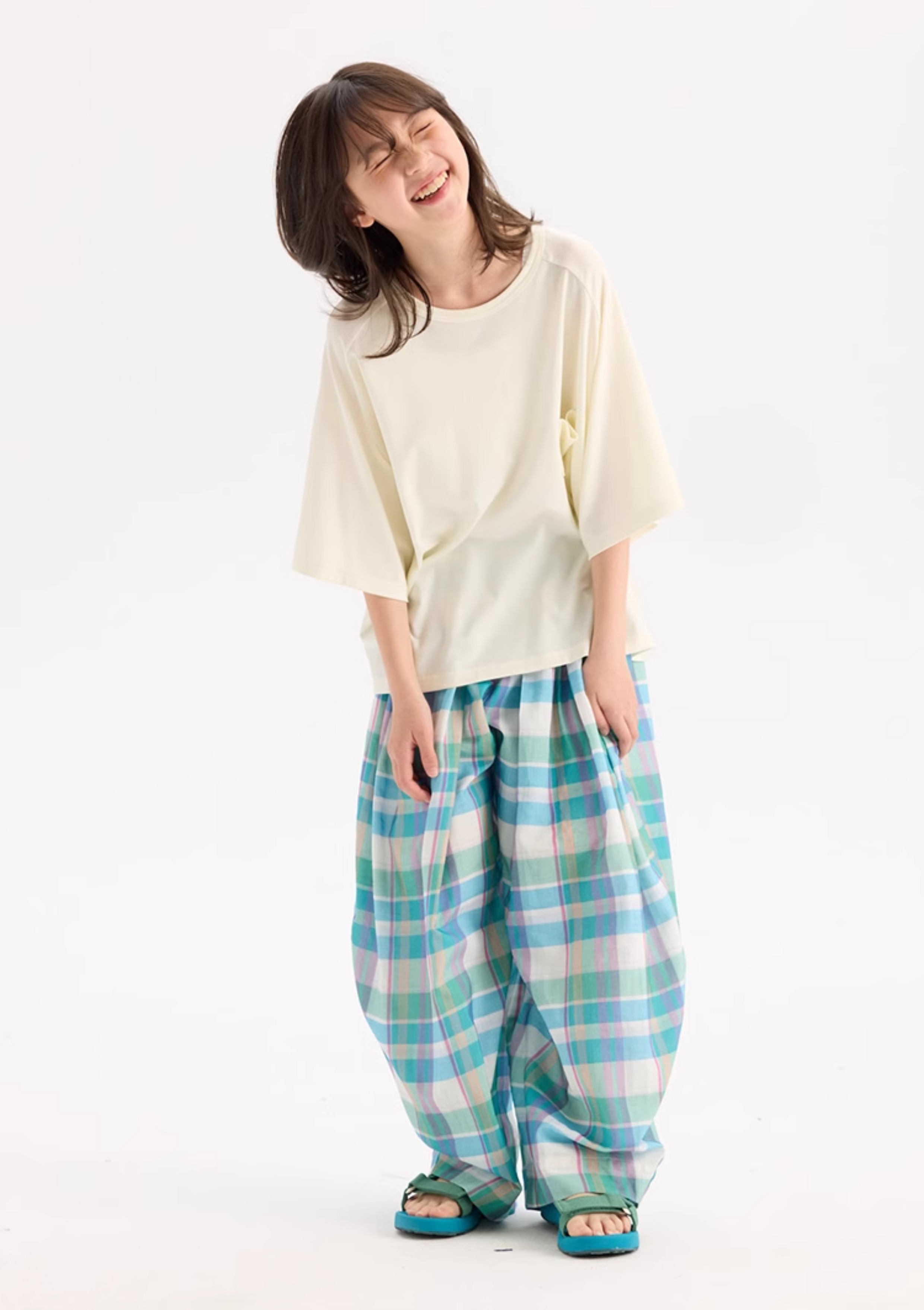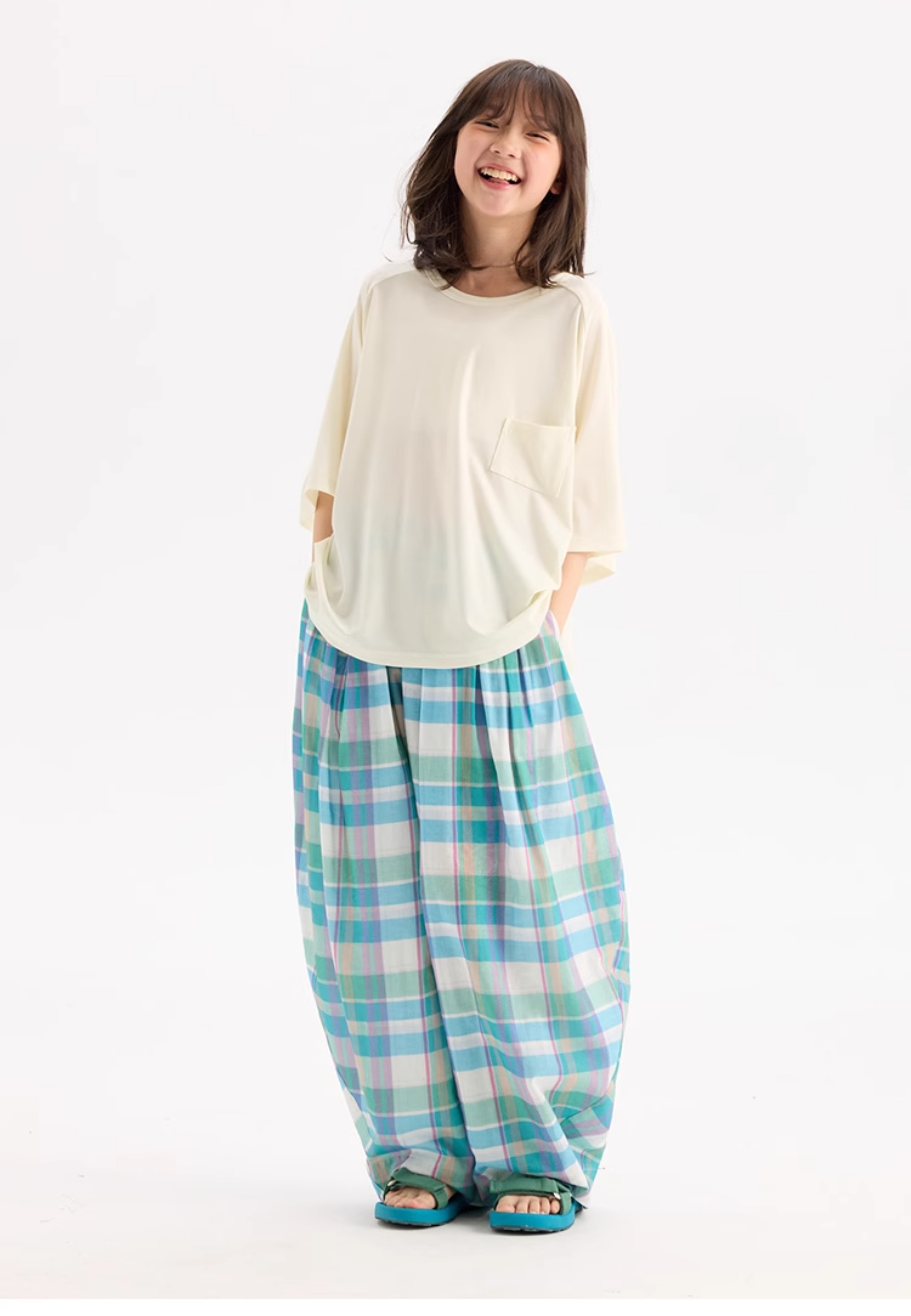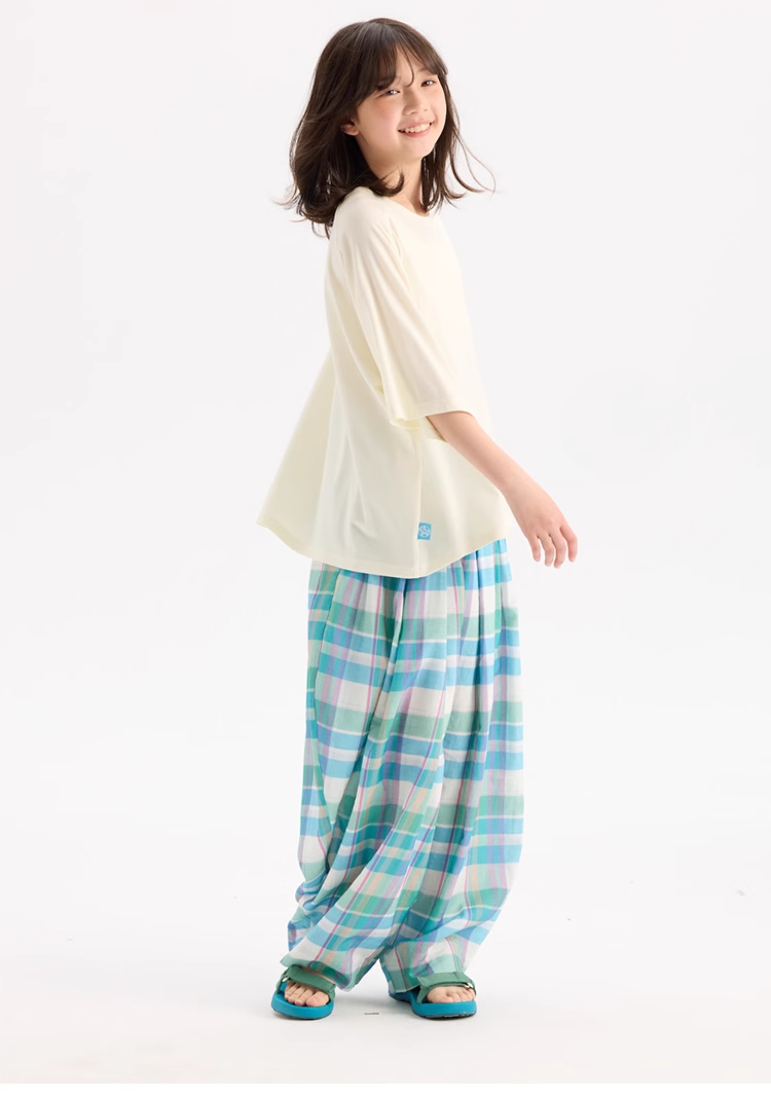 KUUYOO Gogogo中大童夏季短袖親膚天絲t恤兒童寬松插肩袖女童上衣