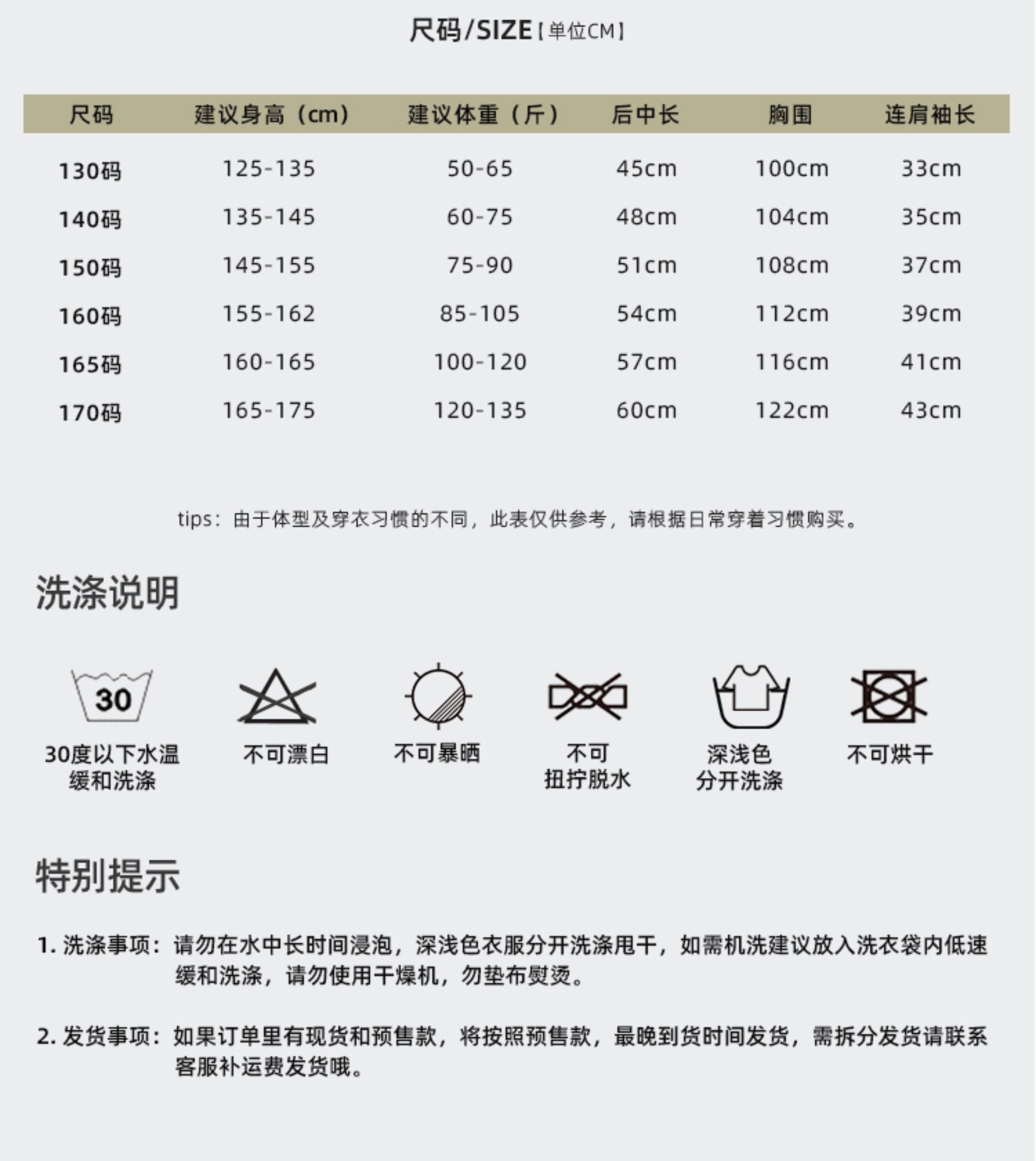 款式及尺寸: