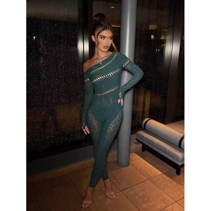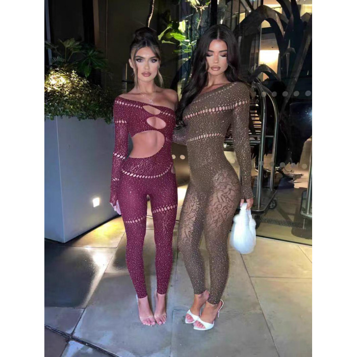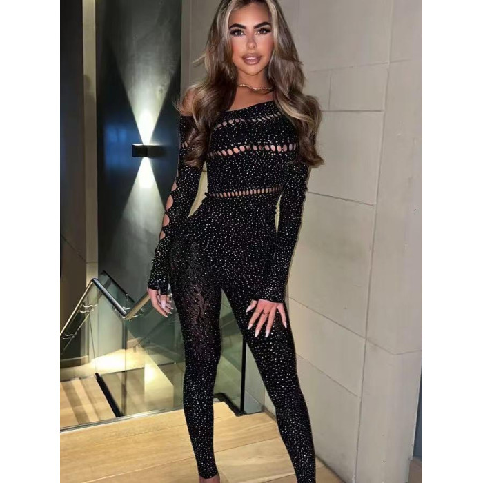 heels舞服歐美性感燙鑽閃亮辣妹網衣爵士jazz長袖上衣連體衣