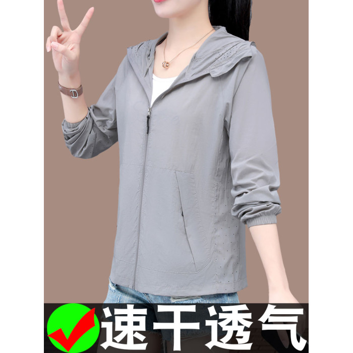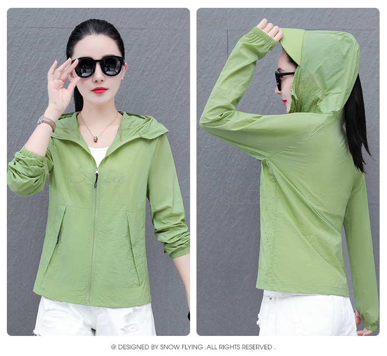 防紫外線防曬衣女夏2025新款連帽大碼冰絲涼感綠色女士時尚防曬服
