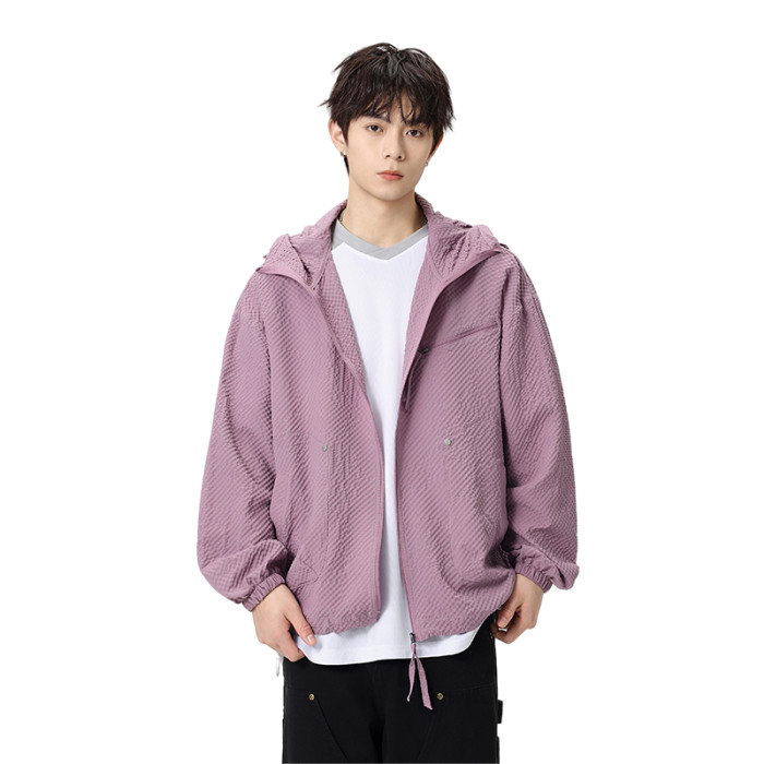 WASSUP NURAYA泡泡格速乾防曬衣男夏薄款連帽防紫外線情侶防曬服
