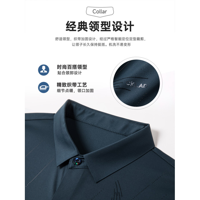 啄木鳥翻領印花襯衫男士短袖夏季薄款中年爸爸無痕冰絲襯衣男裝C