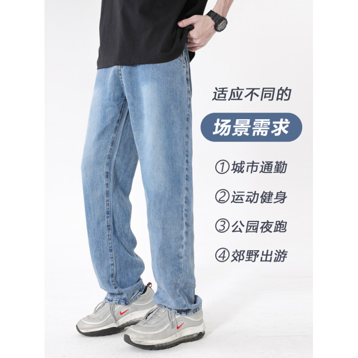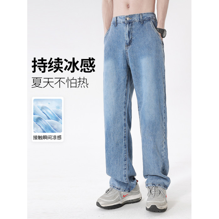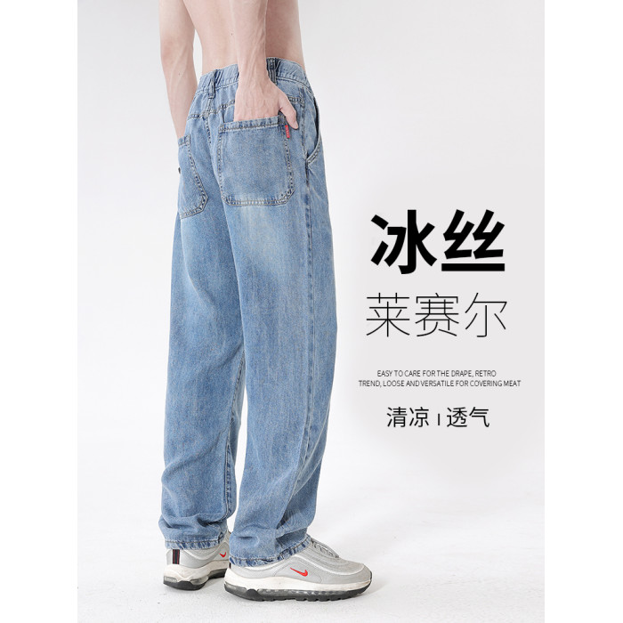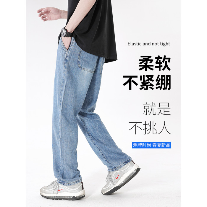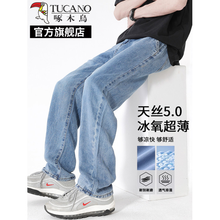 啄木鳥夏季薄款天絲牛仔褲男士2025新款寬松直筒運動休閒長褲子K