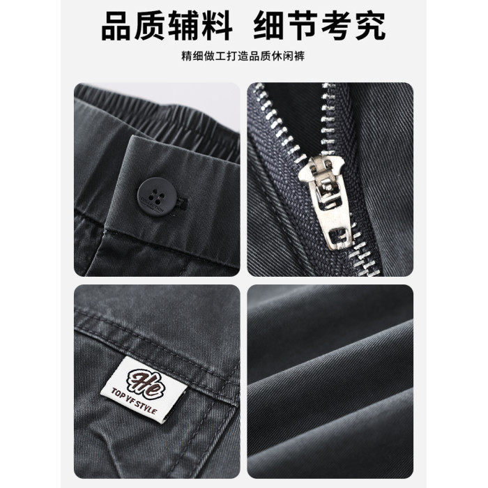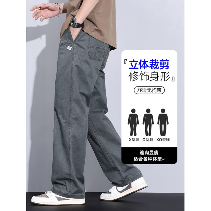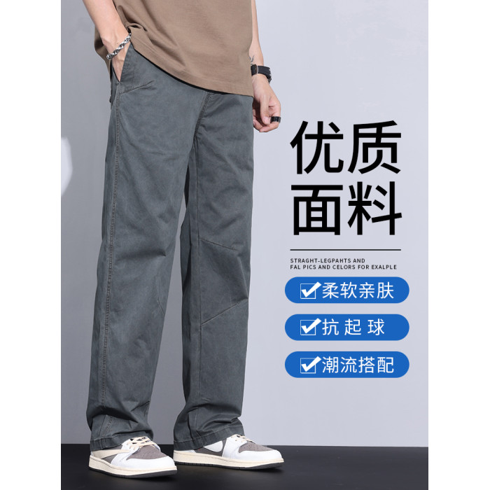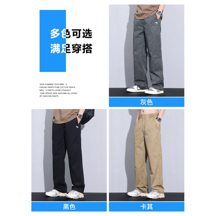 啄木鳥純棉褲子男士休閒褲夏季薄款2025新款寬松直筒運動工裝褲K