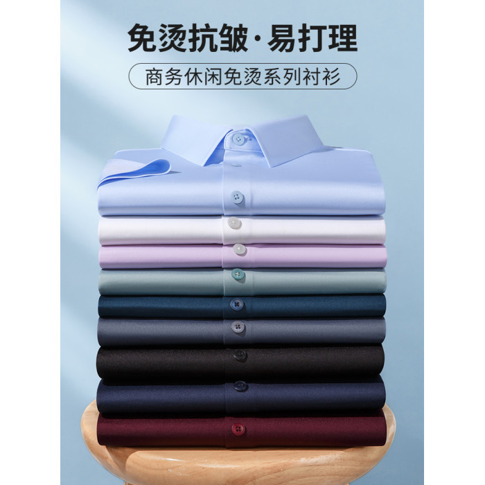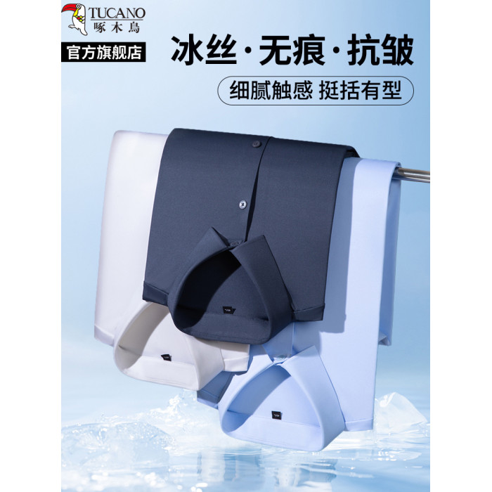 【無痕冰絲高彈】啄木鳥襯衫短袖男士夏季商務休閒高級感抗皺襯衣
