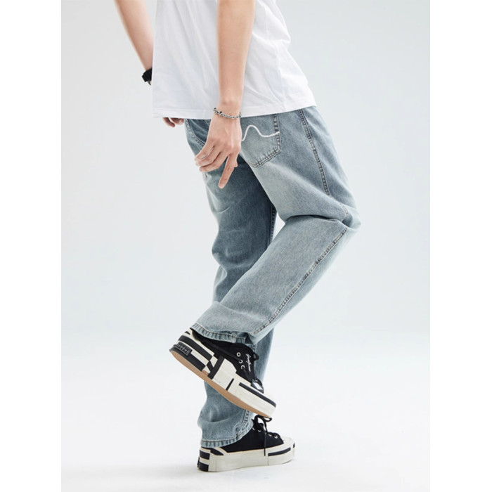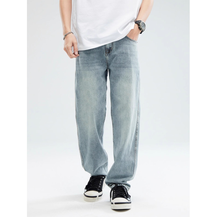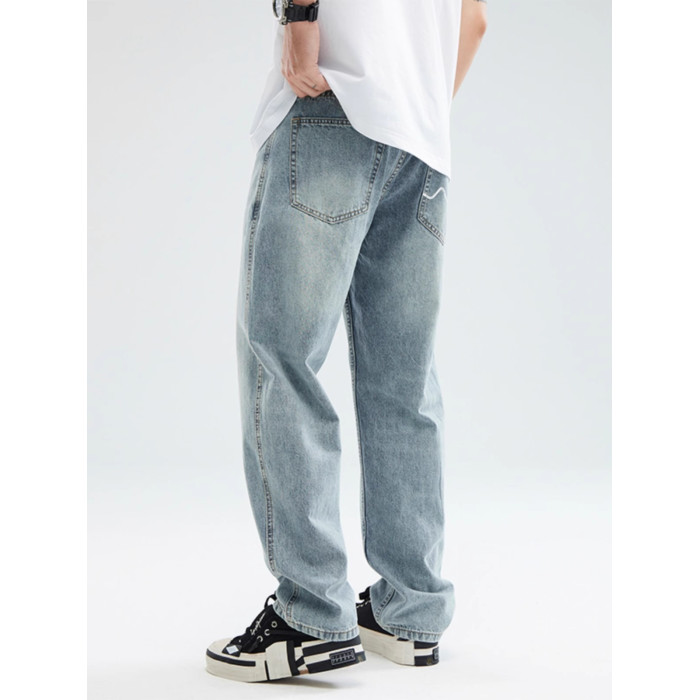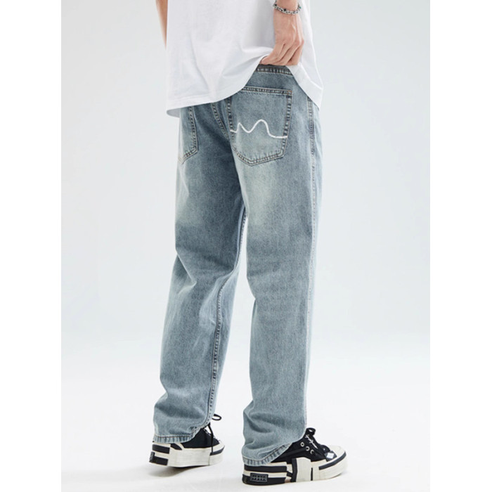淺藍色牛仔褲男夏季2025新款美式潮牌水洗直筒寬松休閒長褲