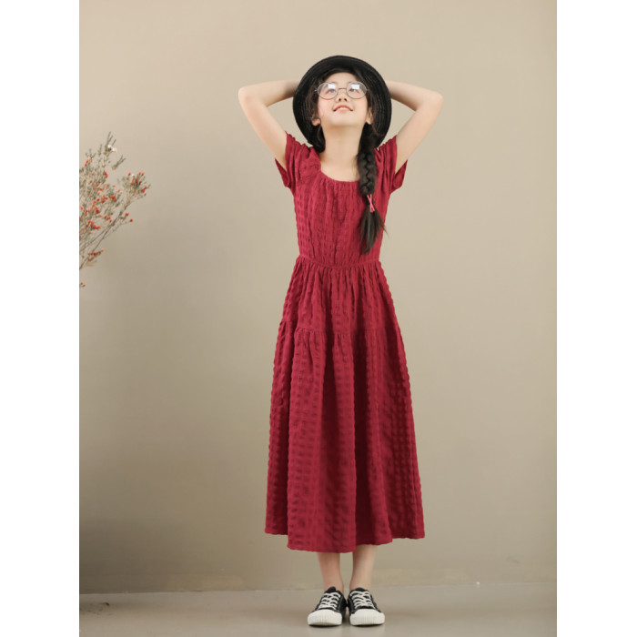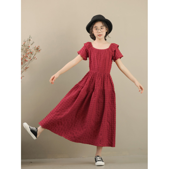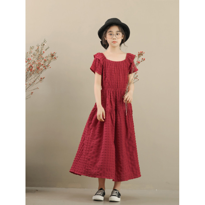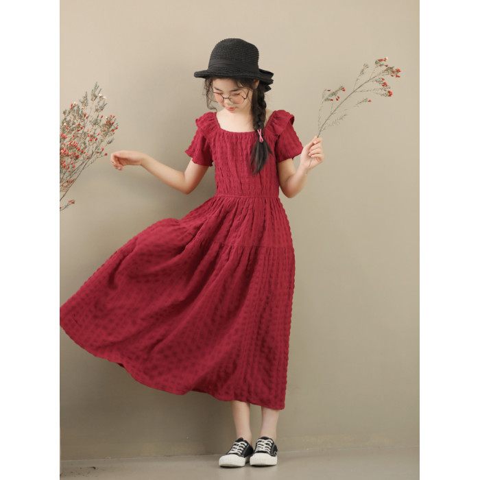 女童連衣裙夏波西米亞童裝小女孩長裙子中大童紅色度假海邊沙灘裙