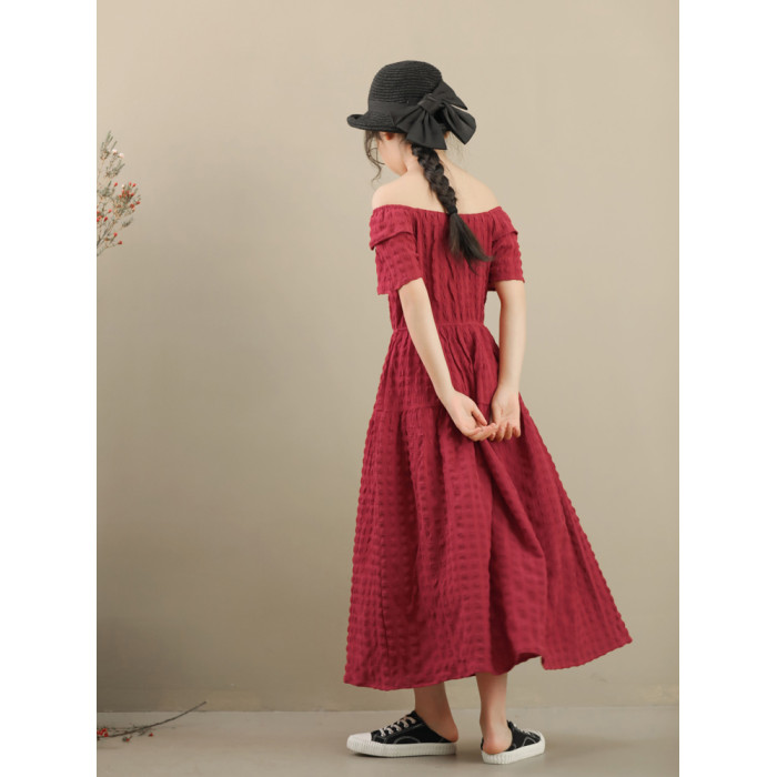 紅色泡泡格連衣裙