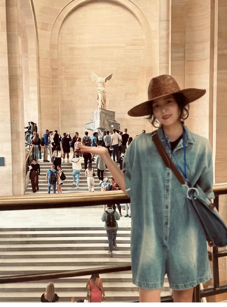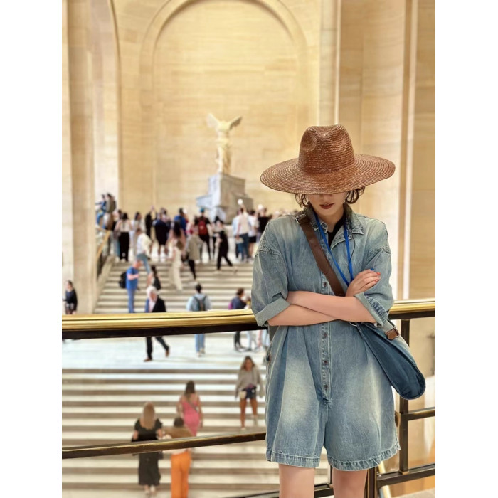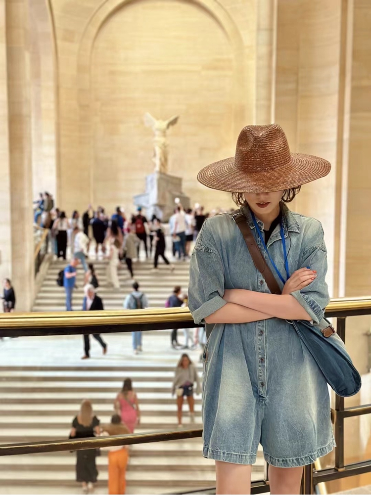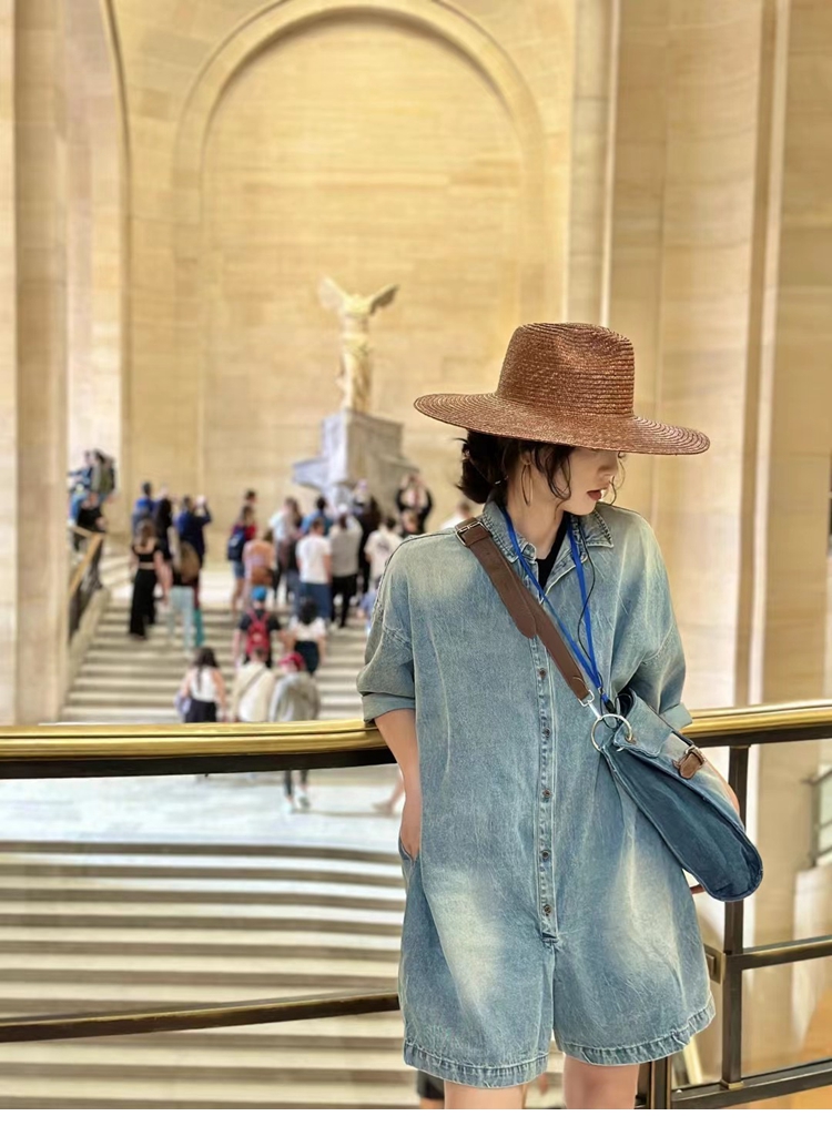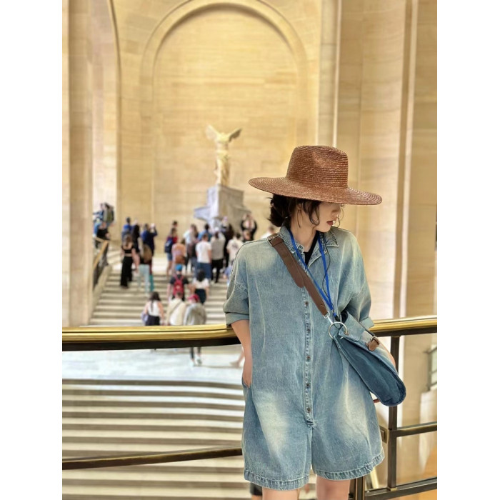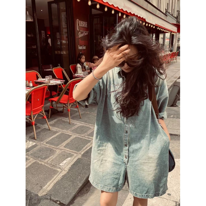 木易初見原創夏季牛仔連體褲復古文藝百搭寬松短褲時尚百搭連體衣