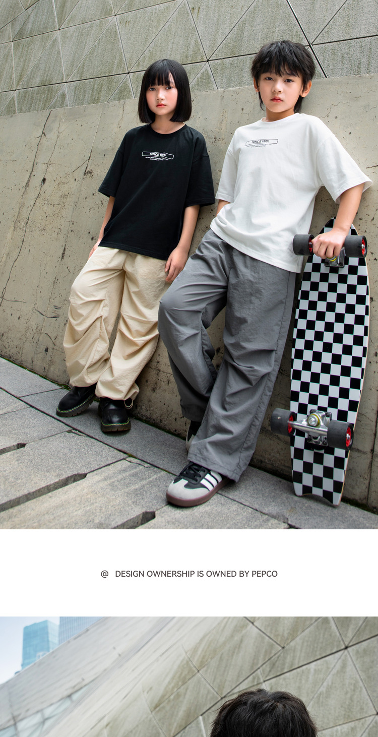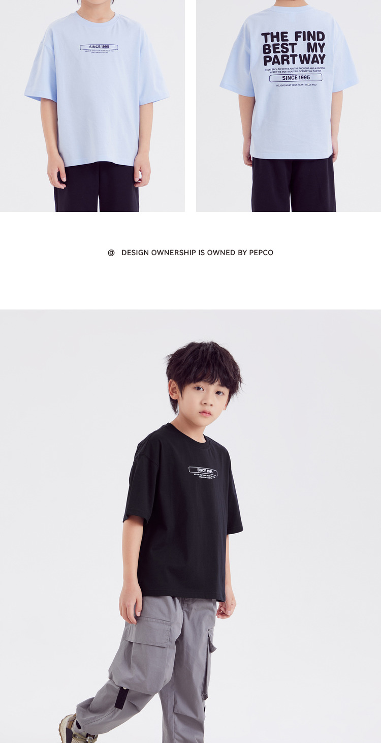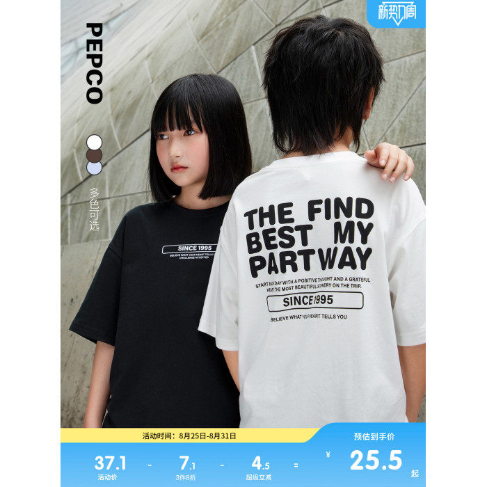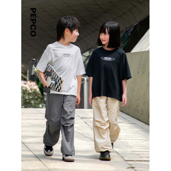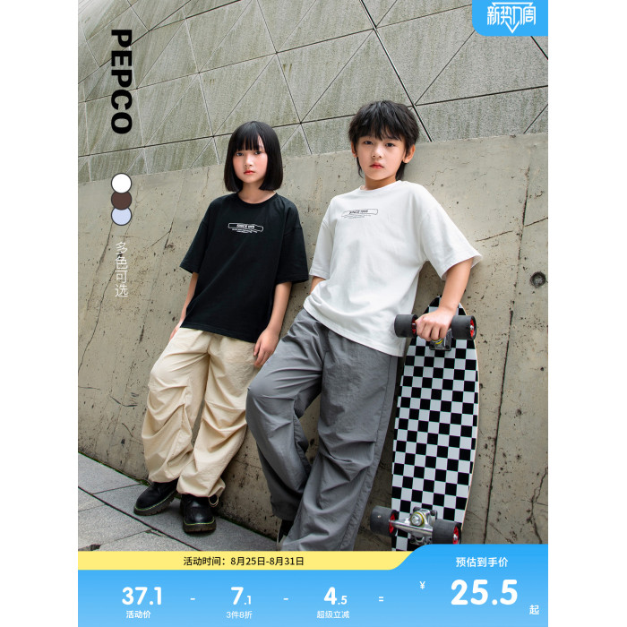 小豬班納童裝夏裝新款兒童短袖T恤中大童男童圓領上衣女童親子裝