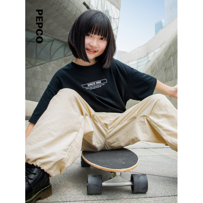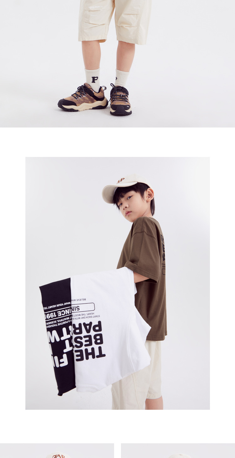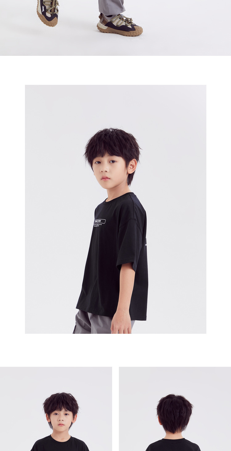 小豬班納童裝夏裝新款兒童短袖T恤中大童男童圓領上衣女童親子裝