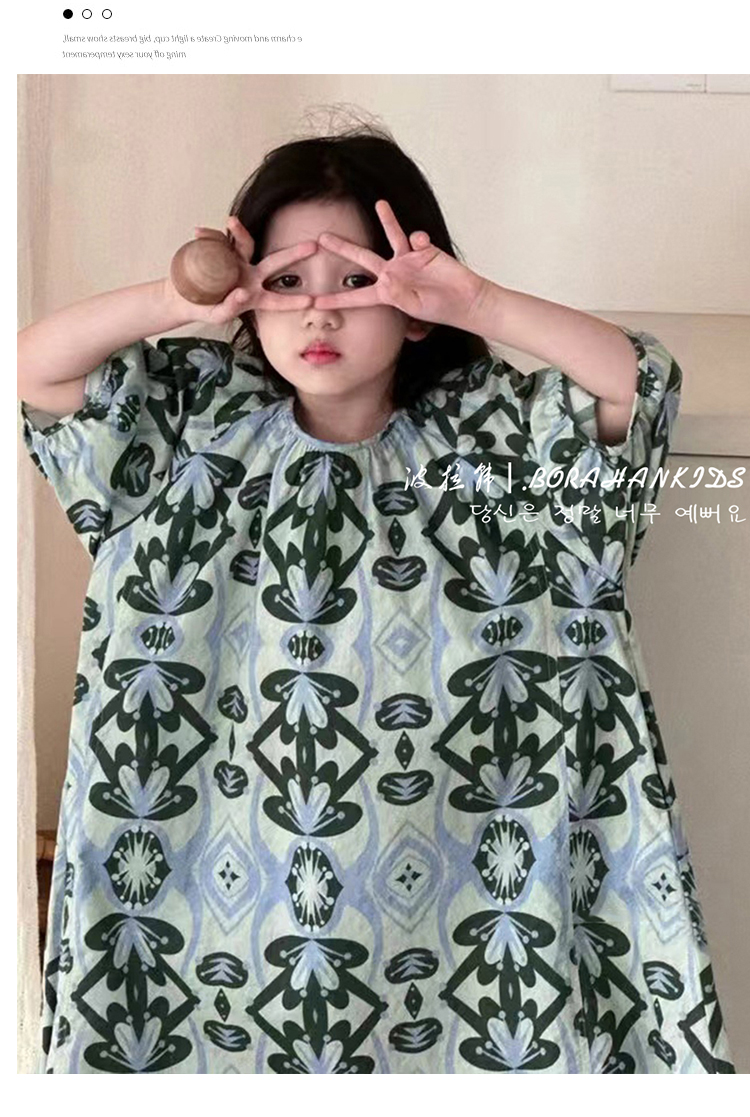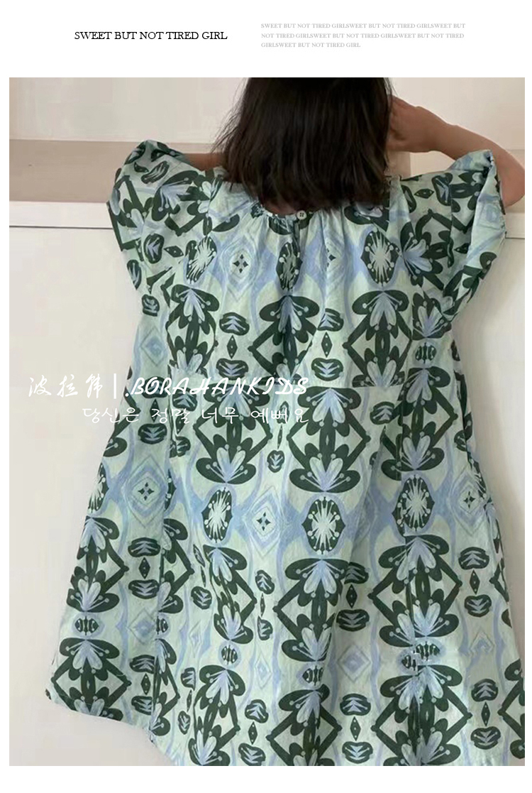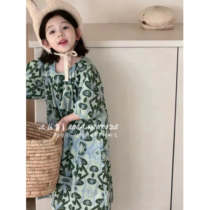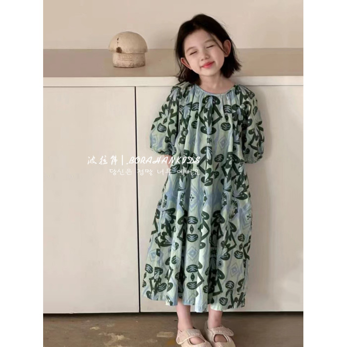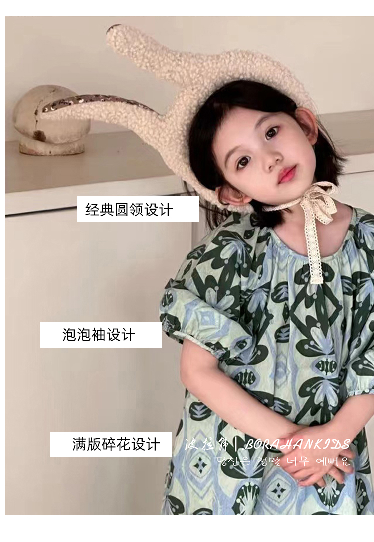 波拉韓童裝女童泡泡袖連衣裙夏裝2025兒童田園風碎花裙小女孩長裙