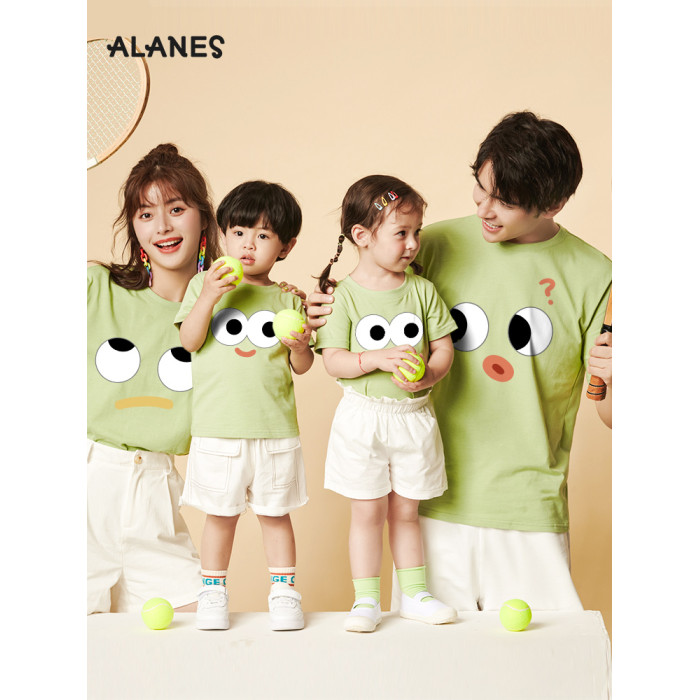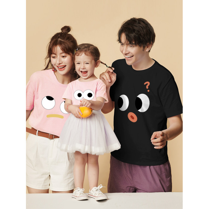 搞怪表情上衣2025新款兒童純棉短袖T恤親子裝一家三口母女裝夏裝