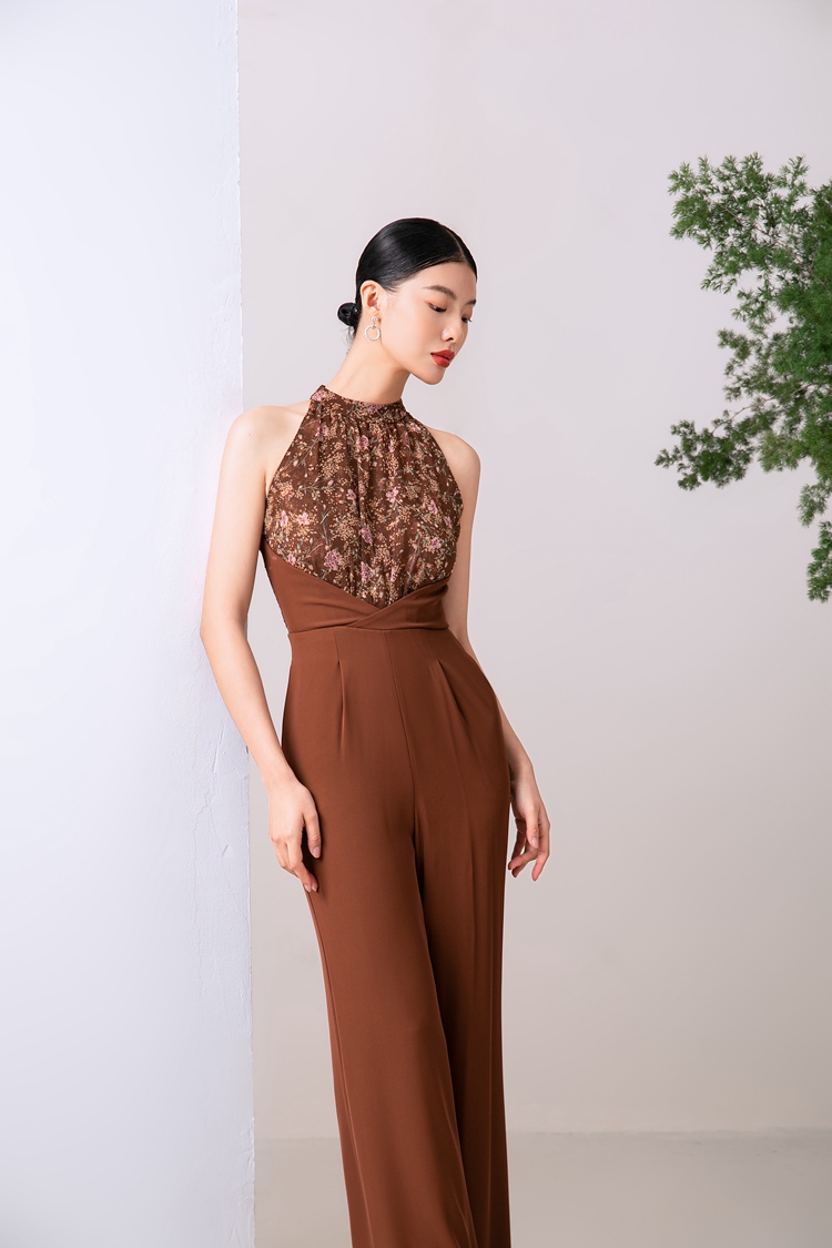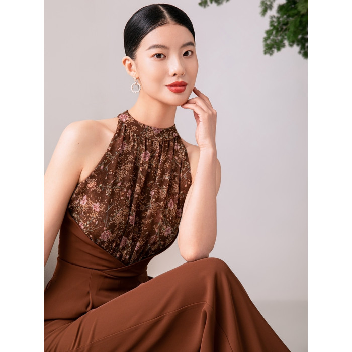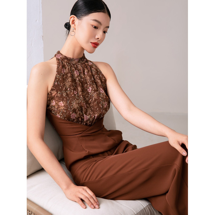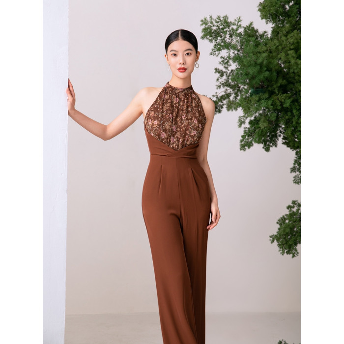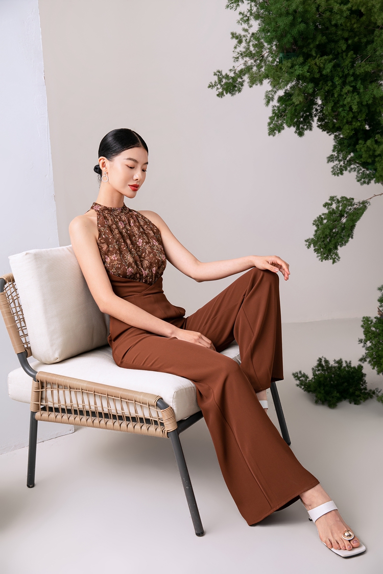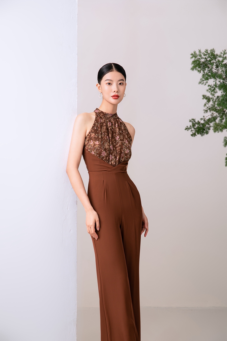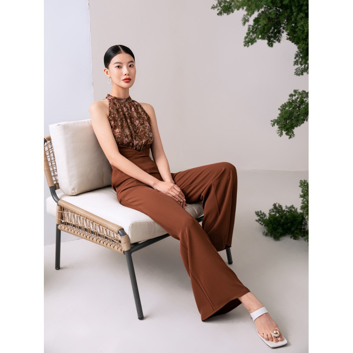 2024夏季新款高級感時尚修身濶腿褲連體衣拼色薄款直筒褲