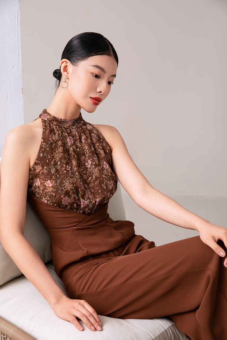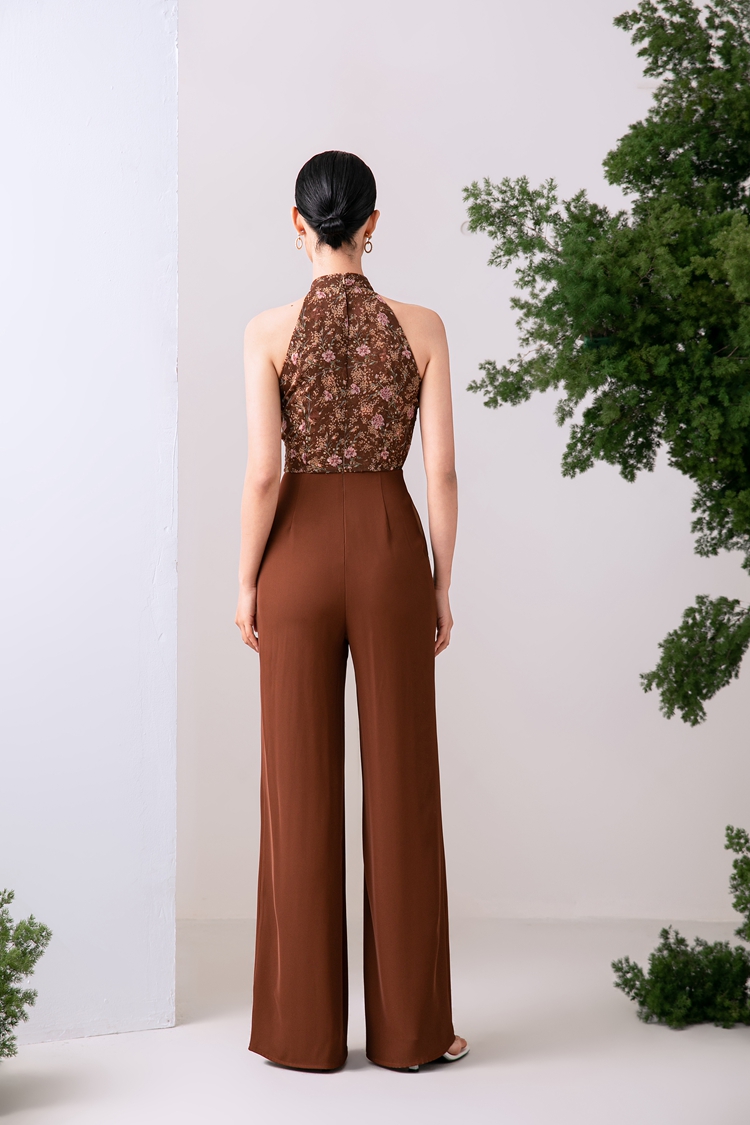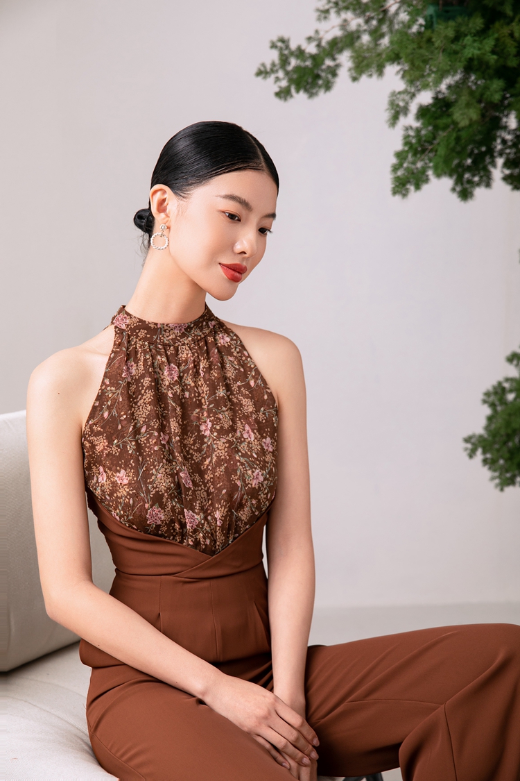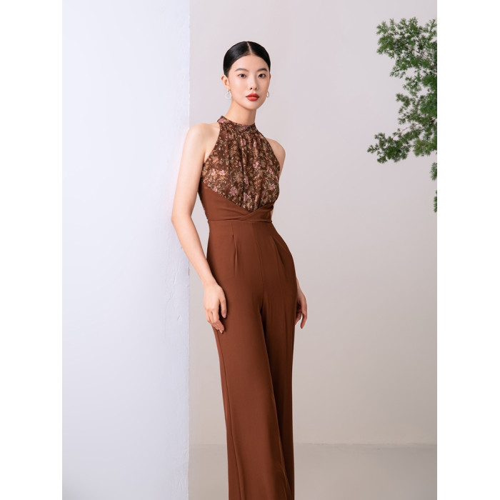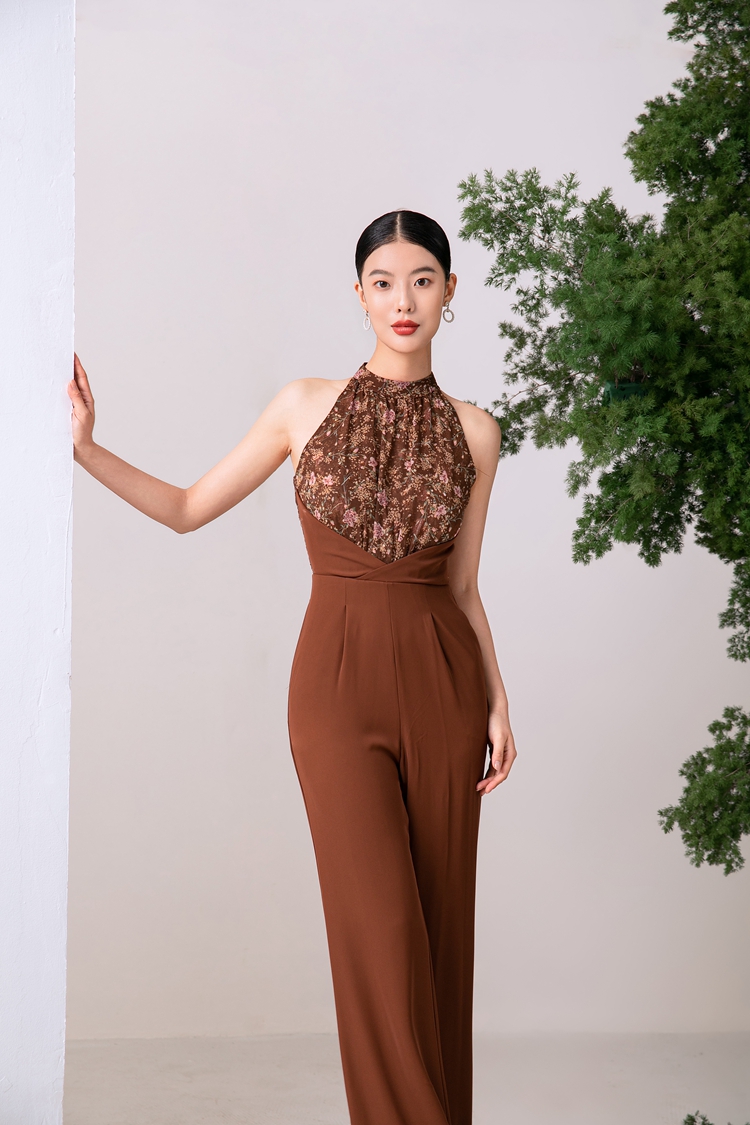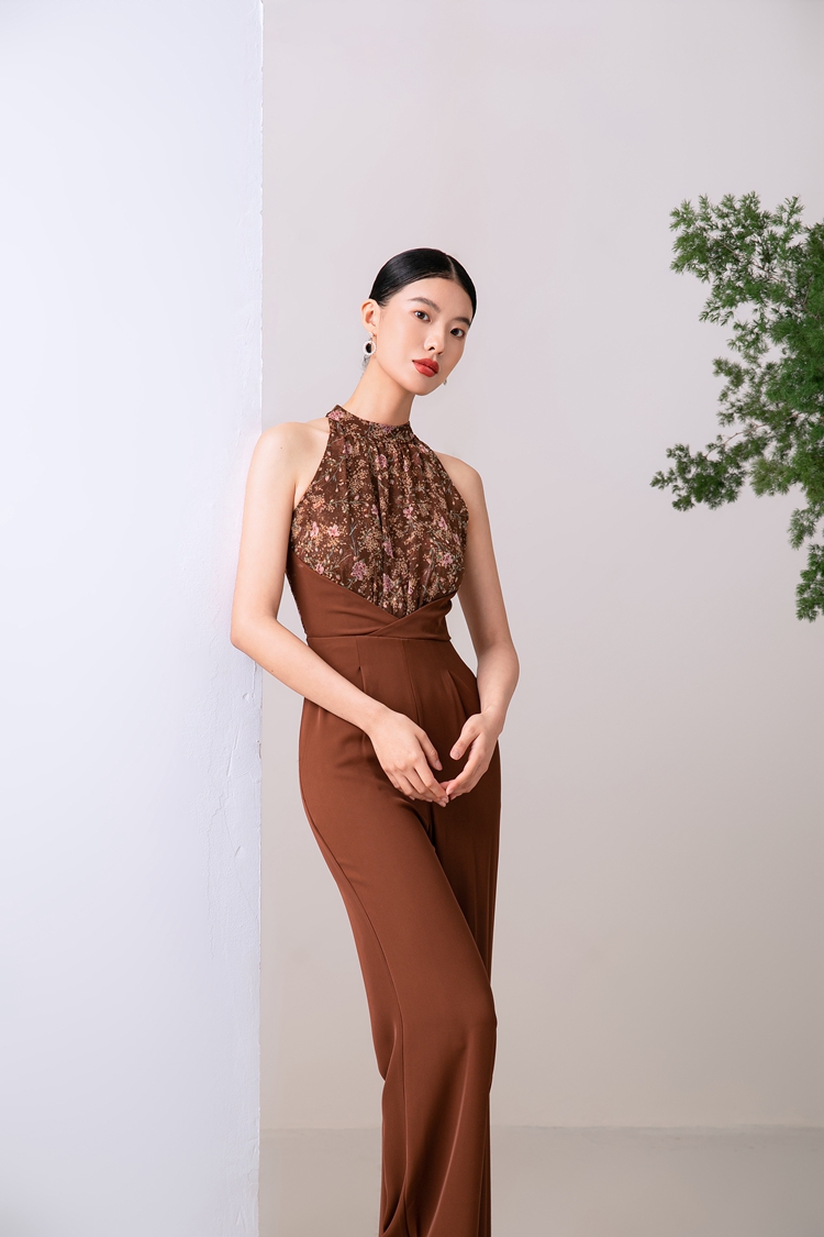 2024夏季新款高級感時尚修身濶腿褲連體衣拼色薄款直筒褲