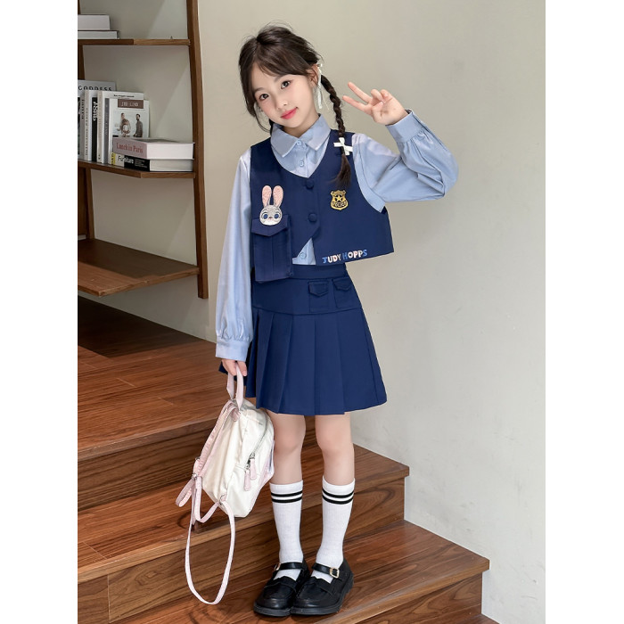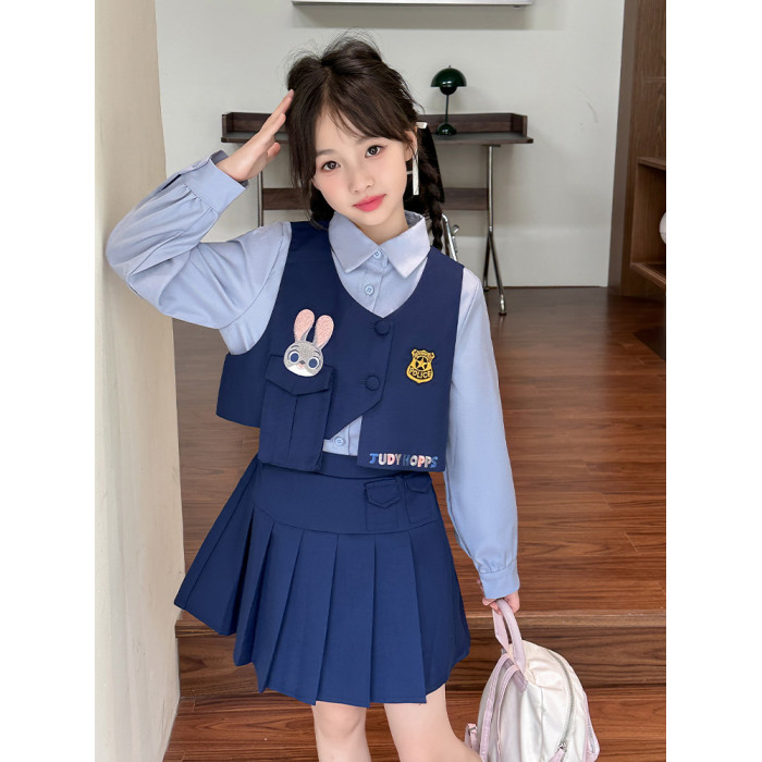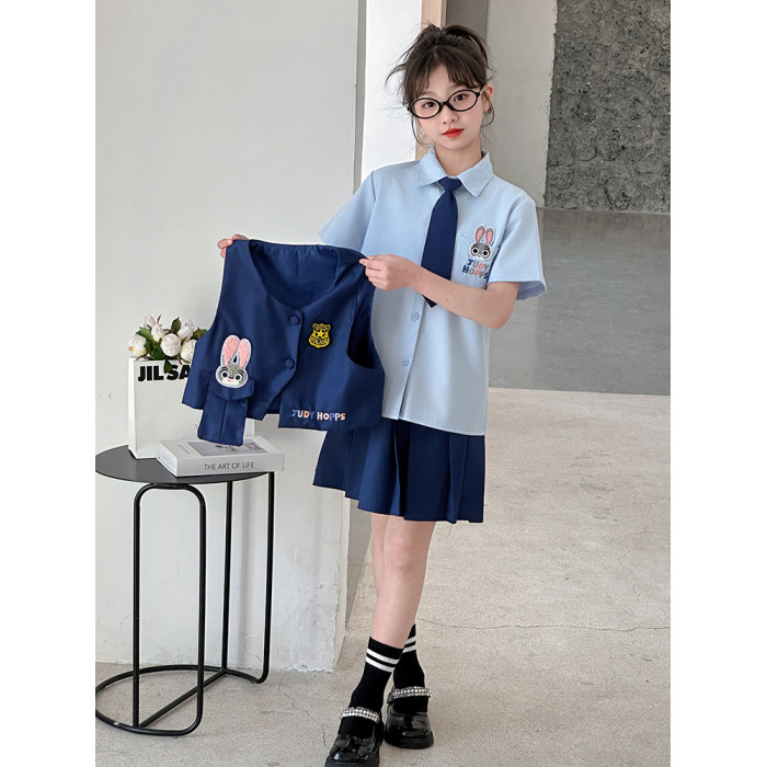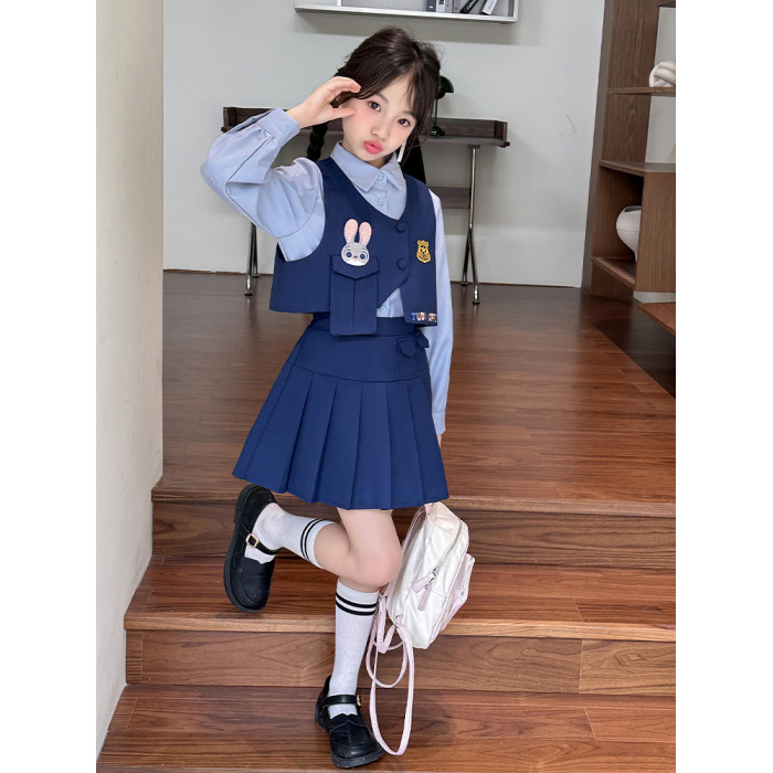 女童JK製服套裝學院風百褶裙春夏2025新款兒童兔子硃迪警官三件套