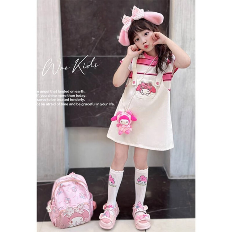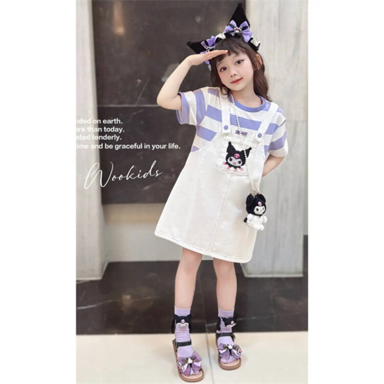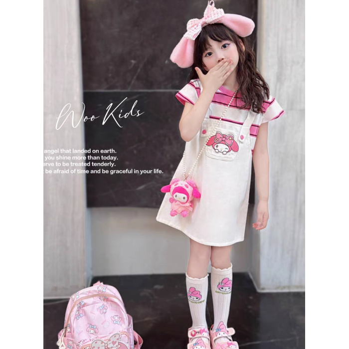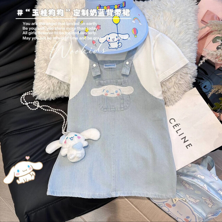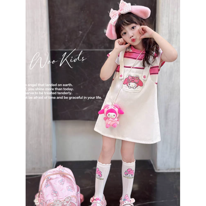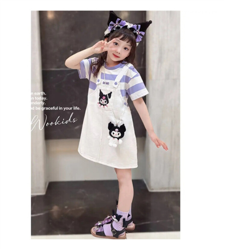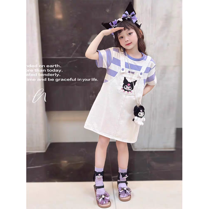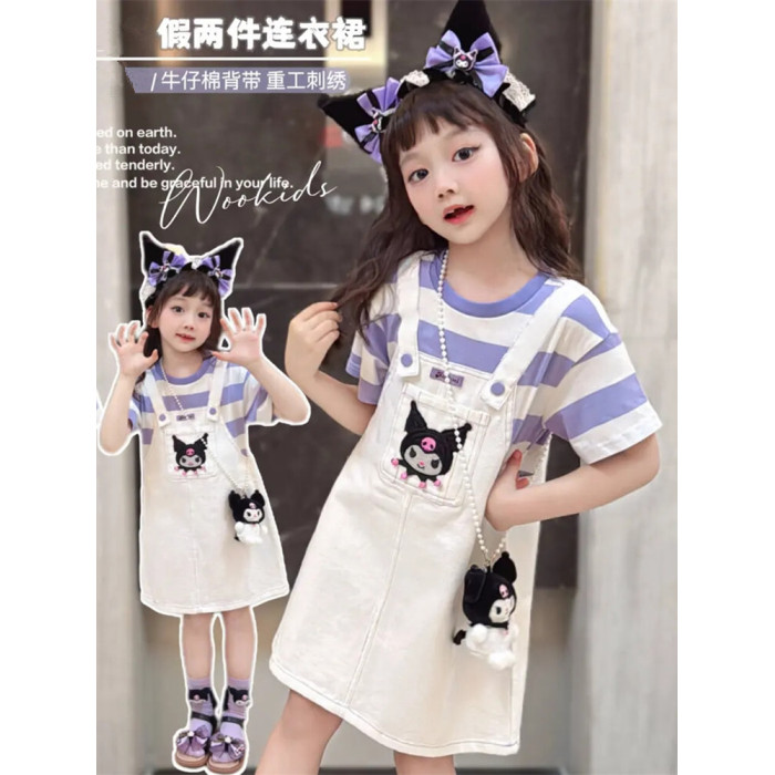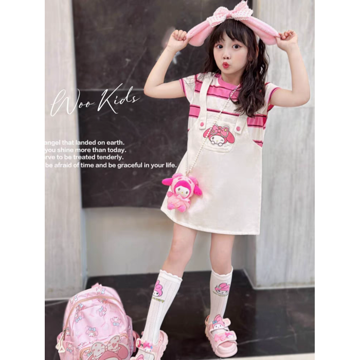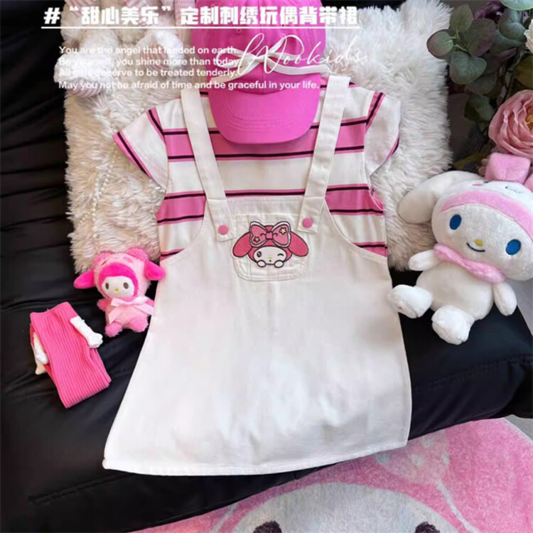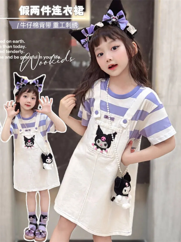 多巴胺穿搭美樂蒂連衣裙女童庫洛米假兩件背帶裙甜美洋氣玉桂狗裙