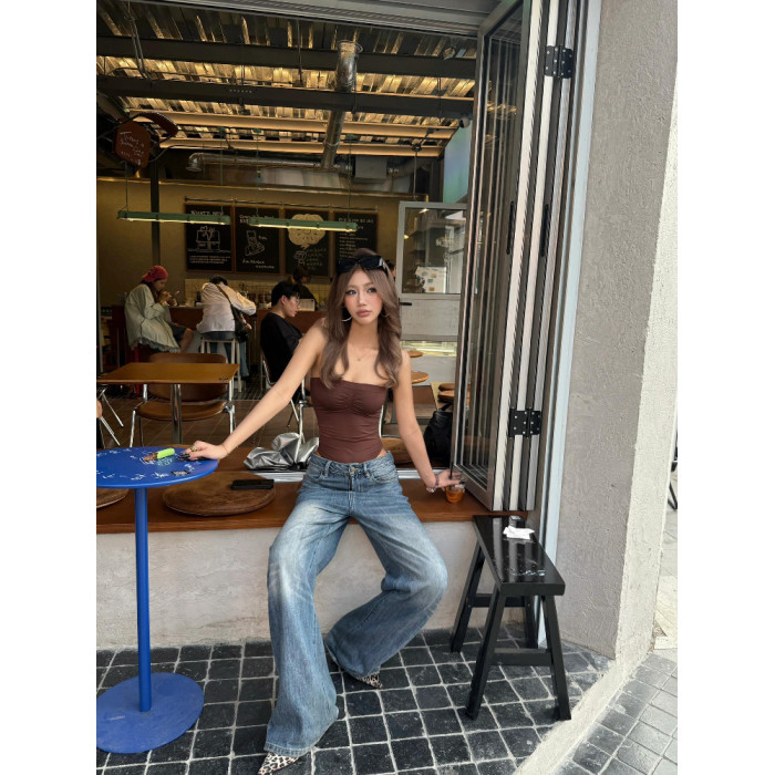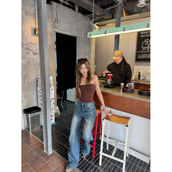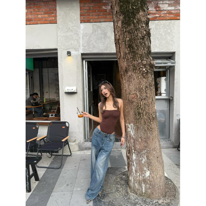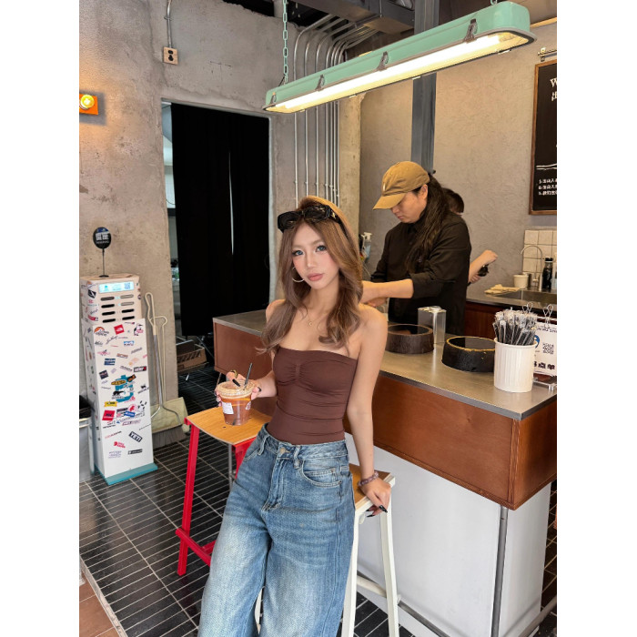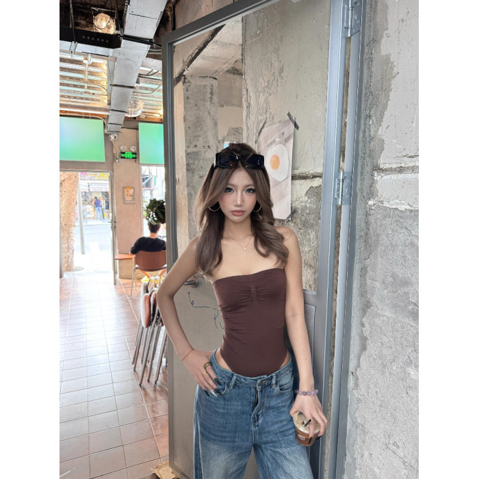 歐美ins辣妹風一字肩抹胸吊帶背心上衣女夏季緊身顯瘦塑身連體衣