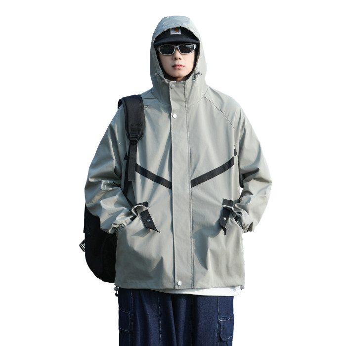 WASSUP NURAYA美式沖鋒衣男士春秋連帽防水寬松工裝戶外情侶夾克