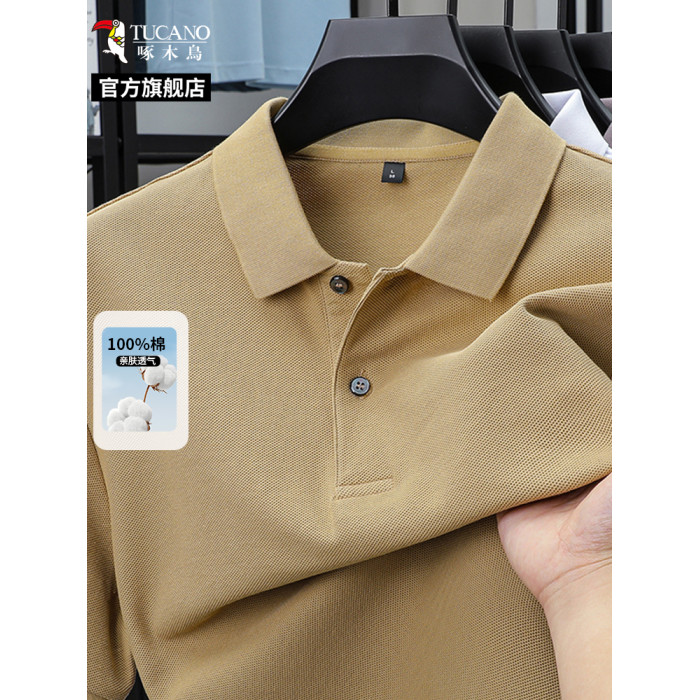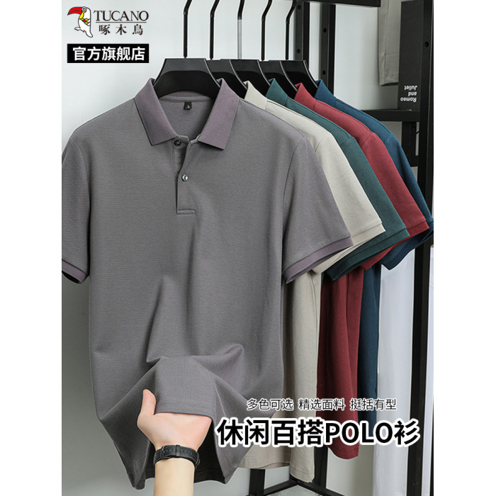 啄木鳥2025夏季新款100%純棉針織商務短袖polo衫男士爸爸半袖t恤
