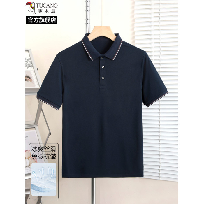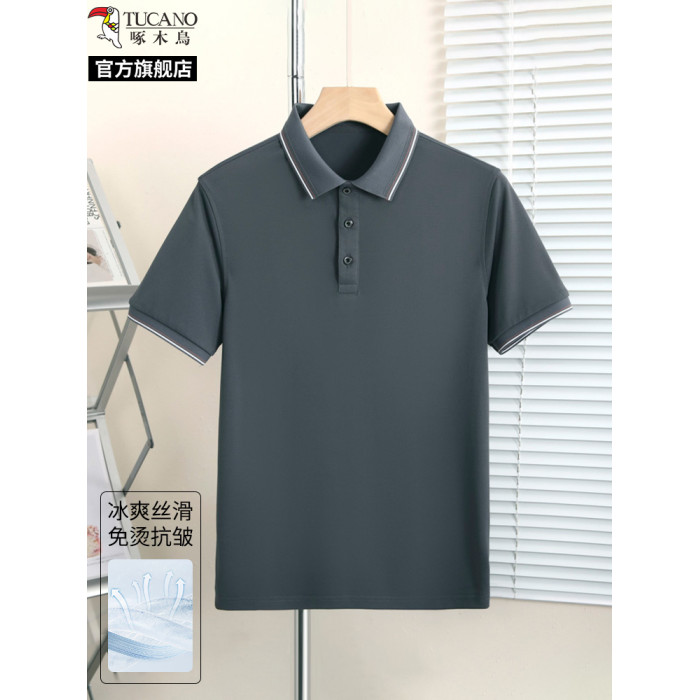 啄木鳥官方爸爸短袖t恤中年男士2025新款夏季商務翻領polo衫上衣