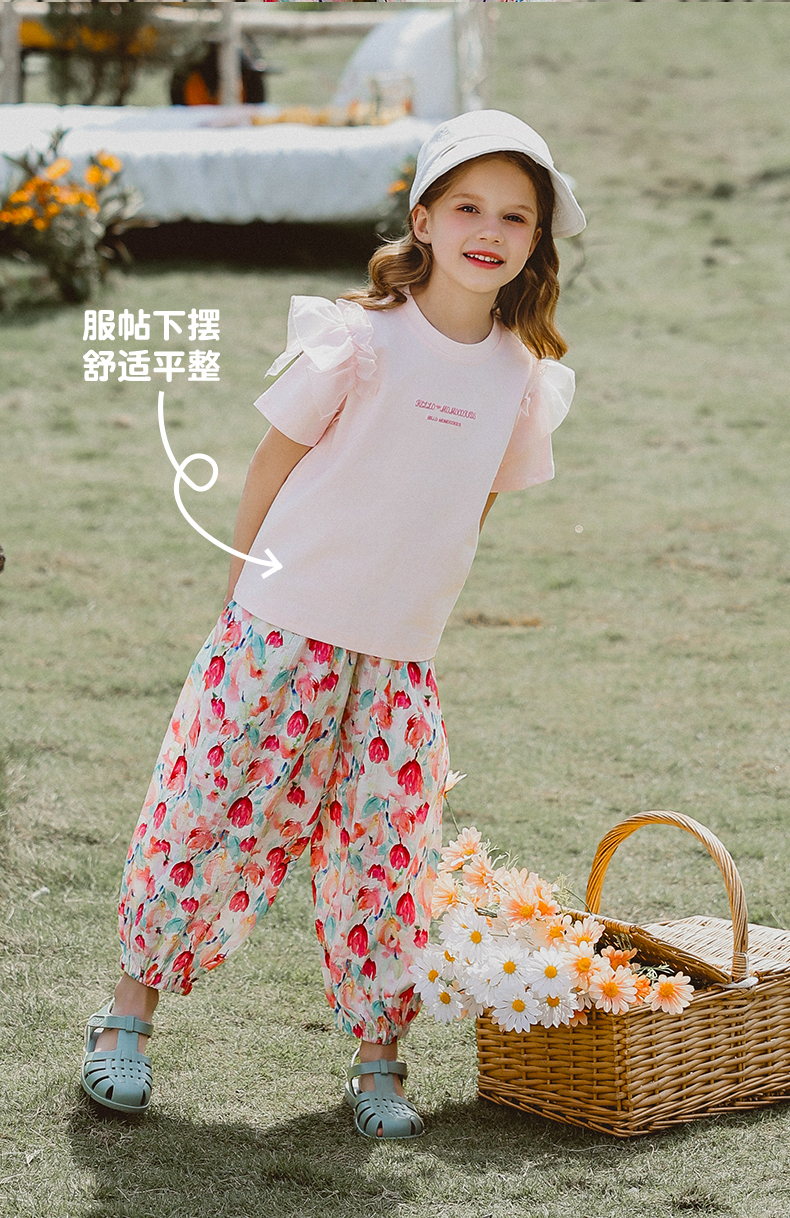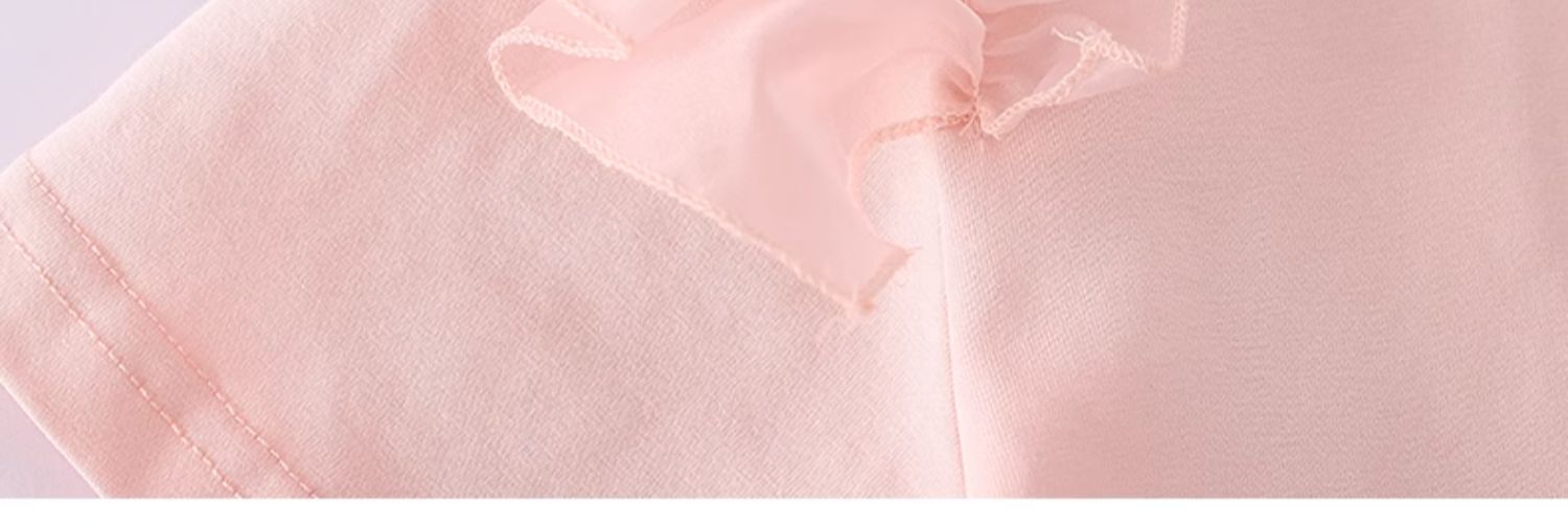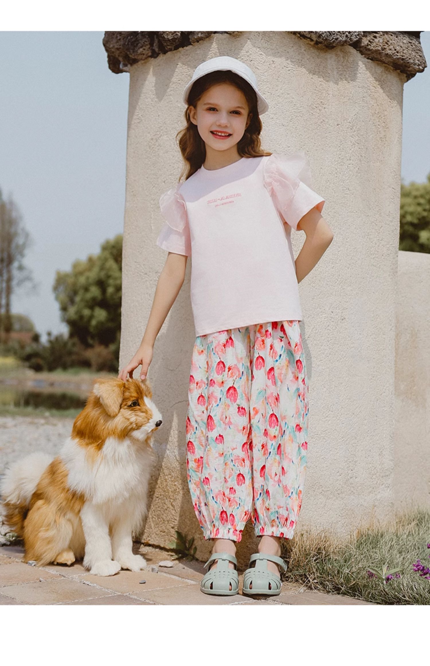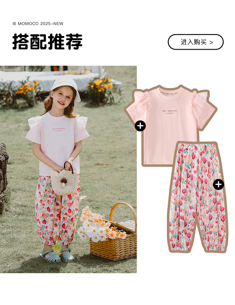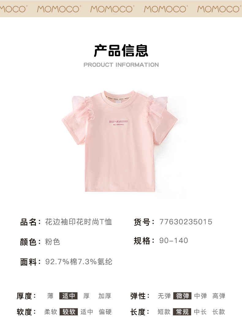 MOMOCO/瑪米瑪卡女童短袖t恤2025夏季新款兒童網紗甜美花邊袖上衣