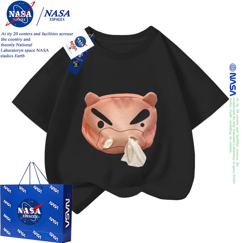 NASA聯名阿呆抽紙設計感純棉T恤男女童情侶裝隨身帶紙親子裝衣服