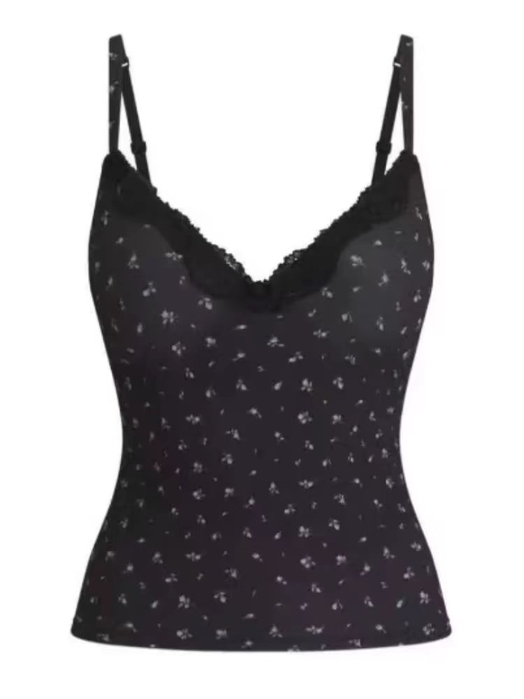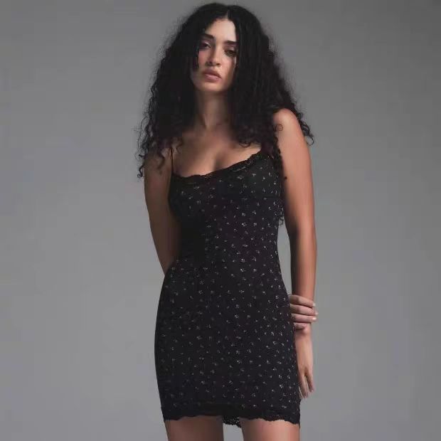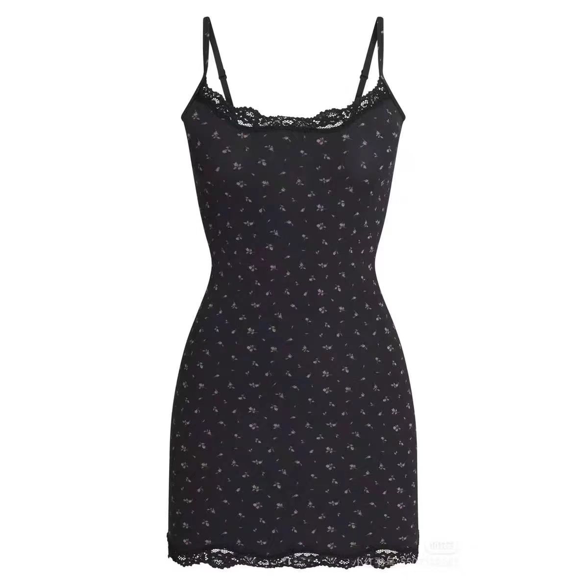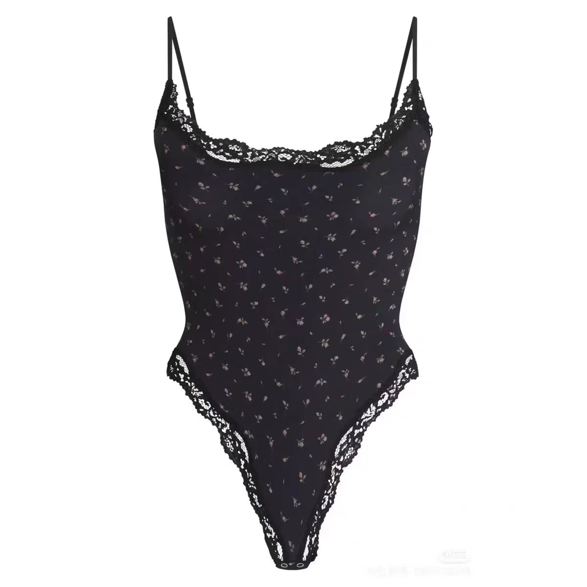 skims卡戴珊同款 蕾絲領口可調肩帶花邊裝飾緊身性感連體衣吊帶女