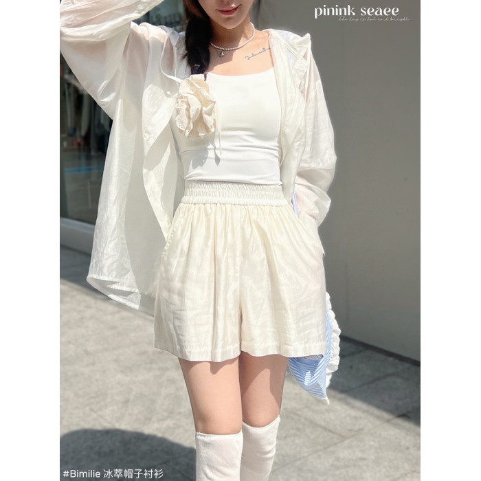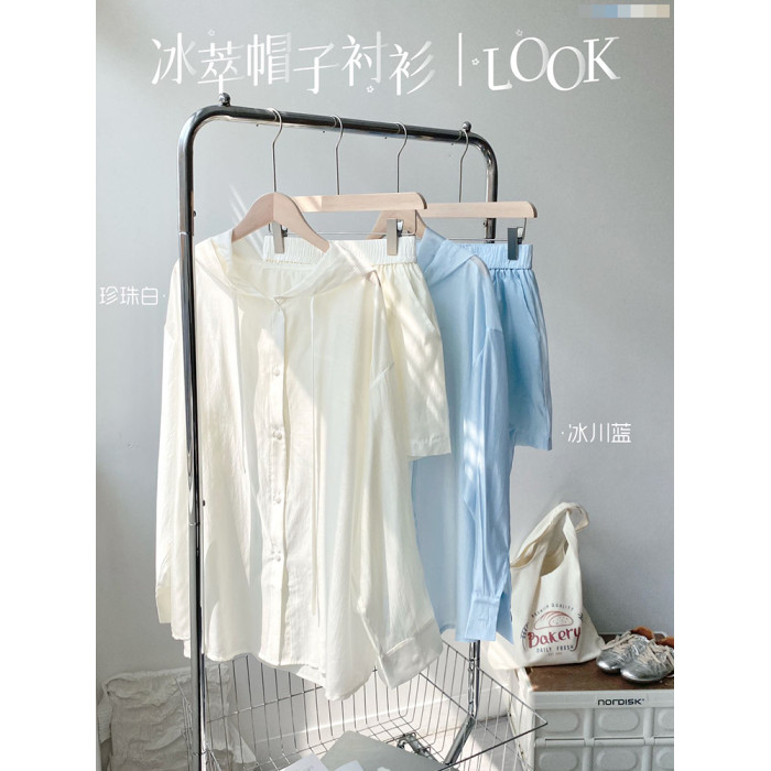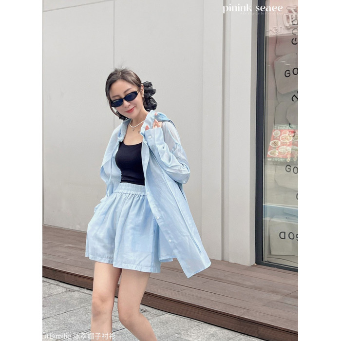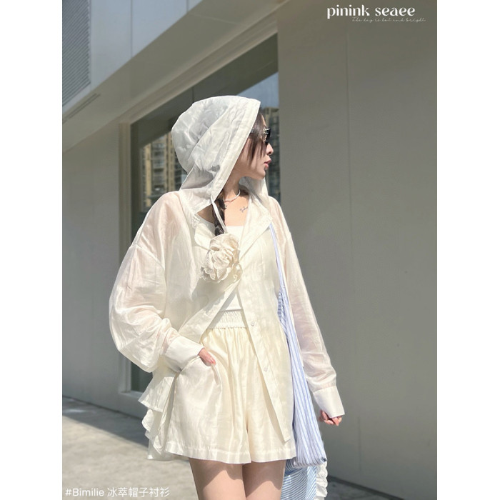 Bimilie冰萃襯衫防曬衣套裝2025夏季新款輕薄紗開衫外搭連帽休閒