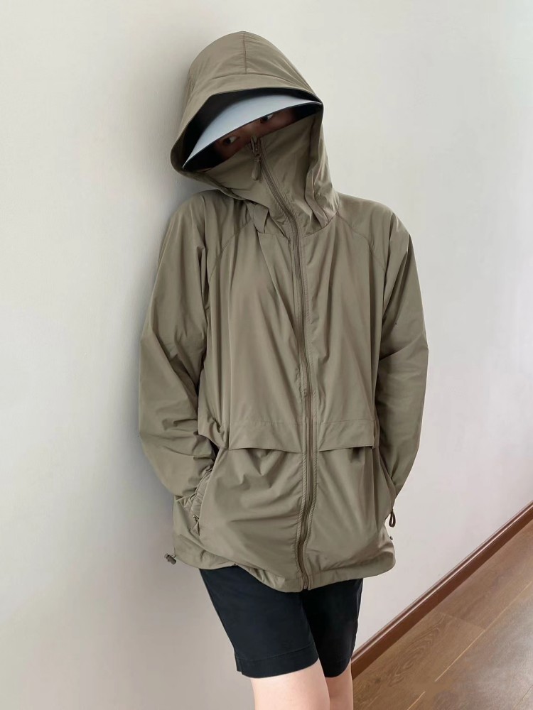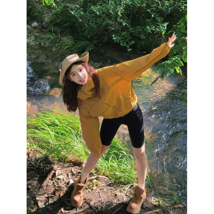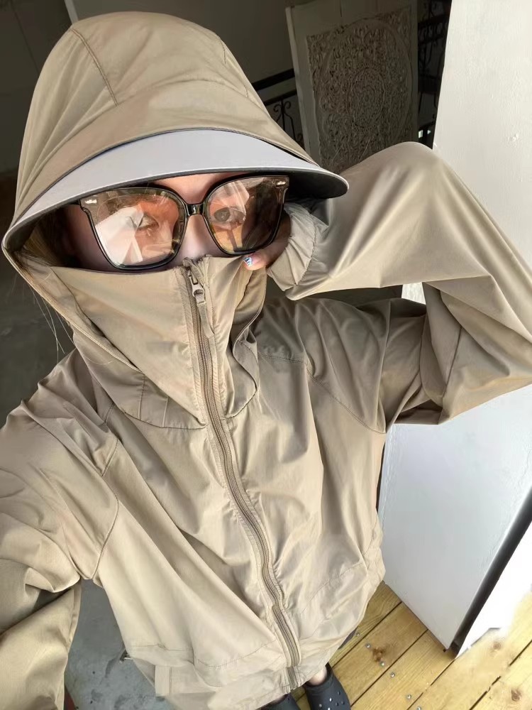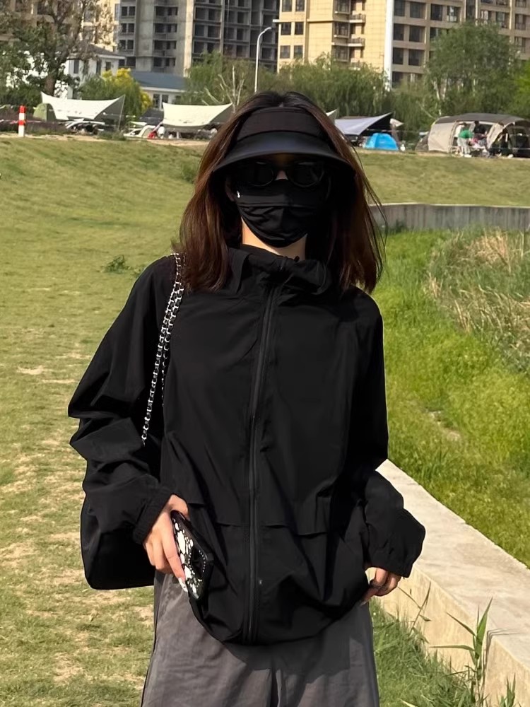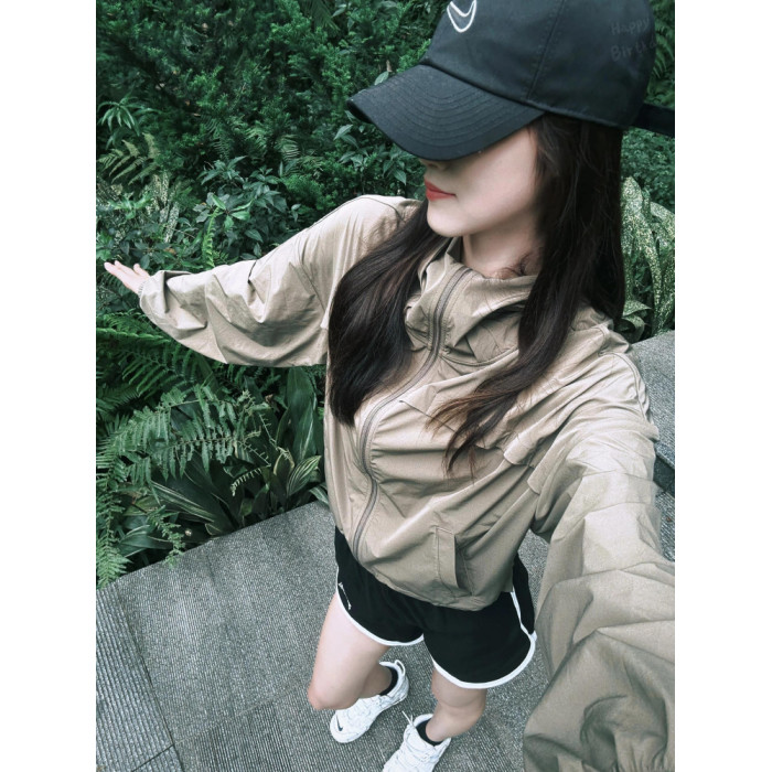 2025新款戶外徒步旅行防曬衣夏季寬松透氣速乾連帽短款防曬外套女