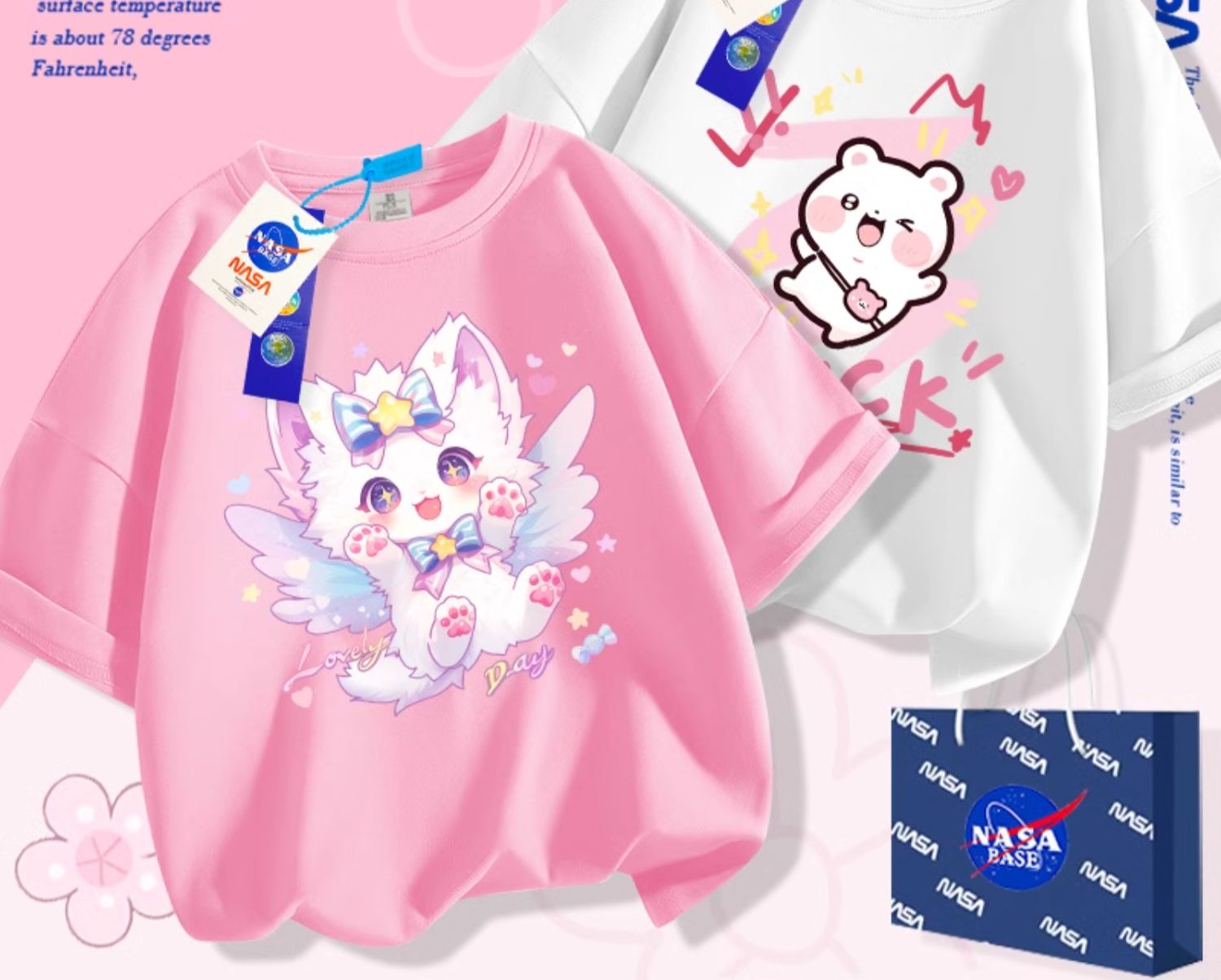 NASA聯名女童純棉短袖t恤2025新款春夏季童裝中大童上衣兒童衣服