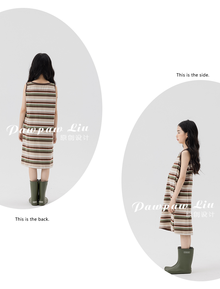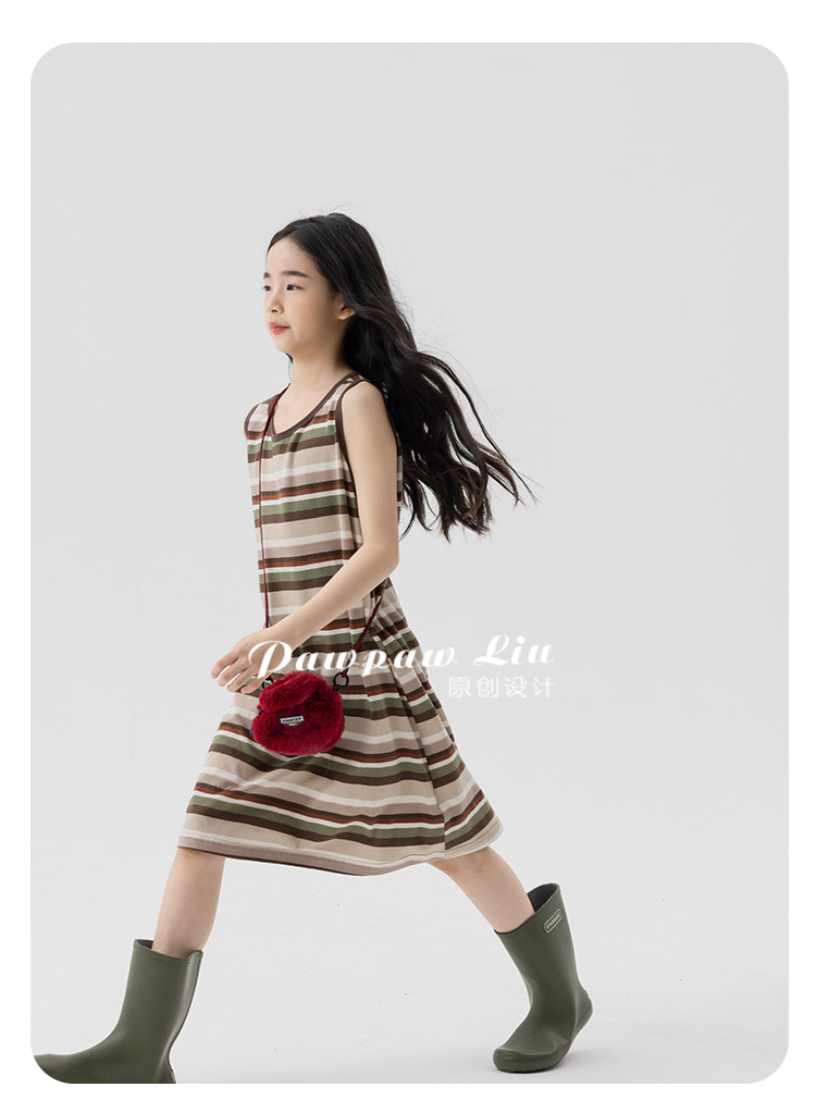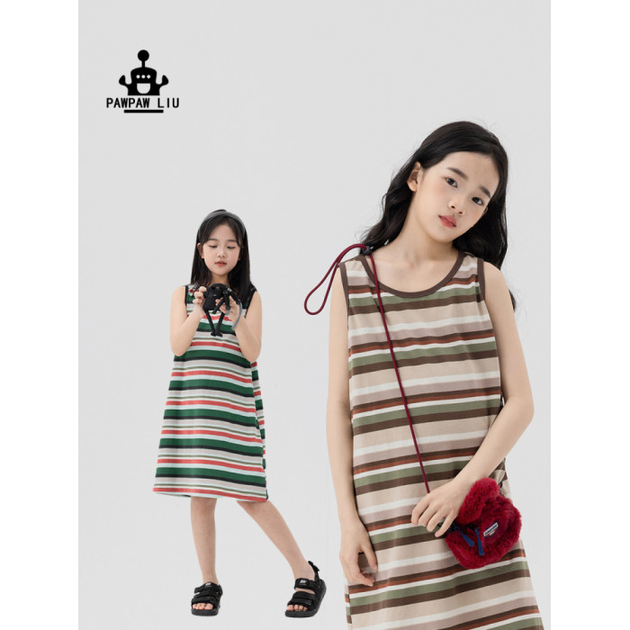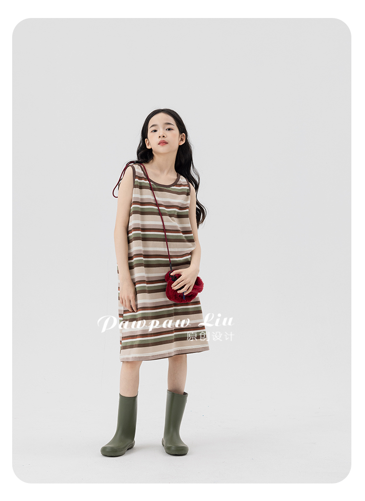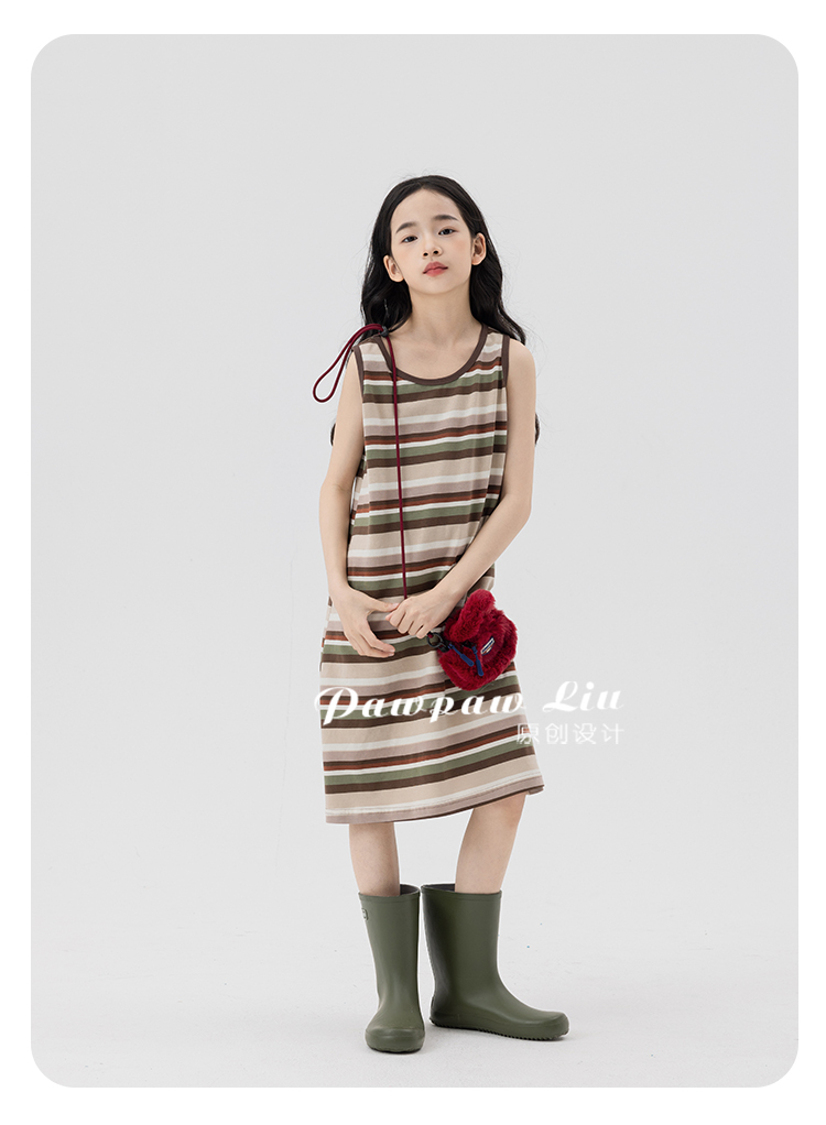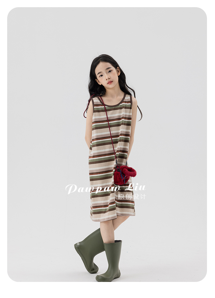 Pawpaw liu原創設計女童連衣裙夏2025新款日系兒童裙子條紋背心裙