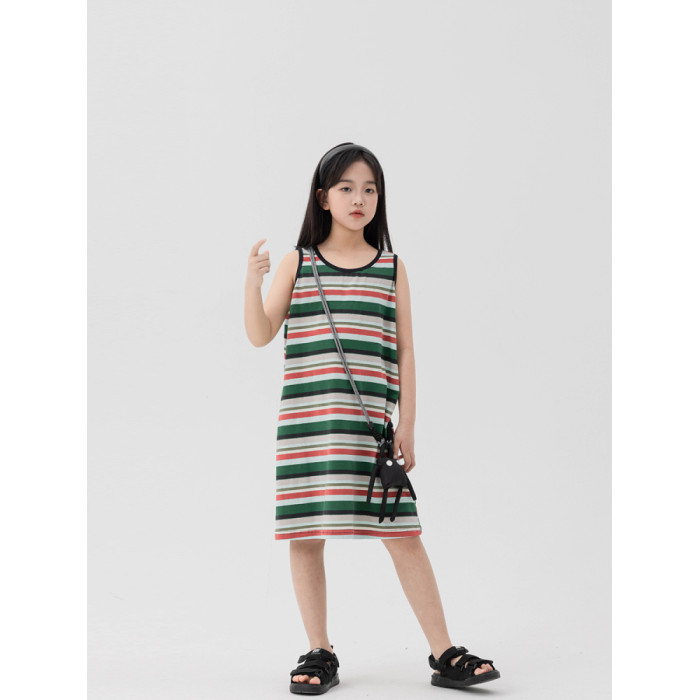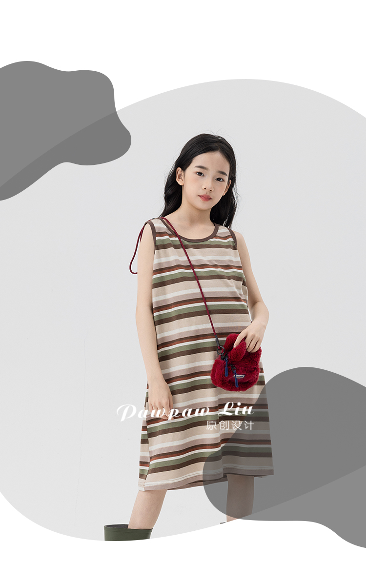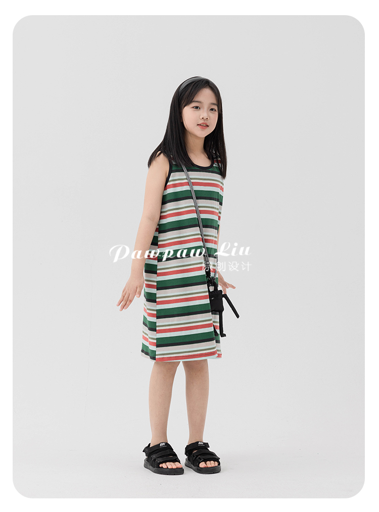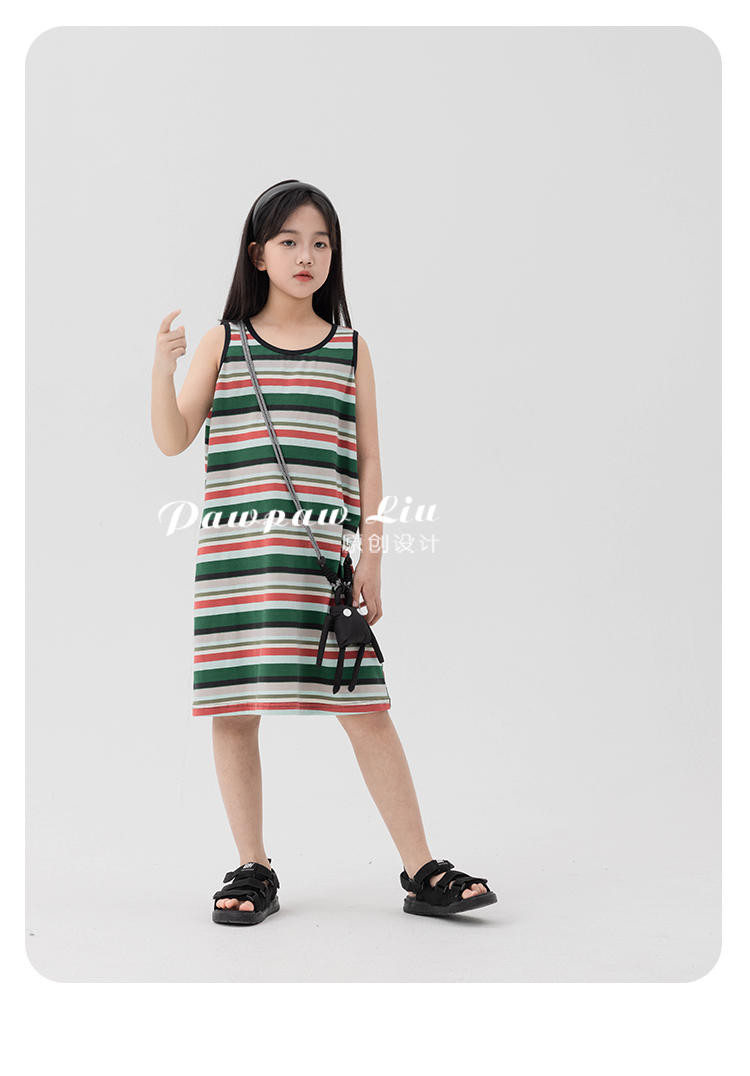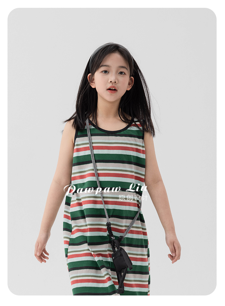 Pawpaw liu原創設計女童連衣裙夏2025新款日系兒童裙子條紋背心裙