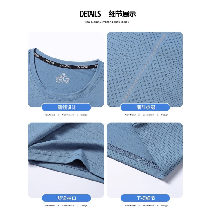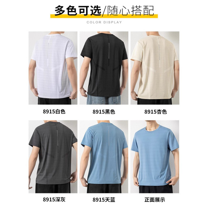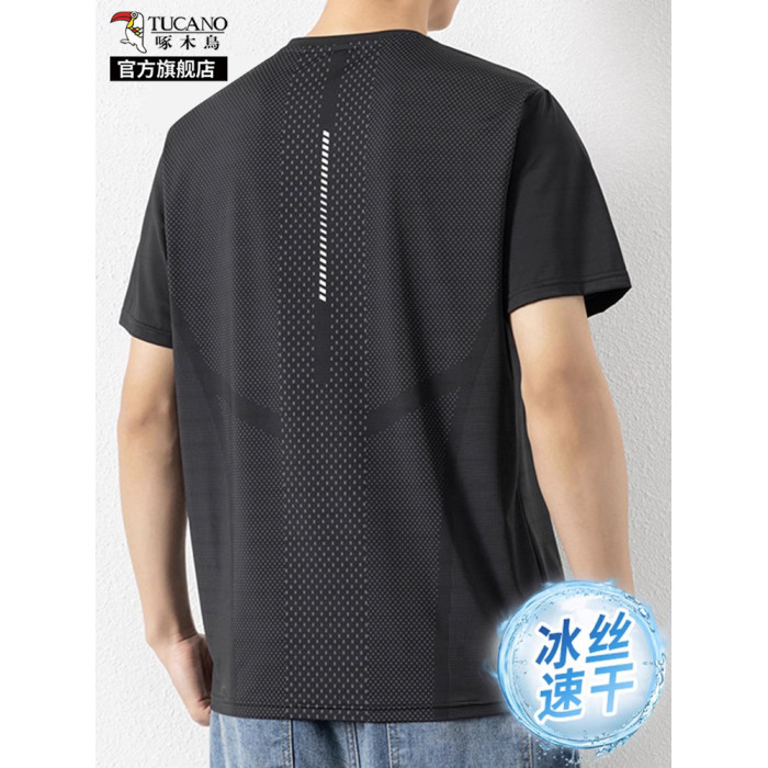 啄木鳥冰絲短袖t恤男士夏季薄款寬松網眼透氣速乾休閒運動體恤男K