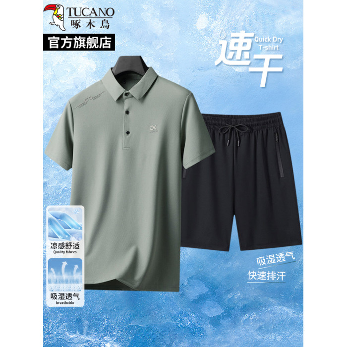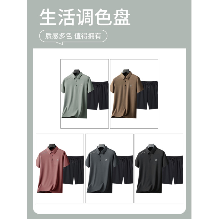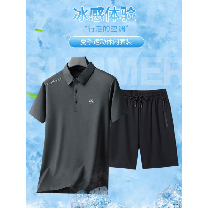 啄木鳥2025夏季新款冰絲短袖短褲套裝男士休閒運動爸爸中老年父親