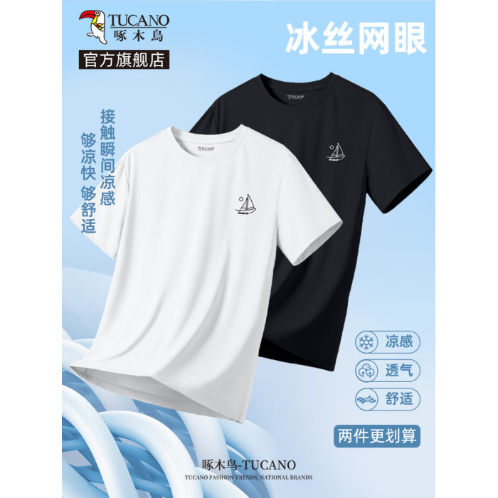 啄木鳥運動風冰絲短袖男款夏季2025新款男士速乾透氣寬松T恤衫YB