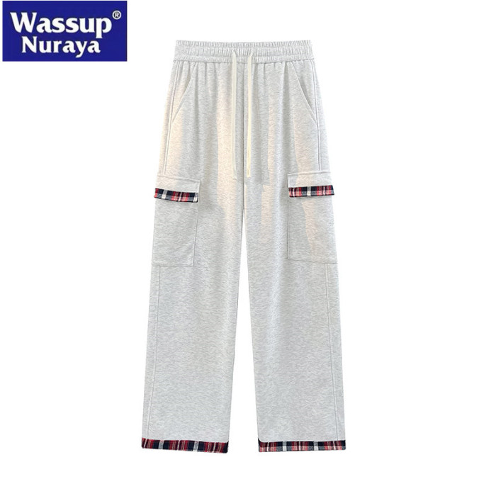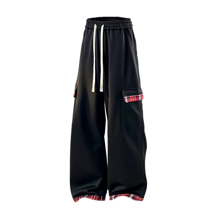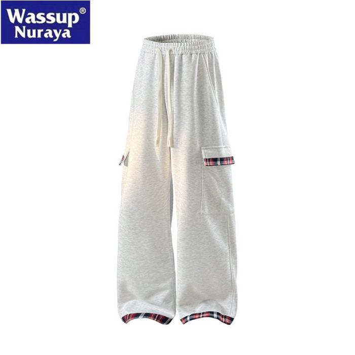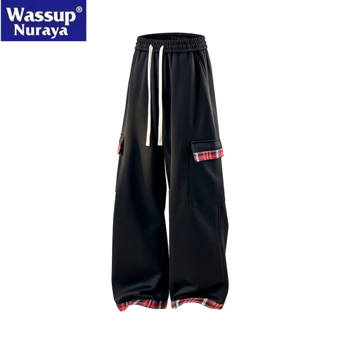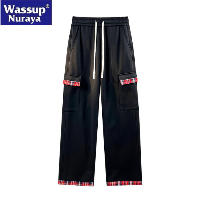WASSUP Nuraya潮牌黑色休閒褲男春夏運動褲濶腿垂感直筒寬松衛褲
