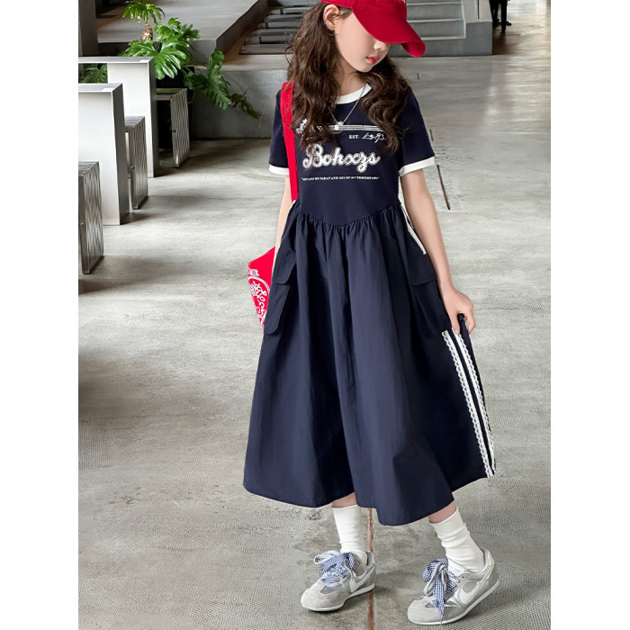 女童夏季連衣裙2025新款中大童洋氣小女孩短袖公主裙兒童夏裝裙子