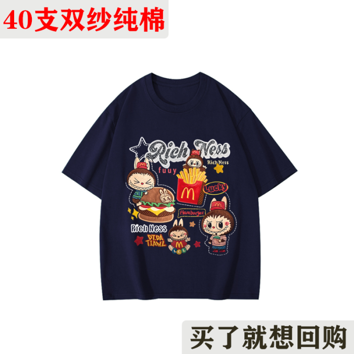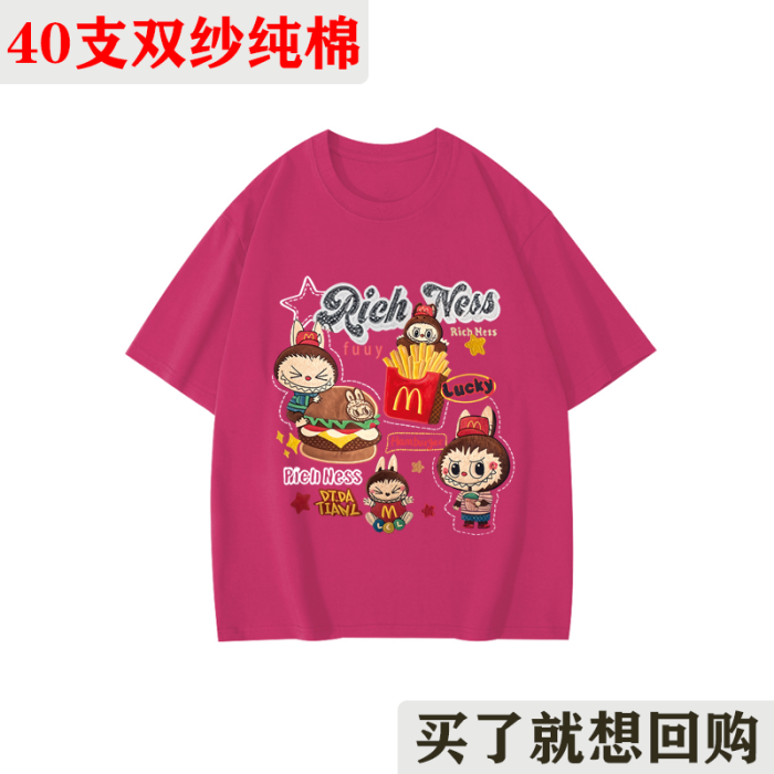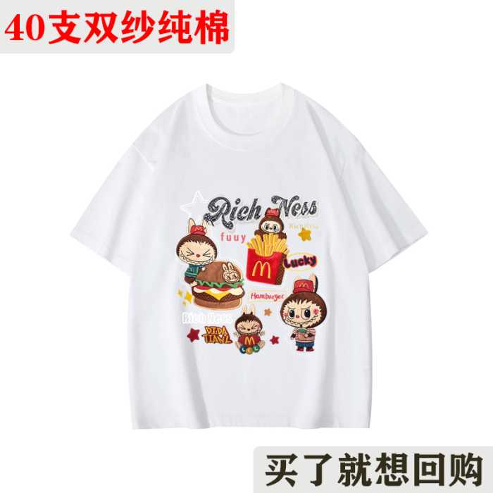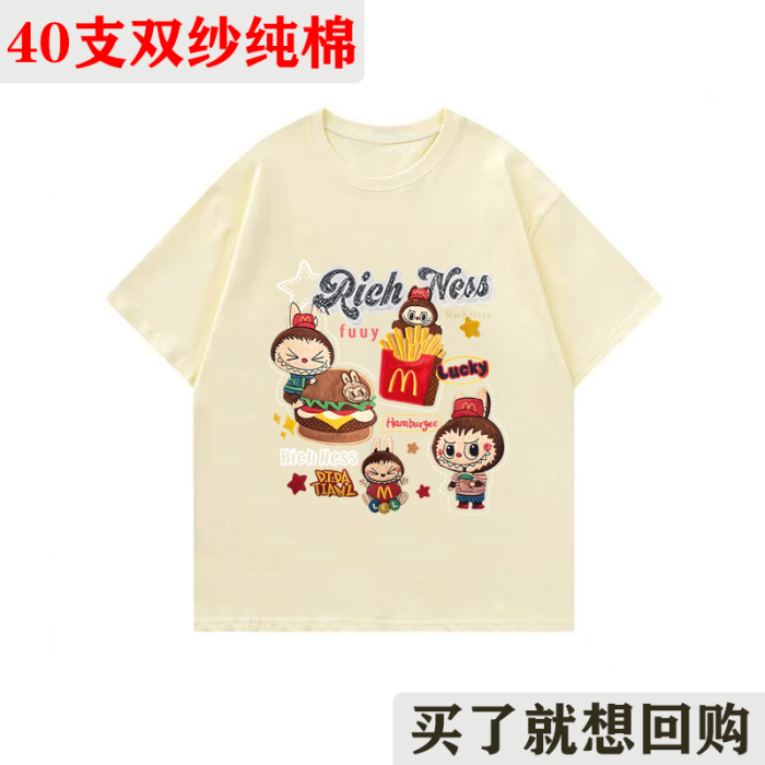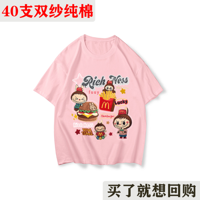 labubu100%純棉兒童短袖T恤薯條拉布布泡泡瑪特親子裝童裝情侶裝