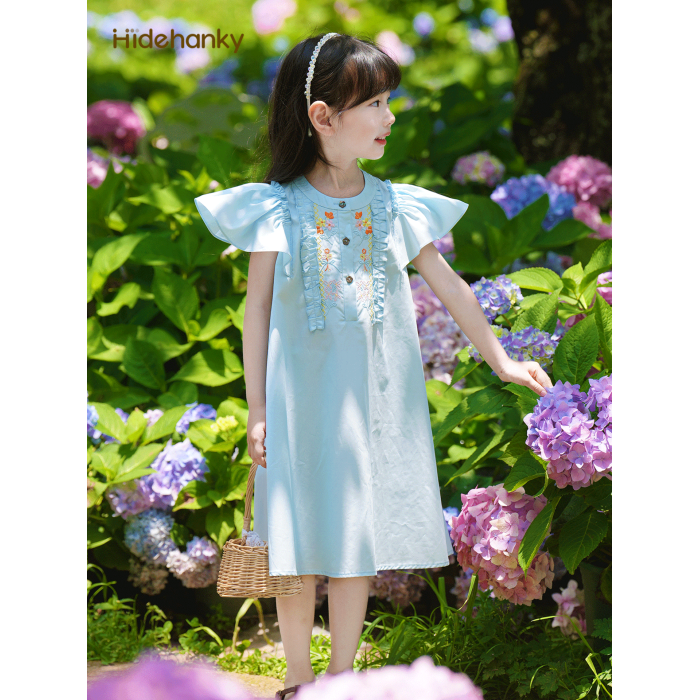 藍色刺綉連衣裙