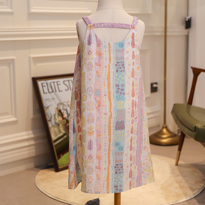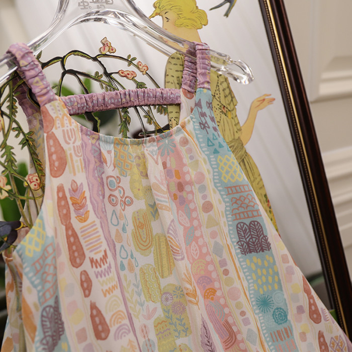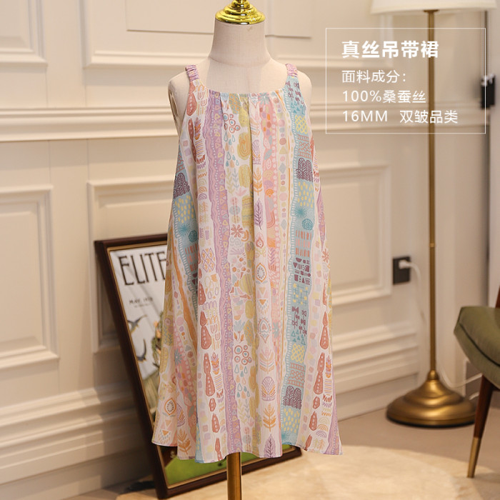 【繭音-流浪詩人】100%桑蠶絲連衣裙 兒童女童真絲夏季印花吊帶裙