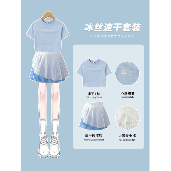 女童速乾套裝短裙半身兒童羽毛球服訓練衣女大童網球裙運動夏女孩