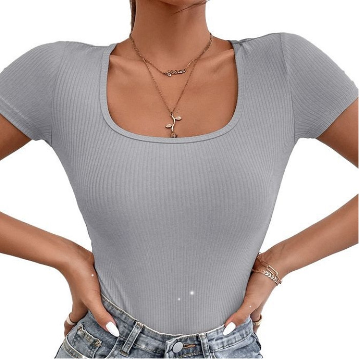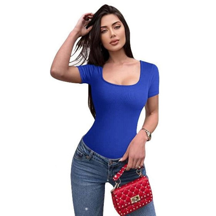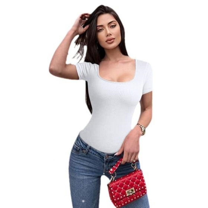 sexy high waist lace up slim bodysuit 純色短袖緊身連體衣2024