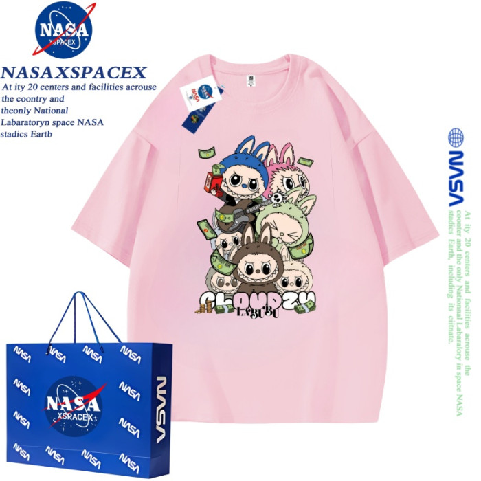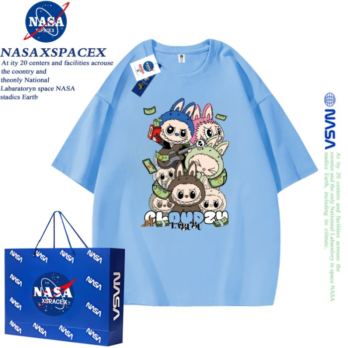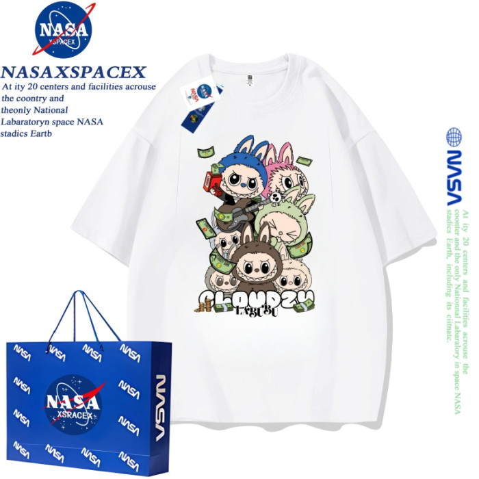 NASA聯名拉布布夏季新款純棉圓領短袖T恤兒童親子裝情侶款上衣服