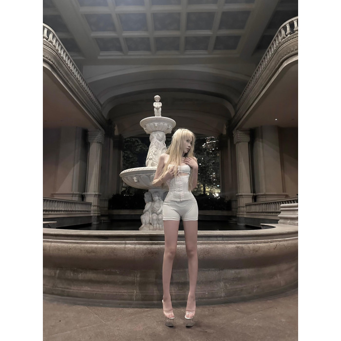 PUT 歐美辣妹風性感鏤空露背連體衣女2025新款修身顯瘦包臀短褲